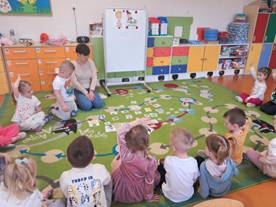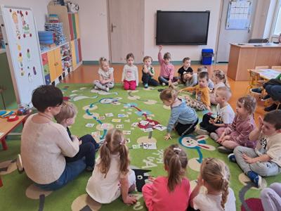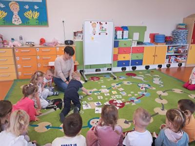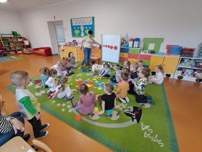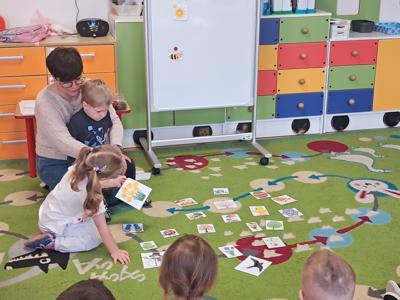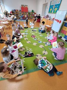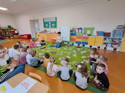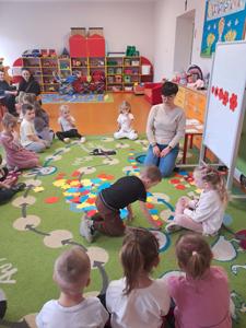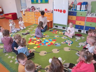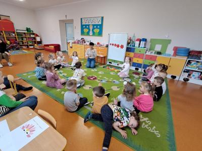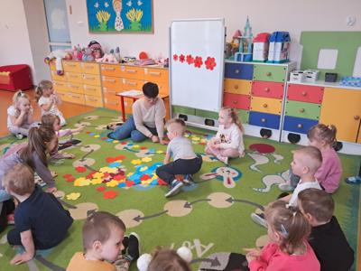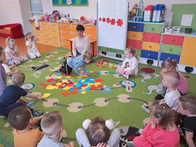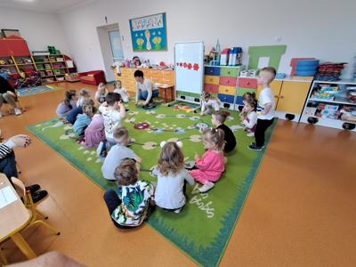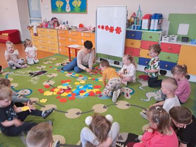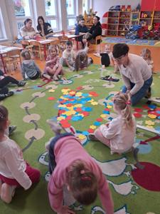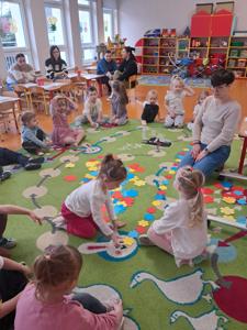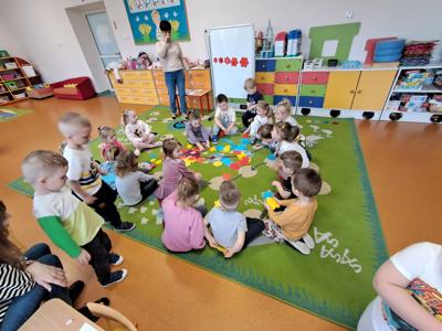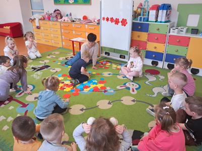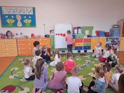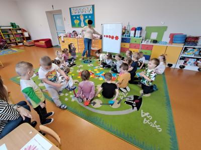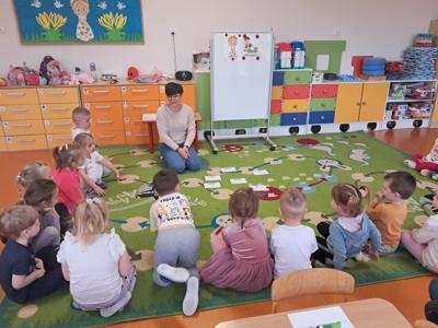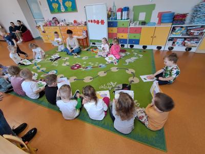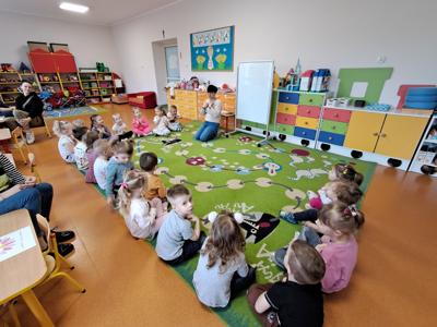 W dniu 7.04.2025r. w grupie Krasnoludków odbyły się zajęcia otwarte dla rodziców pod hasłem „Spotkanie z wiosną”. Głównym celem spotkania było kształtowanie odporności emocjonalnej dzieci oraz zdolności do wysiłku intelektualnego w obecności rodziców, a także umożliwienie im obserwacji swoich pociech na tle grupy podczas wspólnych zabaw i zadań.