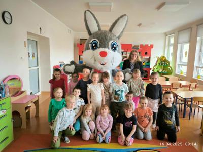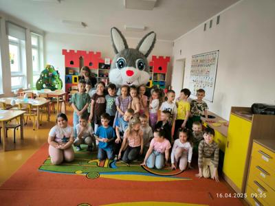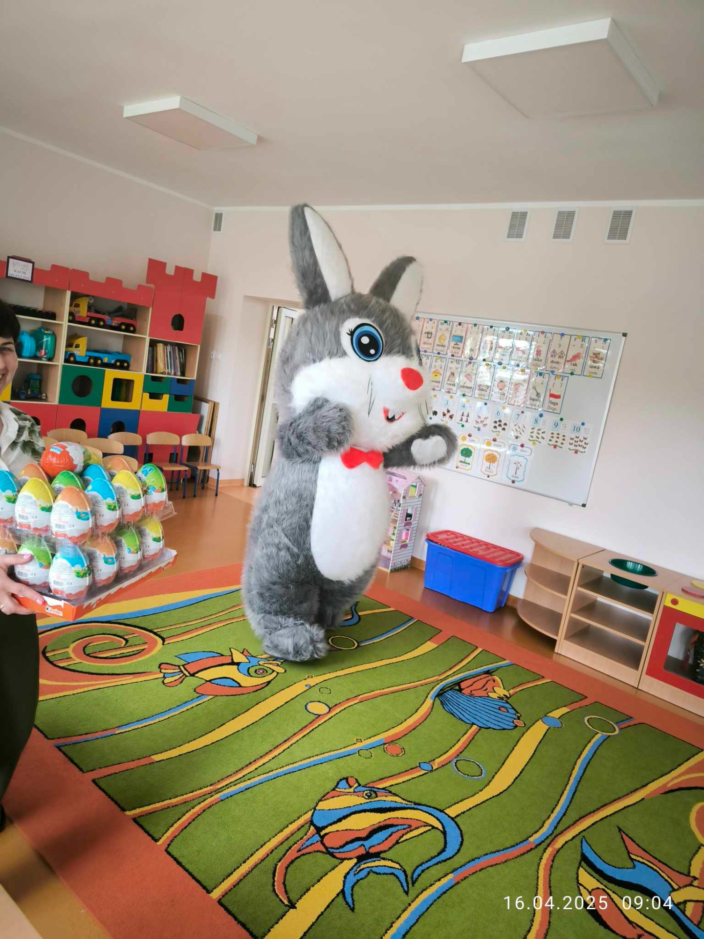 W dniu 16 kwietnia 2025 roku nasze przedszkole odwiedził wyjątkowy gość – Zajączek Wielkanocny! Już od samego rana wśród dzieci panowała radosna atmosfera i podekscytowanie związane z oczekiwaniem na niespodzianki.