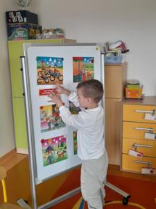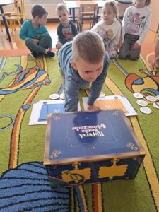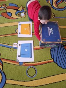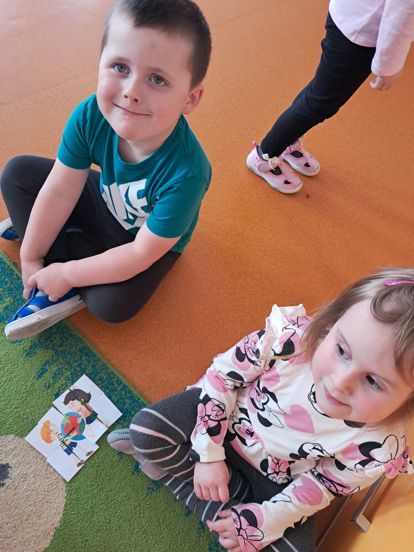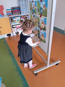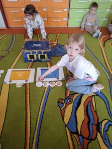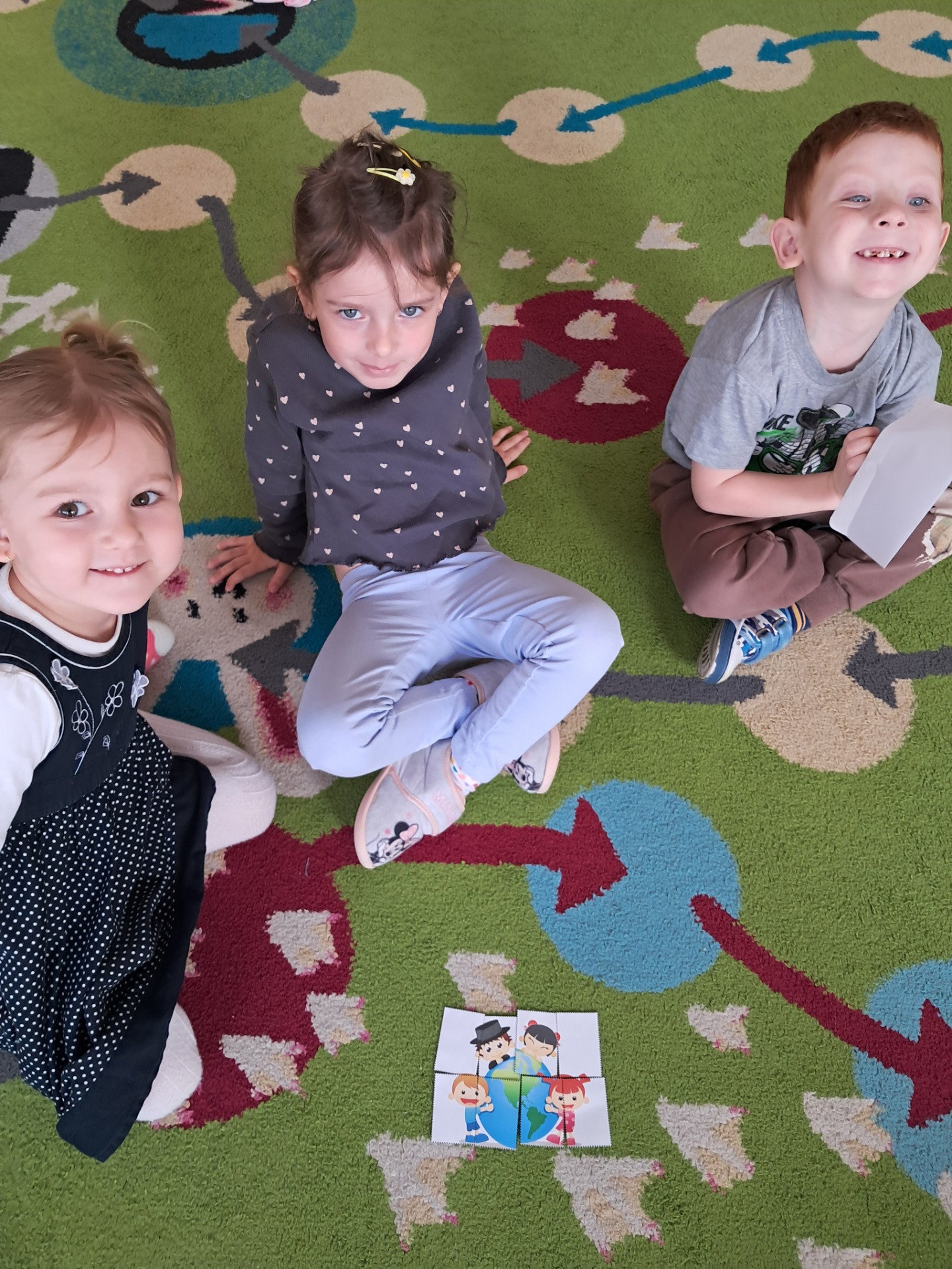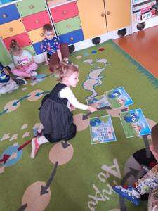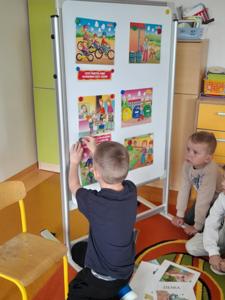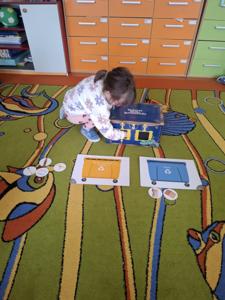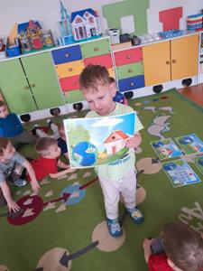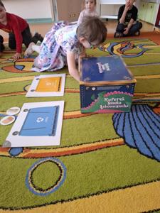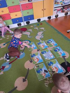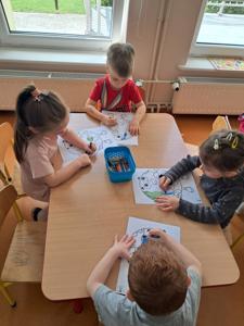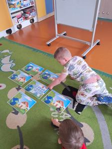 Następnie dzieci w małych grupach układały obrazki z puzzli, które przedstawiały różne elementy przyrody i ekologiczne scenki, co rozwijało ich spostrzegawczość oraz zdolności manualne.