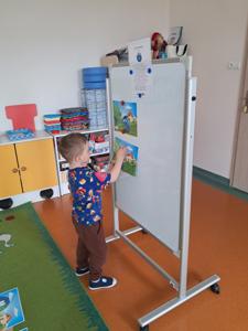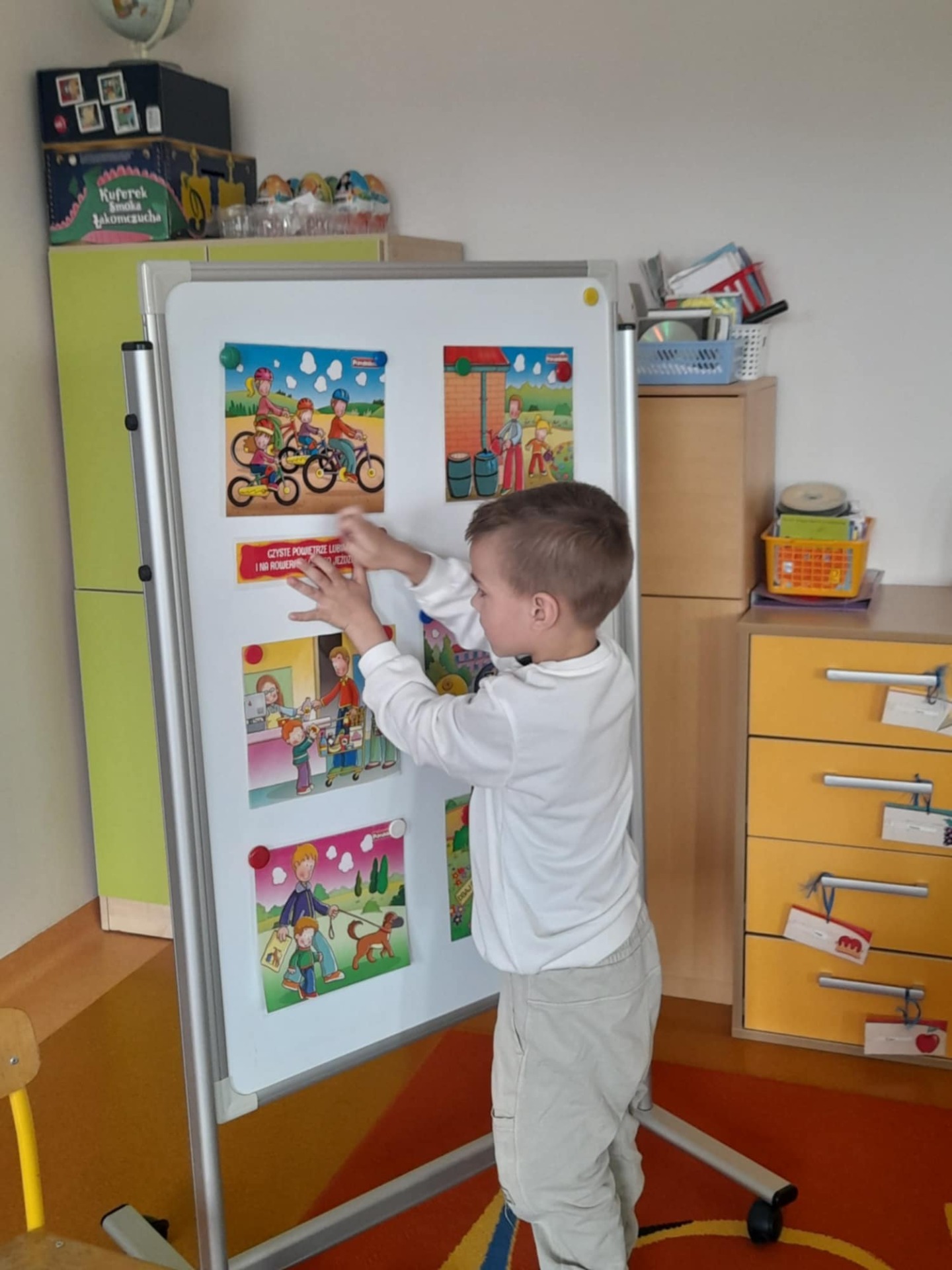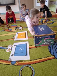 W ramach zajęć praktycznych przedszkolaki uczestniczyły w zabawie w segregowanie śmieci. Każde dziecko miało okazję przyporządkować odpady do odpowiednich pojemników: papier, szkło, plastik i bioodpady. Ćwiczenie to miało na celu utrwalenie wiedzy na temat zasad prawidłowej segregacji.