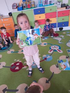 Kolejnym punktem zajęć było omówienie sposobów dbania o przyrodę. Dzieci wymieniały różne działania, które mogą podjąć na co dzień, aby pomóc naszej planecie, takie jak: gaszenie światła po wyjściu z pokoju, oszczędzanie wody, sadzenie drzew, sprzątanie śmieci czy unikanie plastiku.
