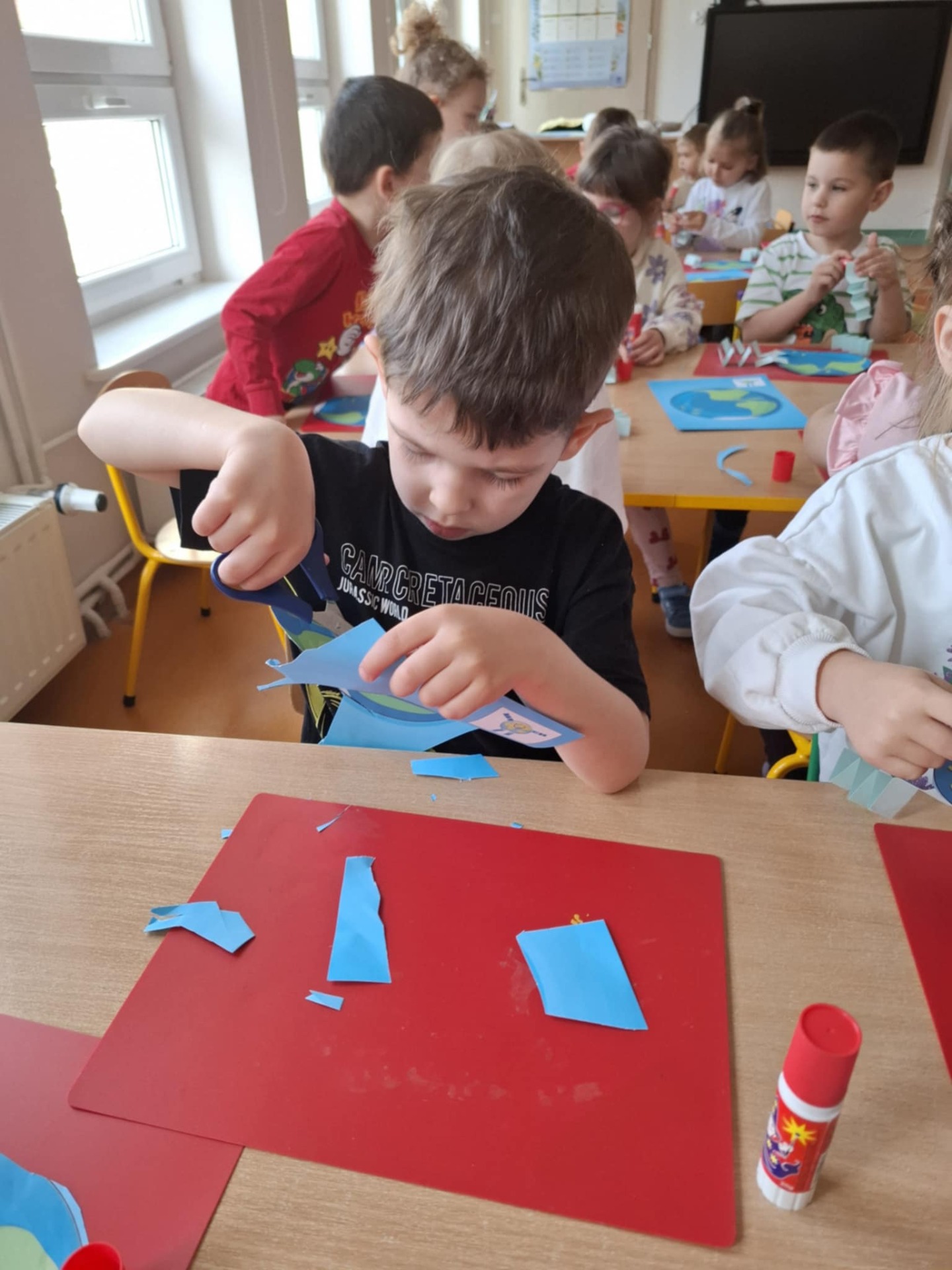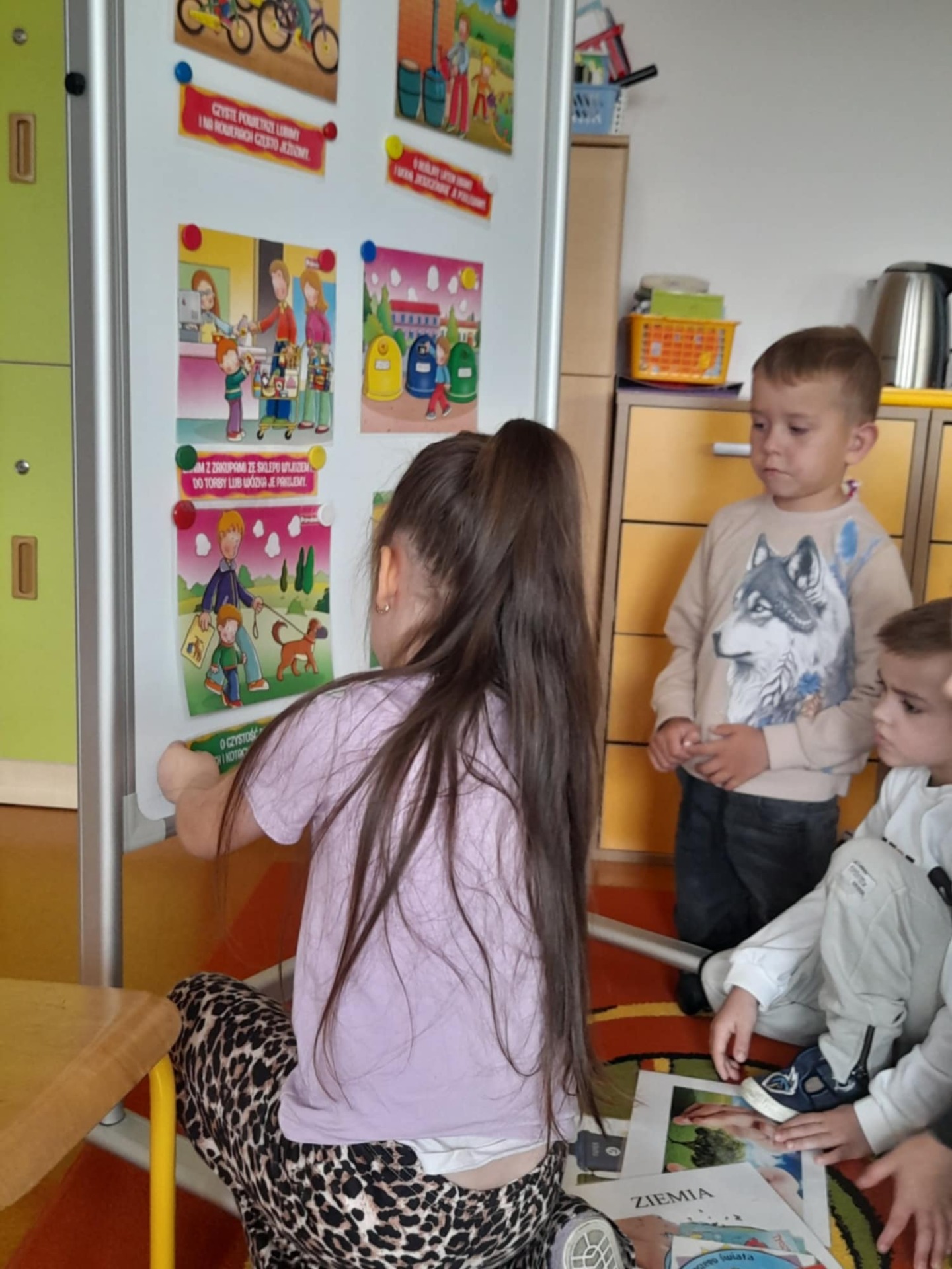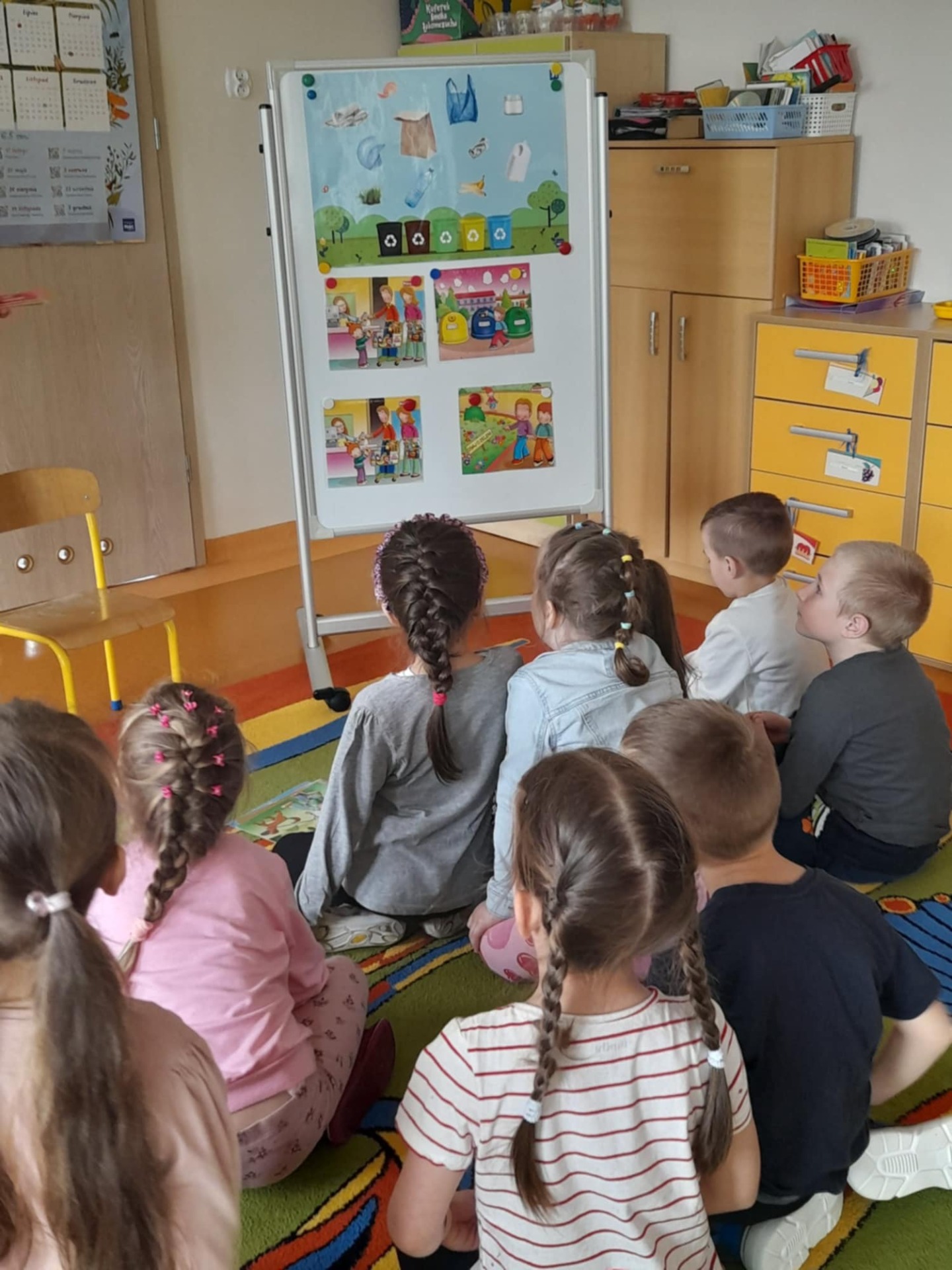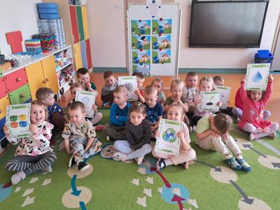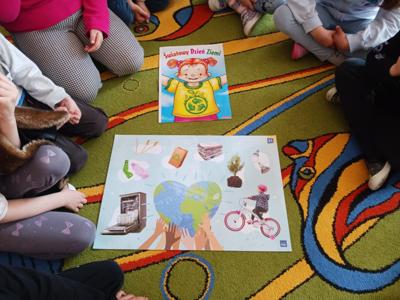 Zajęcia rozpoczęły się od wspólnego wysłuchania wiersza pt. „Chora planetka”, który w przystępny sposób ukazał dzieciom, jak bardzo Ziemia potrzebuje naszej pomocy i troski. Przedszkolaki z dużym zainteresowaniem słuchały utworu, a następnie chętnie dzieliły się swoimi refleksjami i spostrzeżeniami na temat problemów środowiskowych.