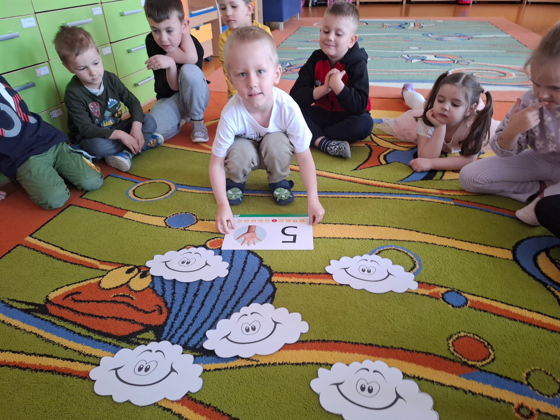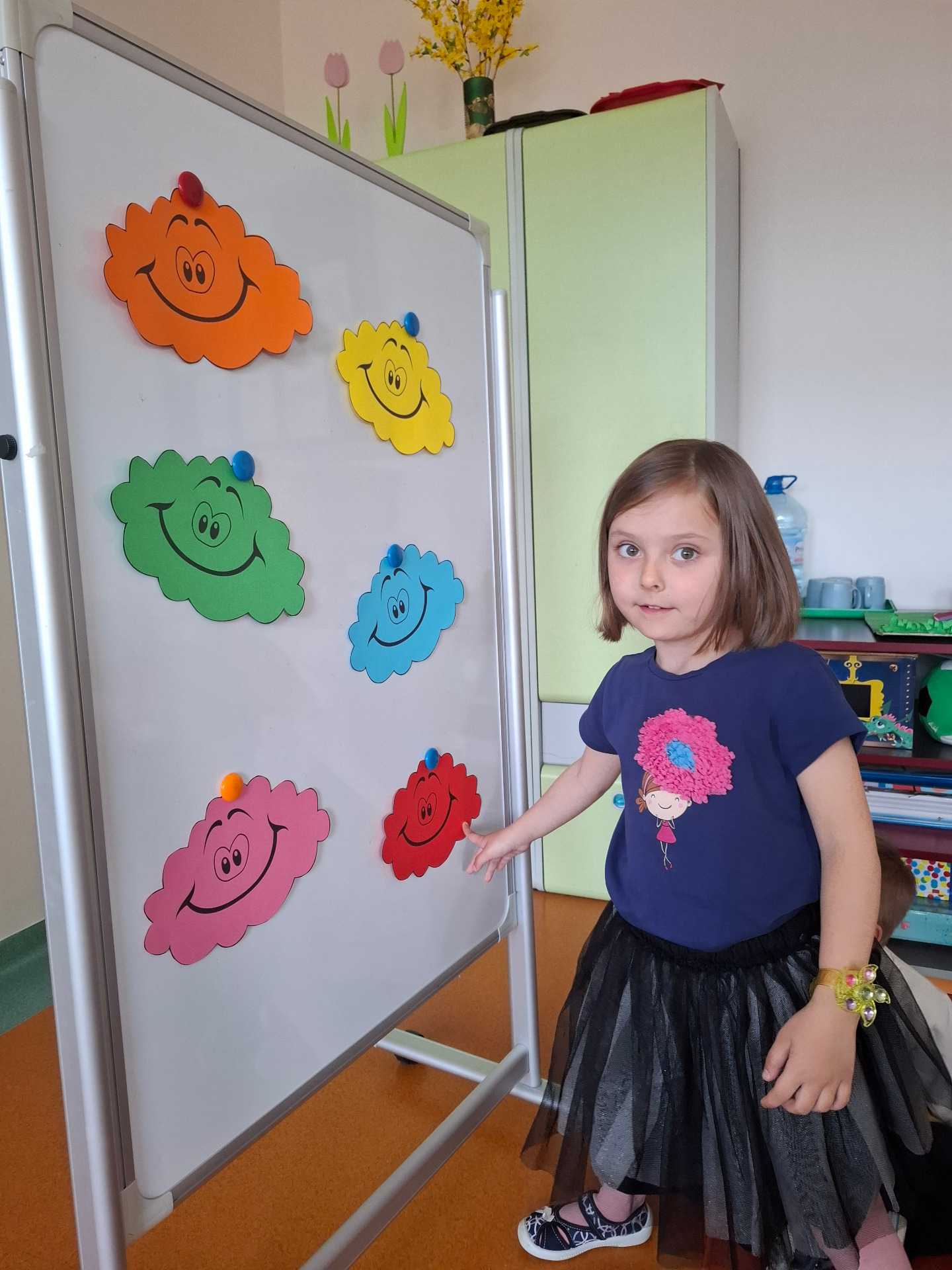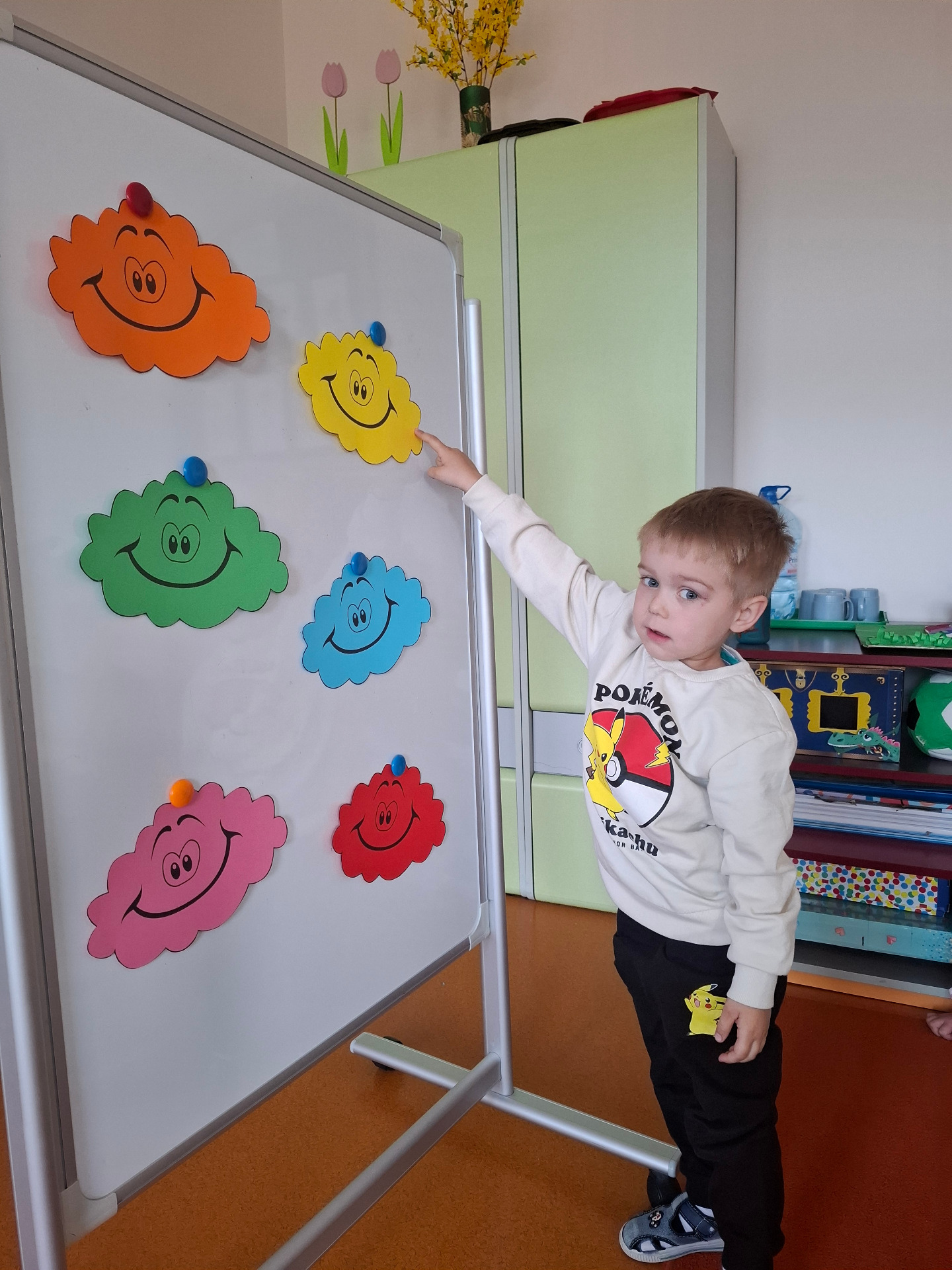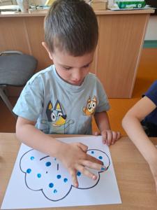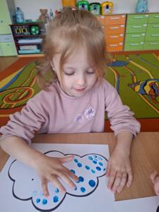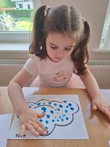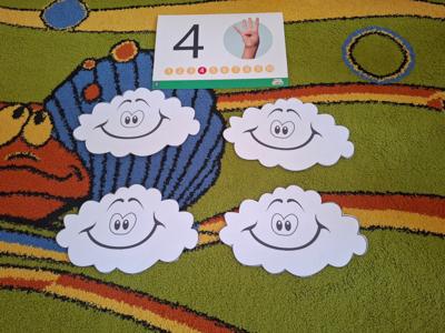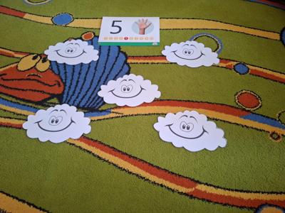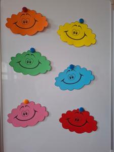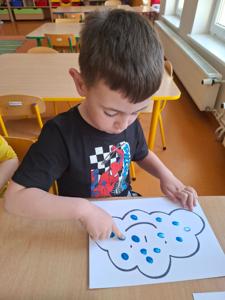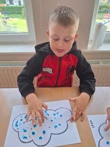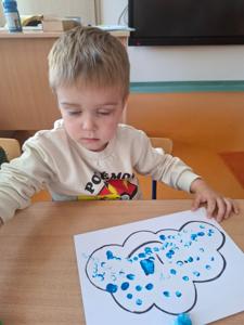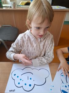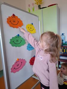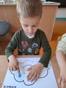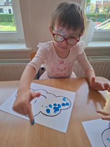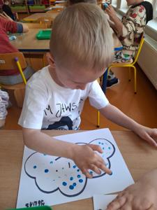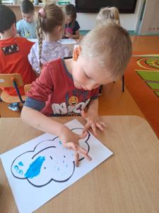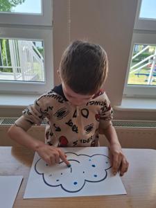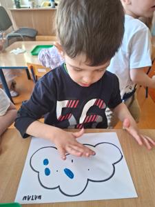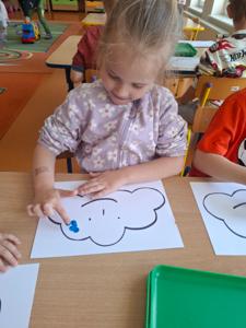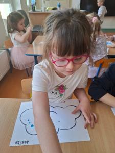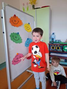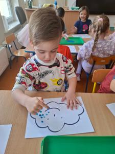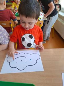 W dniu 29 kwietnia grupa Muchomorków zrealizowała kolejny temat z projektu edukacyjnego "W krainie uczuć". Dzieci wysłuchały opowiadania zatytułowanego "Mała chmurka i jej wielkie marzenie" i natępnie obyły pogadankę na temat swoich marzeń. Podczas zajęć przedszkolaki utrawliły sobie kolory z chmurką Puchatką, dzieliły wyrazy na sylaby i liczyły w zakresie do pięciu. Na koniec dzieci wykonały pracę plastyczną.