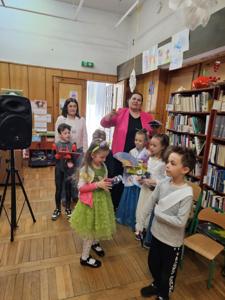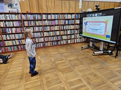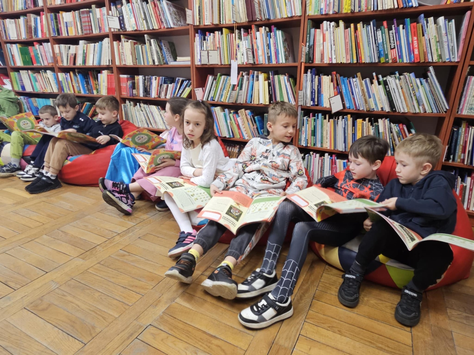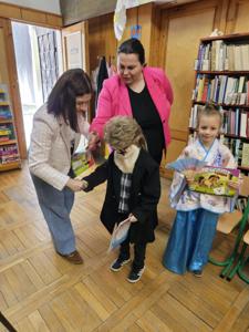29 maja 2025r. dzieci z grupy "Tęczowe Nutki" zakończyły cykl spotkań w Bibliotece Miejskiej w Mirosławcu w ramach projektu "Nasza Mała Biblioteka". Dzieci w trakcie spotkań zapoznały się z treścią książek "Poczwarka", "Rzepy", "Petar chce wiedzieć skąd się biorą dzieci", "Gdzie go znalazłaś" oraz "Pan Kluska i żaglowiec". Ostatnie spotkanie związane z podsumowaniem projektu obejmowało quiz wiedzy z poznanych książek,  w którym również uczestniczyły on-line dzieci z Macedonii Północnej. Nasze przedszkolaki odpowiedziały prawidłowo na wszystkie pytania! Najważniejszym celem projektu "Nasza Mała Biblioteka" jest zainteresowanie dzieci czytaniem książek i przekonanie, że warto czytać, bo książka to wspaniała przygoda. Chcemy, by do rąk dziecka trafiły książki wartościowe pod względem literackim, ilustracyjnym i edytorskim. Wybór dobej książki dla młodego odbiorcy nie jest dziś łatwy. Wśród mnóstwa dostępnych w księgarniach tytułów trudno znaleźć te najlepsze. Projekt "Nasza Mała Biblioteka" ma w tym pomóc.