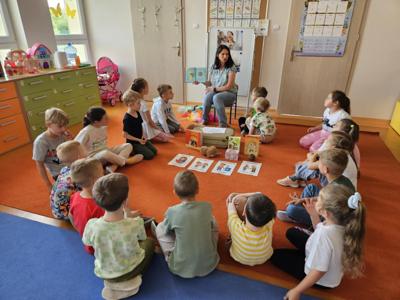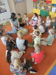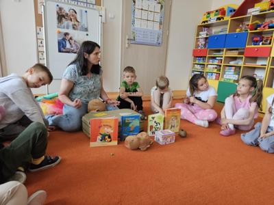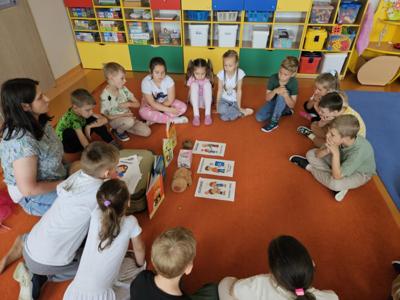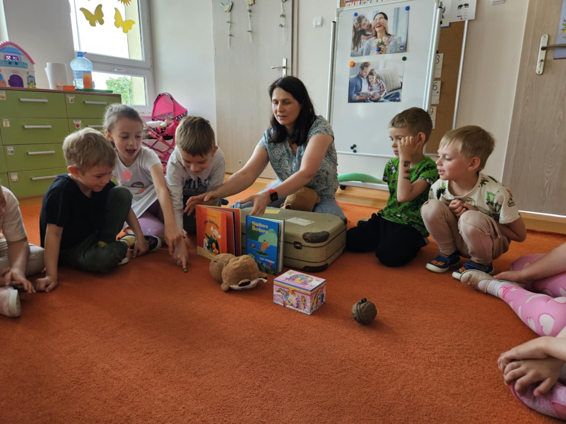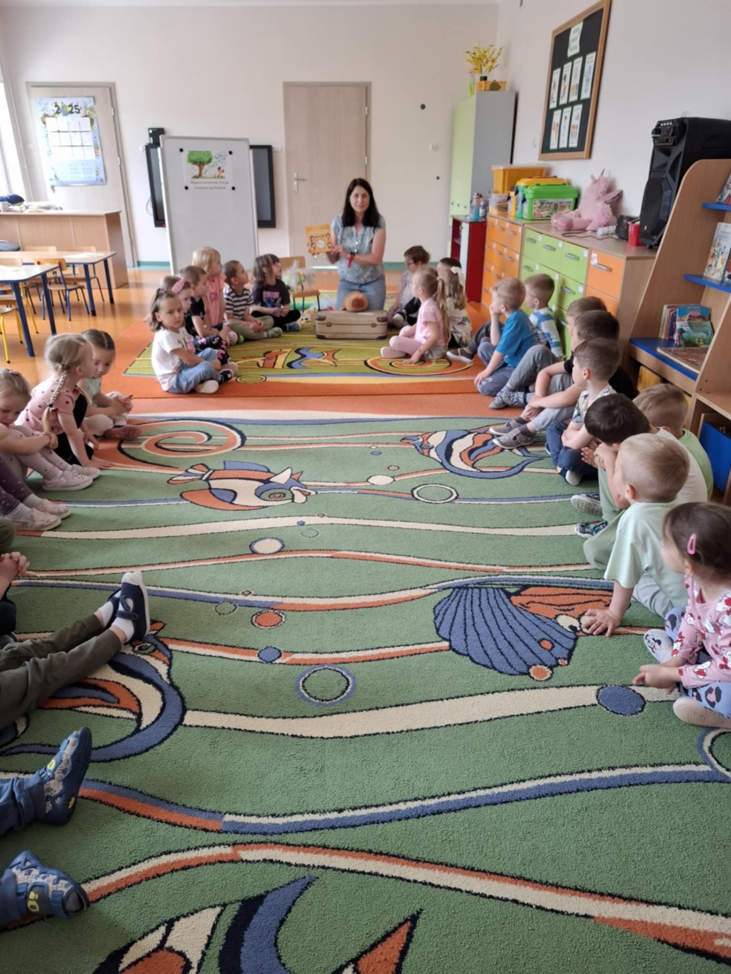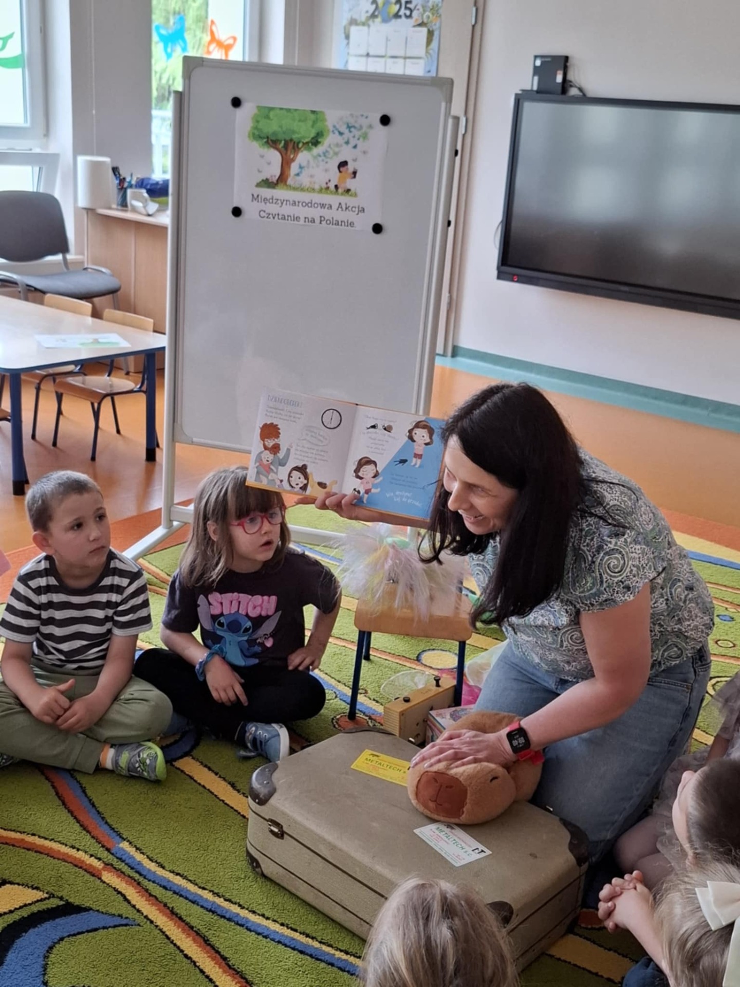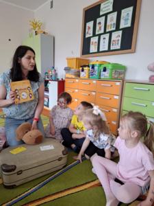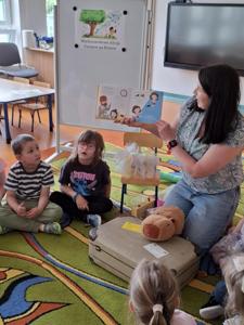 Dnia 5 czerwca 2025r. gościliśmy w przedszkolu Panią Monikę Deptułę z Biblioteki Publicznej w Mirosławcu, która z okazji XIV Ogólnopolskiego Tygodnia Czytania Dzieciom, organizowanego przez Fundację „Cała Polska czyta dzieciom” promowała ideę wspólnego spędzania czasu przy książce oraz budowania więzi poprzez literaturę. Tegoroczna edycja odbywała się pod hasłem „Czytanie zbliża”.