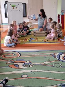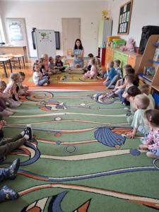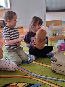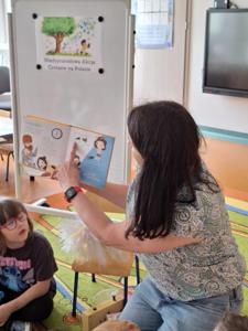 Pani Monika z ogromnym zaangażowaniem poprowadziła spotkanie z najmłodszymi. Przeczytała dzieciom kilka starannie wybranych opowiadań i bajek, które nie tylko bawiły, ale także uczyły i skłaniały do refleksji.