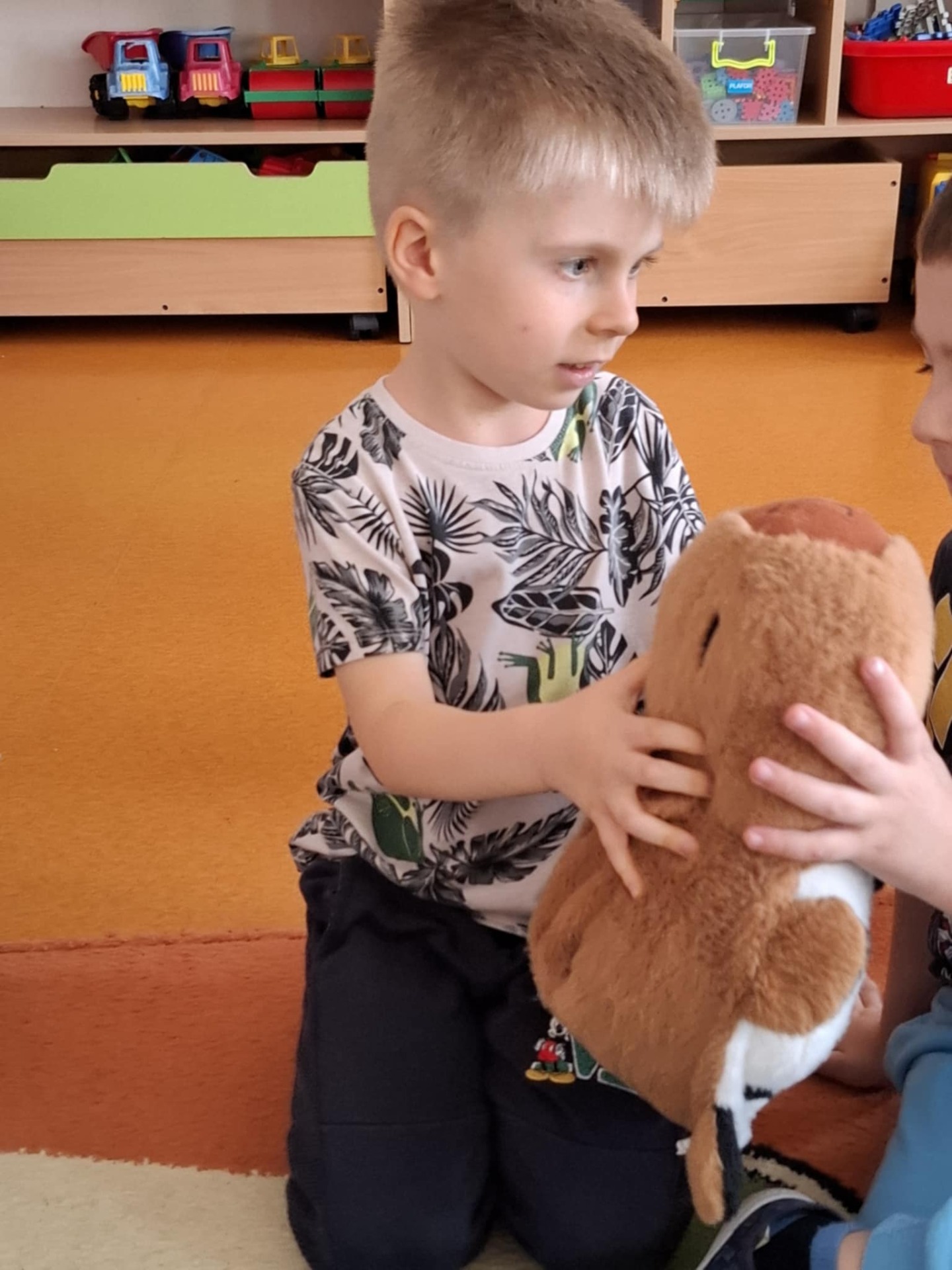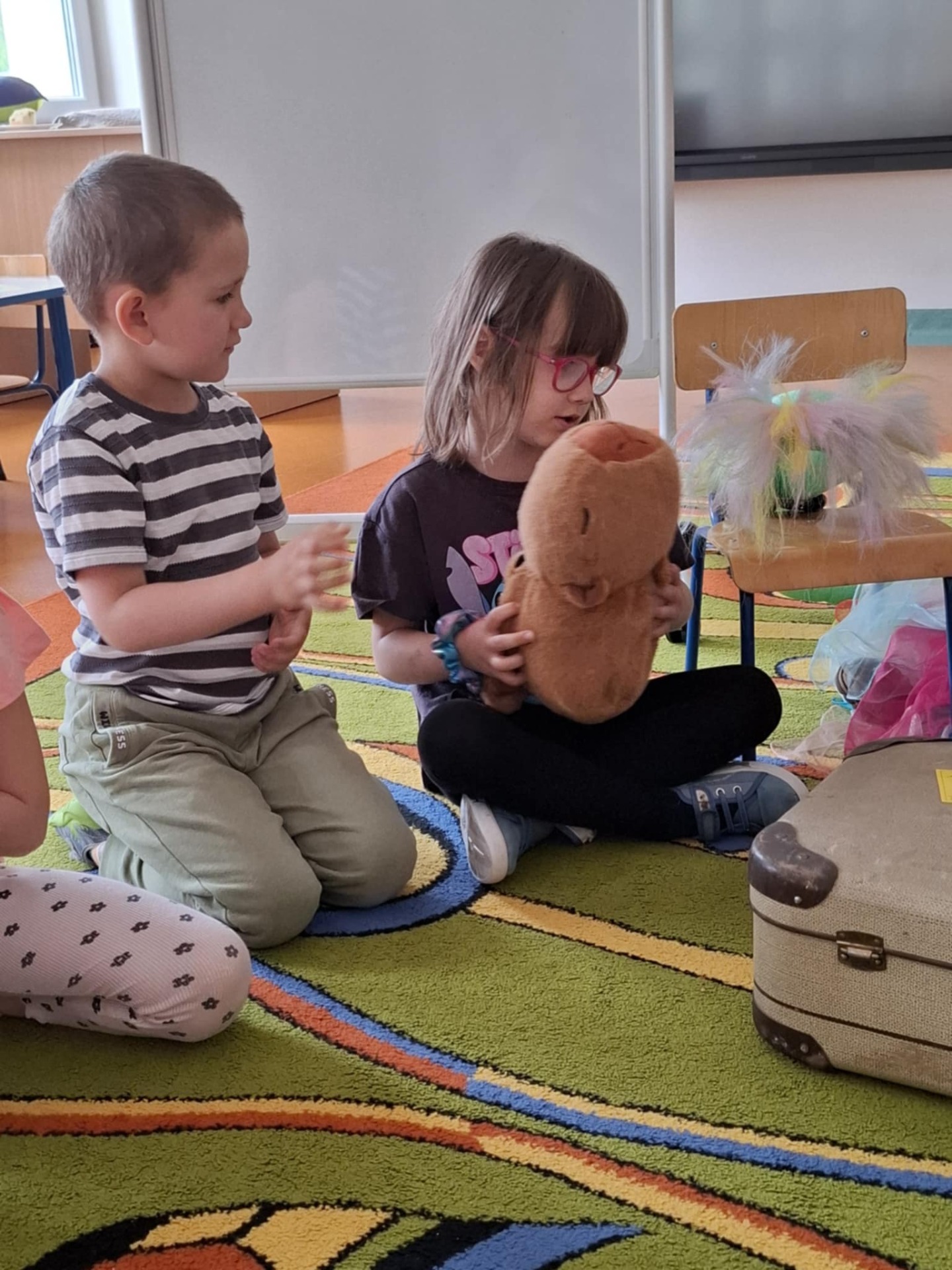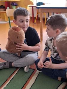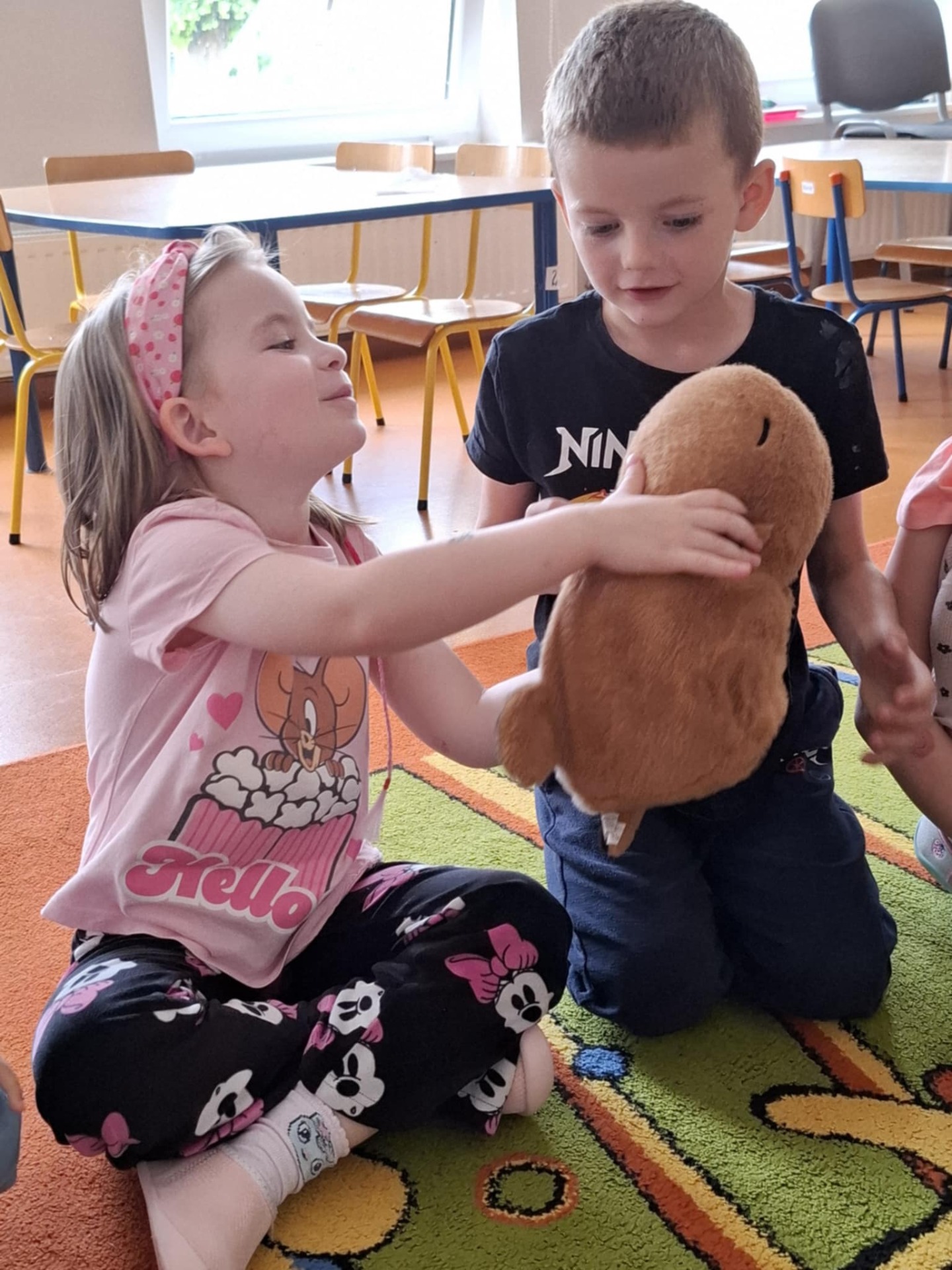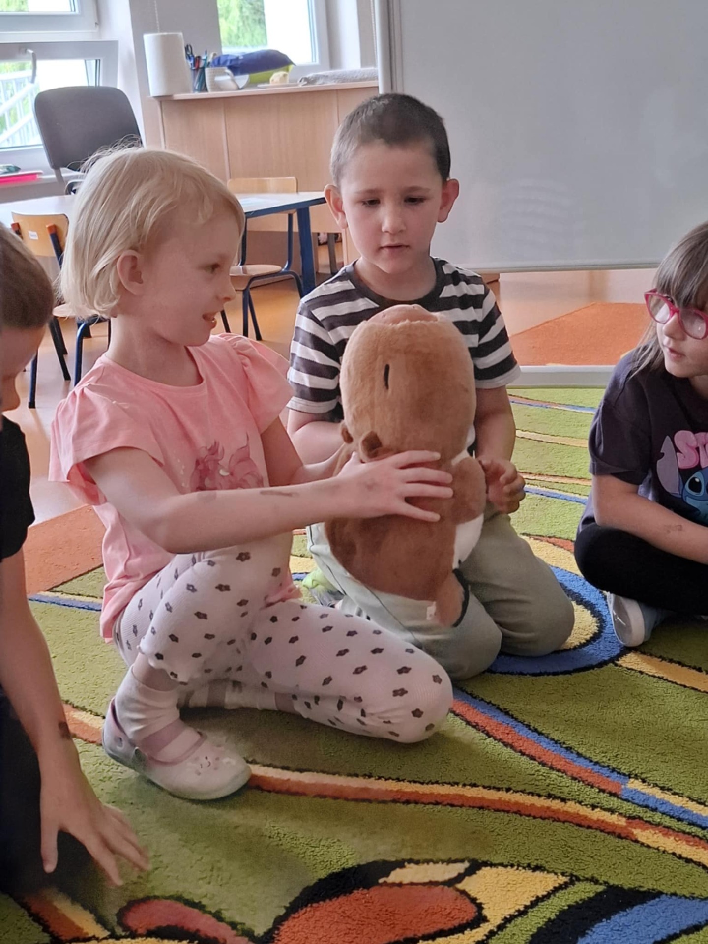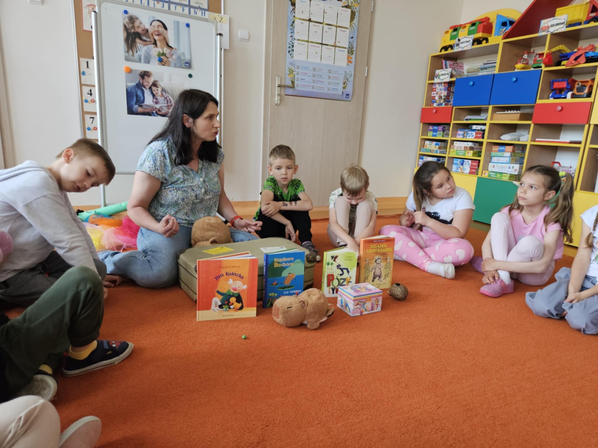 Dzięki ciepłemu głosowi prowadzącej, dzieci z uwagą wsłuchiwały się w każdą historię. Spotkanie nie ograniczało się jedynie do czytania – przedszkolaki mogły dzielić się swoimi przemyśleniami, odpowiadać na pytania oraz opowiadać o swoich ulubionych książkach. Wspólna rozmowa i literacka przygoda stworzyły wyjątkową atmosferę bliskości i wzajemnego zrozumienia.