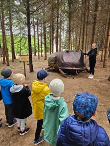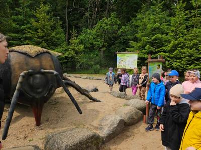 Po porannej zbiórce dzieci wraz z opiekunami wyruszyły autokarem w kierunku Lubnicy. Na miejscu przywitał przedszkolaków przewodnik, który oprowadził grupę po parku i ciekawie opowiadał o życiu owadów.