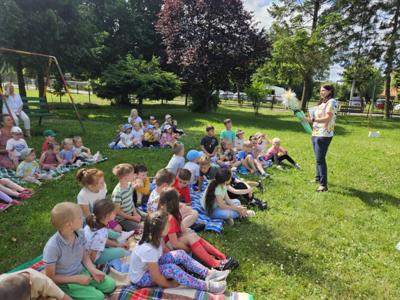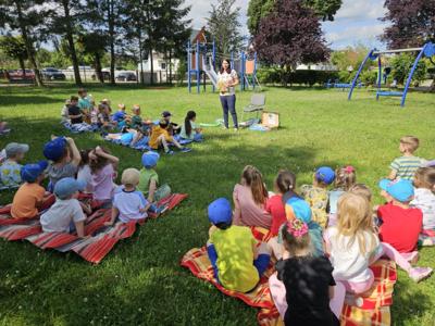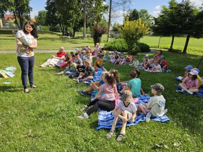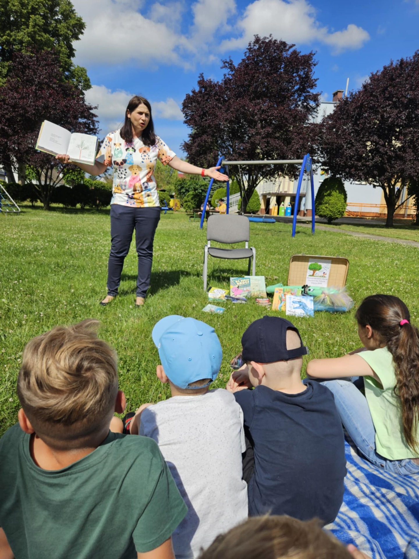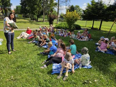 Głównym celem wydarzenia było promowanie czytelnictwa wśród najmłodszych. W otoczeniu natury, na świeżym powietrzu, dzieci miały okazję wysłuchać fragmentów ciekawych książek – zarówno bajek, jak i opowiadań dostosowanych do ich wieku. Pani Monika czytała z pasją, wciągając młodych słuchaczy w świat literatury i rozwijając ich wyobraźnię.