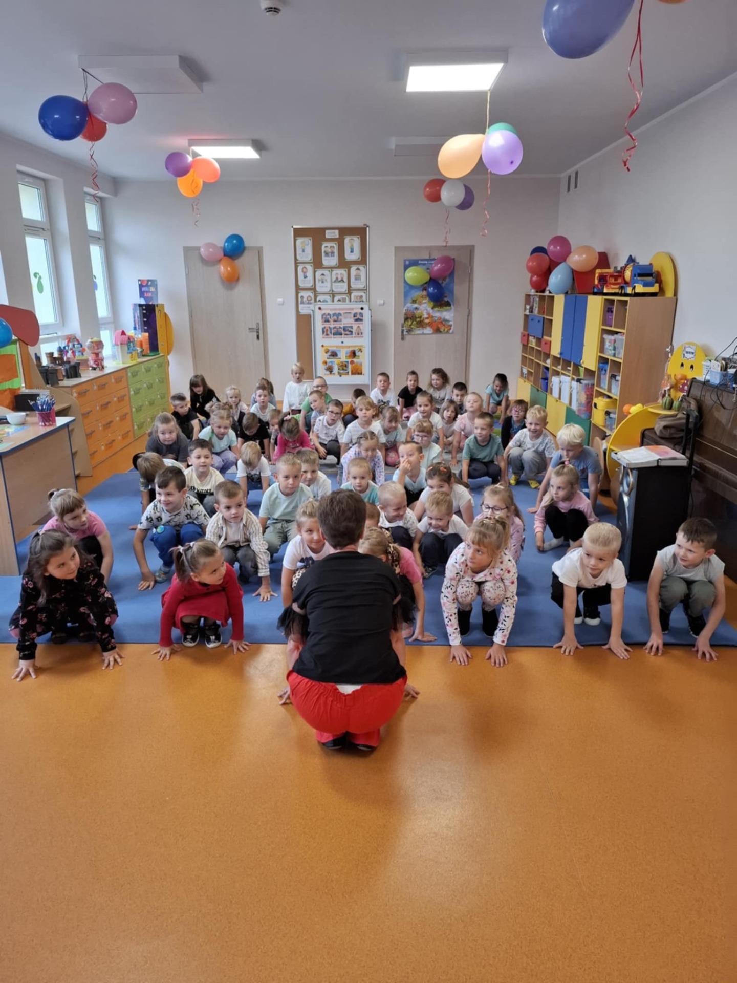 W dniu 18 września w naszym przedszkolu odbyły się uroczyste obchody Dnia Przedszkolaka. Dzieci wzięły udział w licznych wspólnych zabawach, konkursach i tańcach przy muzyce, które zapewniły im wiele radości i uśmiechu. Podczas zajęć dzieci miały okazję rozwijać swoje umiejętności integracyjne oraz współpracę w grupie, uczestnicząc w różnorodnych grach i konkurencjach dostosowanych do ich wieku. Wszyscy aktywnie uczestniczyli w zabawach ruchowych, a muzyka towarzysząca wydarzeniu dodatkowo podkreślała radosny charakter dnia. Na zakończenie obchodów wykonaliśmy zdjęcia grupowe, które będą miłą pamiątką tego wyjątkowego dnia w przedszkolu. Obchody Dnia Przedszkolaka pozwoliły dzieciom poczuć się wyjątkowo i wprowadziły pozytywną atmosferę na początku nowego roku szkolnego.
