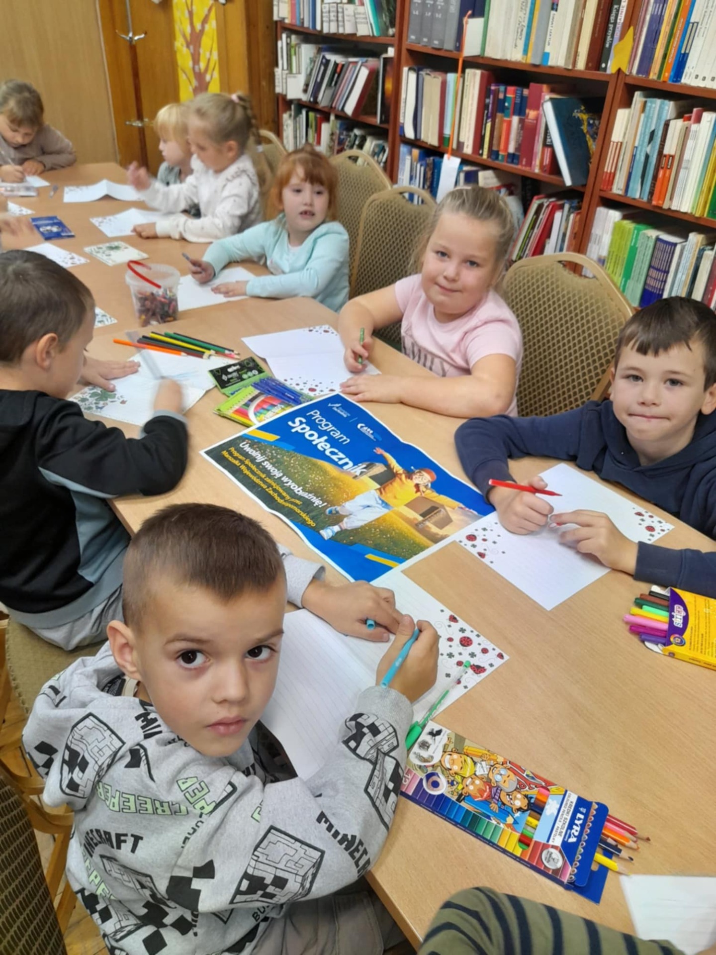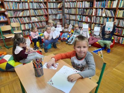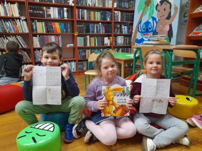 Wizyta przebiegła w miłej, twórczej atmosferze. Dzieci z zaciekawieniem słuchały prowadzącej, chętnie odpowiadały na pytania i dzieliły się swoimi doświadczeniami. Na zakończenie spotkania każdy uczestnik otrzymał na pamiątkę list oraz został zaproszony do ponownego odwiedzenia biblioteki wraz z rodzicami.