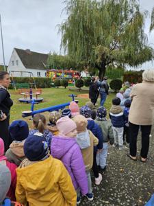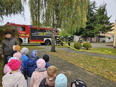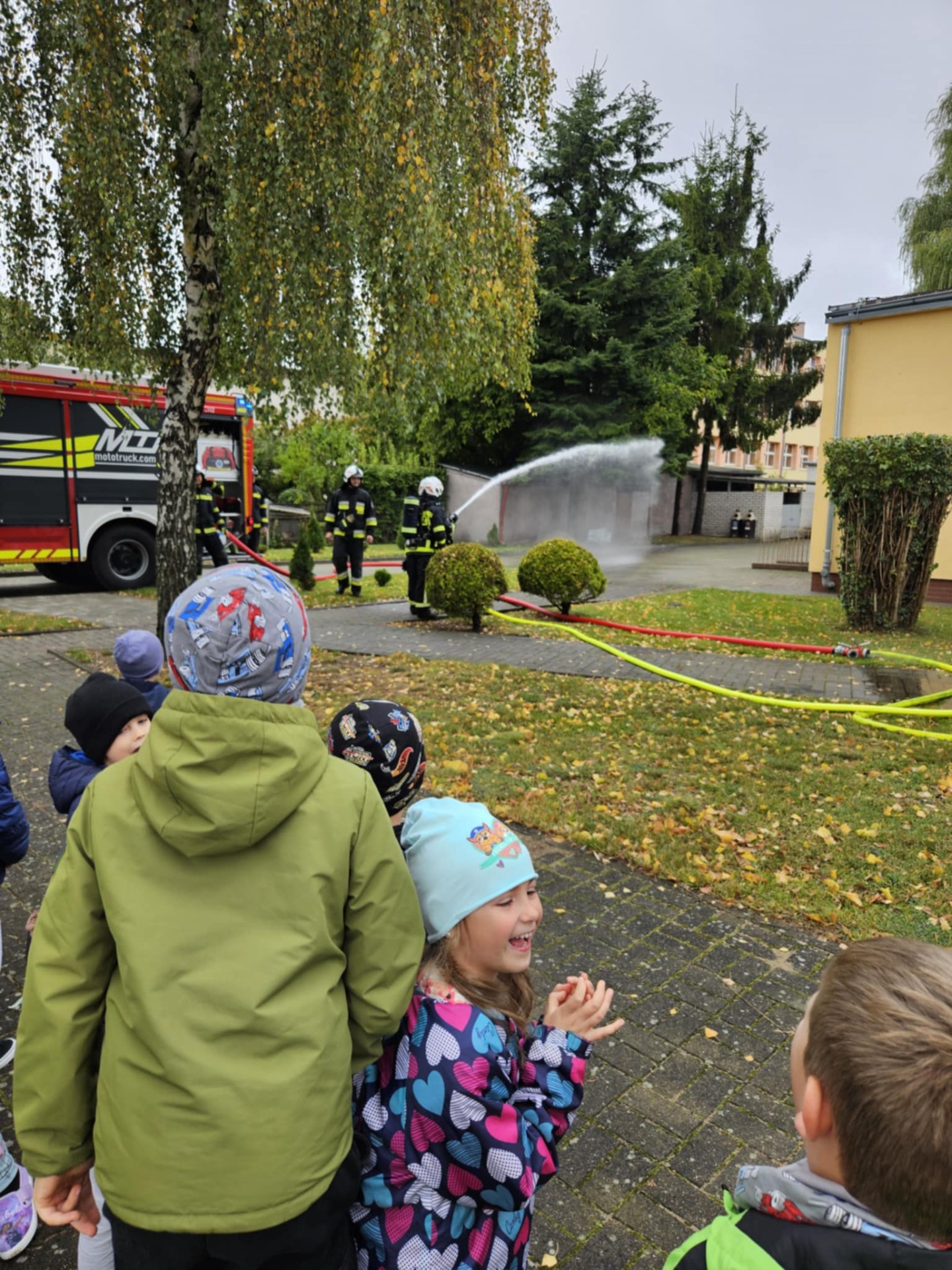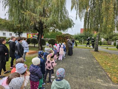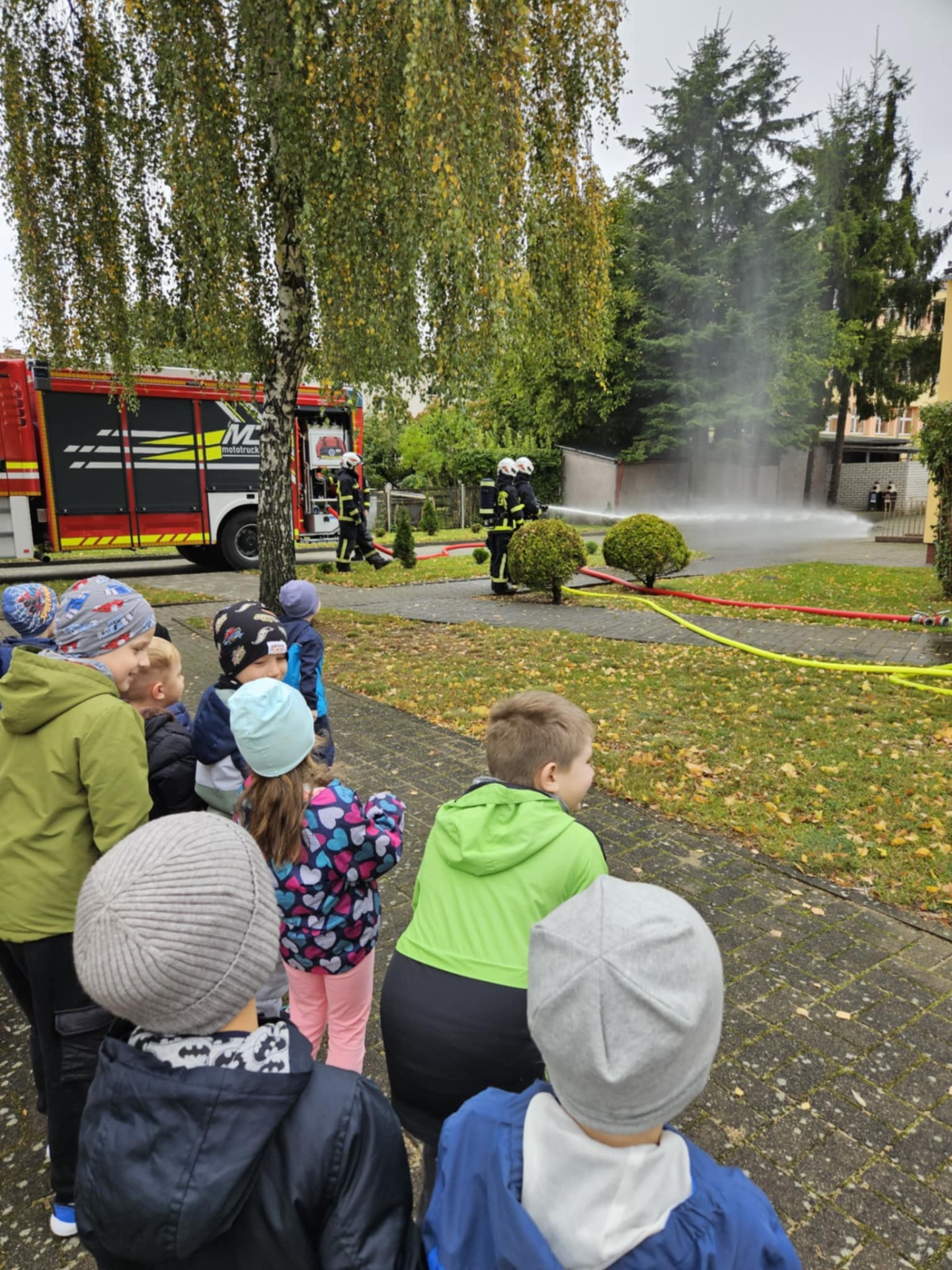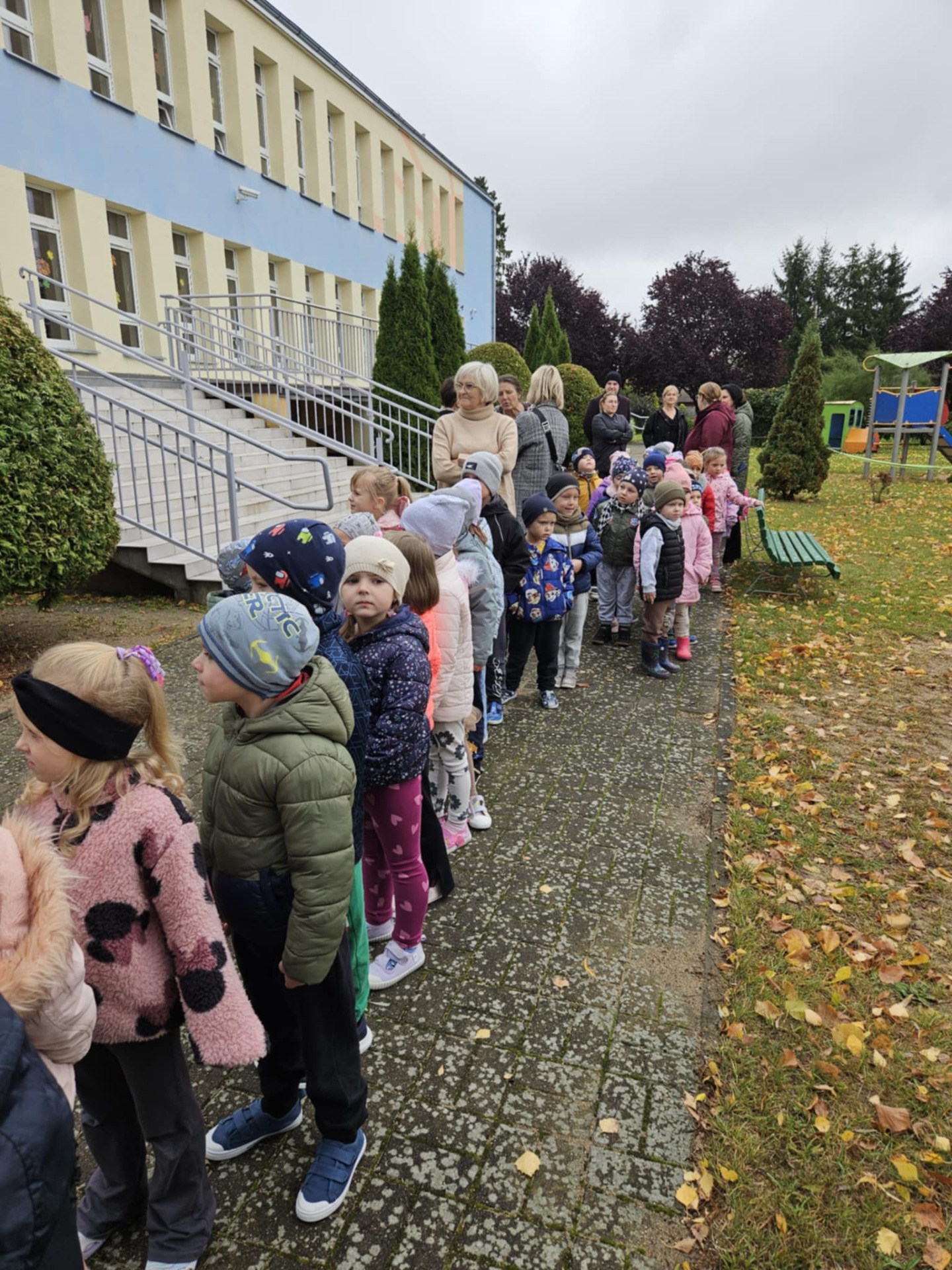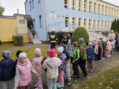 7 października w naszym przedszkolu odbyła się próbna ewakuacja z udziałem strażaków z Ochotniczej Straży Pożarnej w Mirosławcu. Celem ćwiczenia było przypomnienie dzieciom oraz pracownikom zasad bezpiecznego opuszczania budynku w sytuacji zagrożenia pożarem lub innym niebezpieczeństwem. Po ogłoszeniu alarmu wszystkie grupy, pod opieką swoich nauczycieli, sprawnie i spokojnie opuściły sale przedszkolne, kierując się wyznaczonymi drogami ewakuacyjnymi na plac przedszkolny – miejsce zbiórki. Tam nauczyciele przeliczyli dzieci i potwierdzili, że wszyscy uczestnicy znajdują się w bezpiecznym miejscu. Cała akcja przebiegła bez zakłóceń, a czas ewakuacji wyniósł zaledwie kilka minut. Dzieci wykazały się dużą znajomością zasad bezpieczeństwa i wzorową postawą, za co należą się im ogromne brawa! 👏
