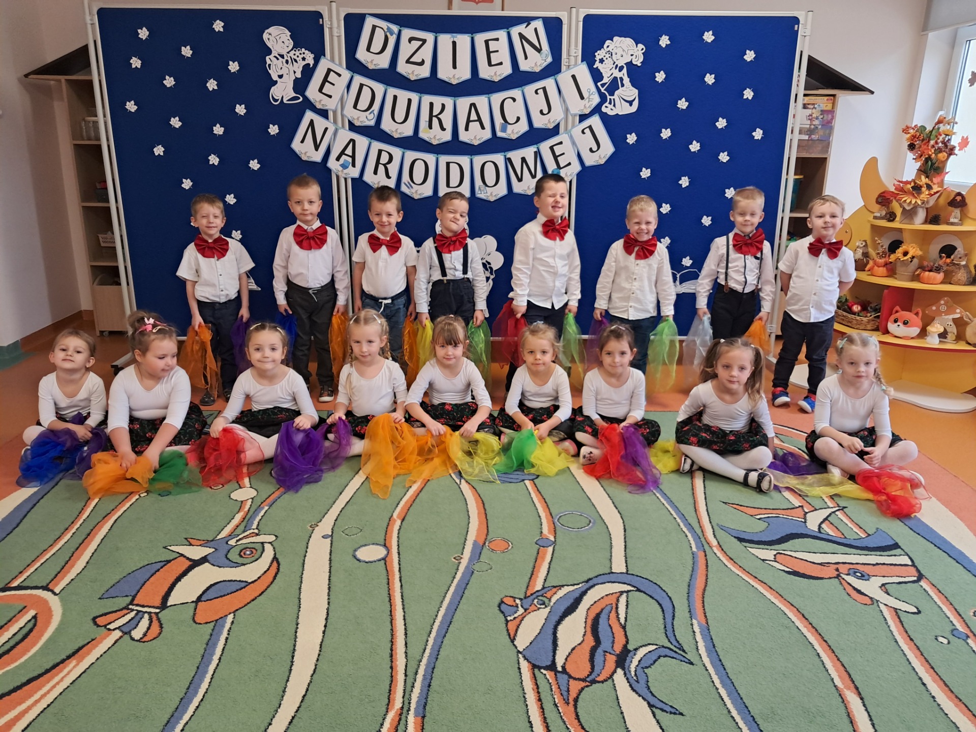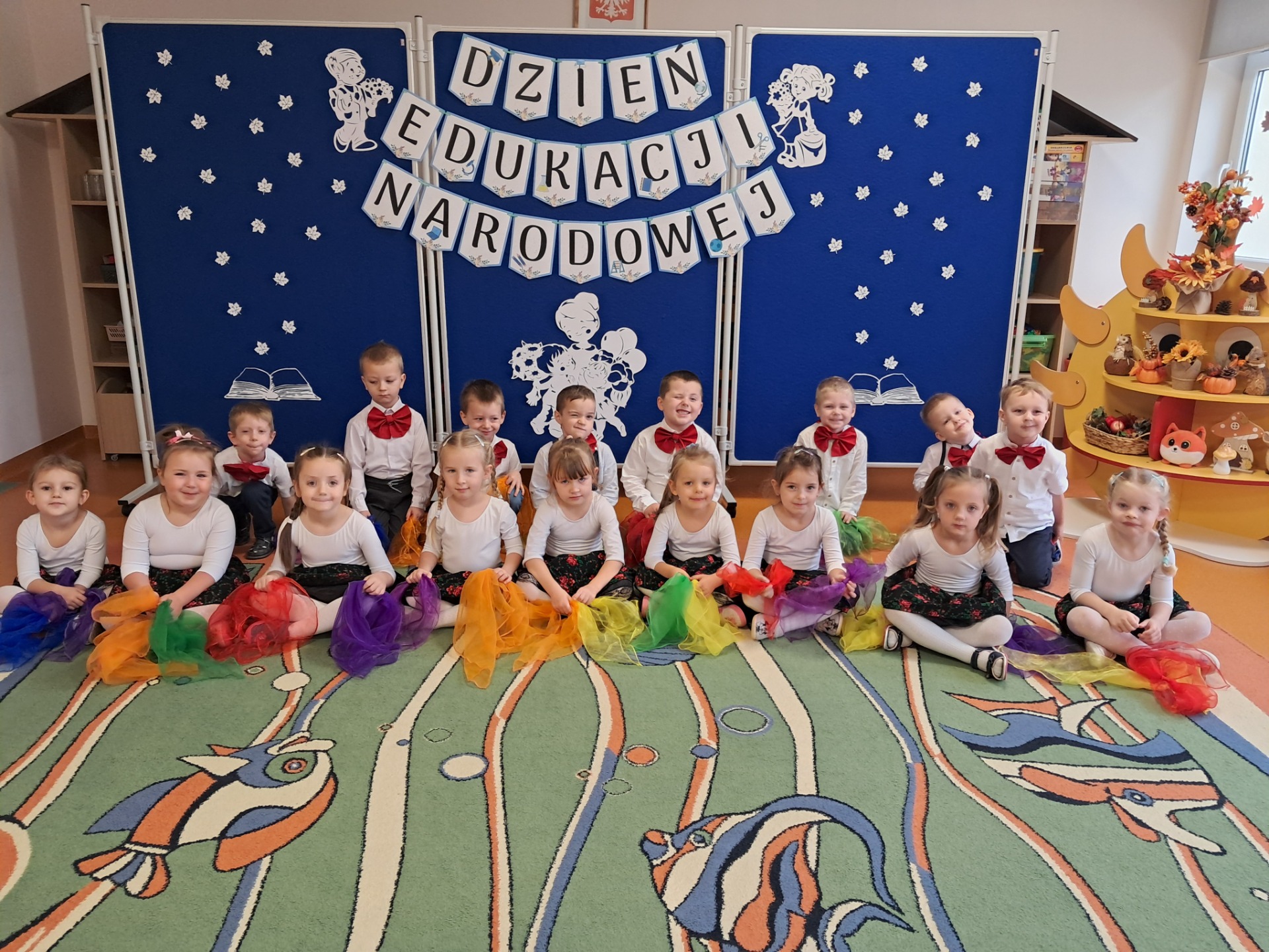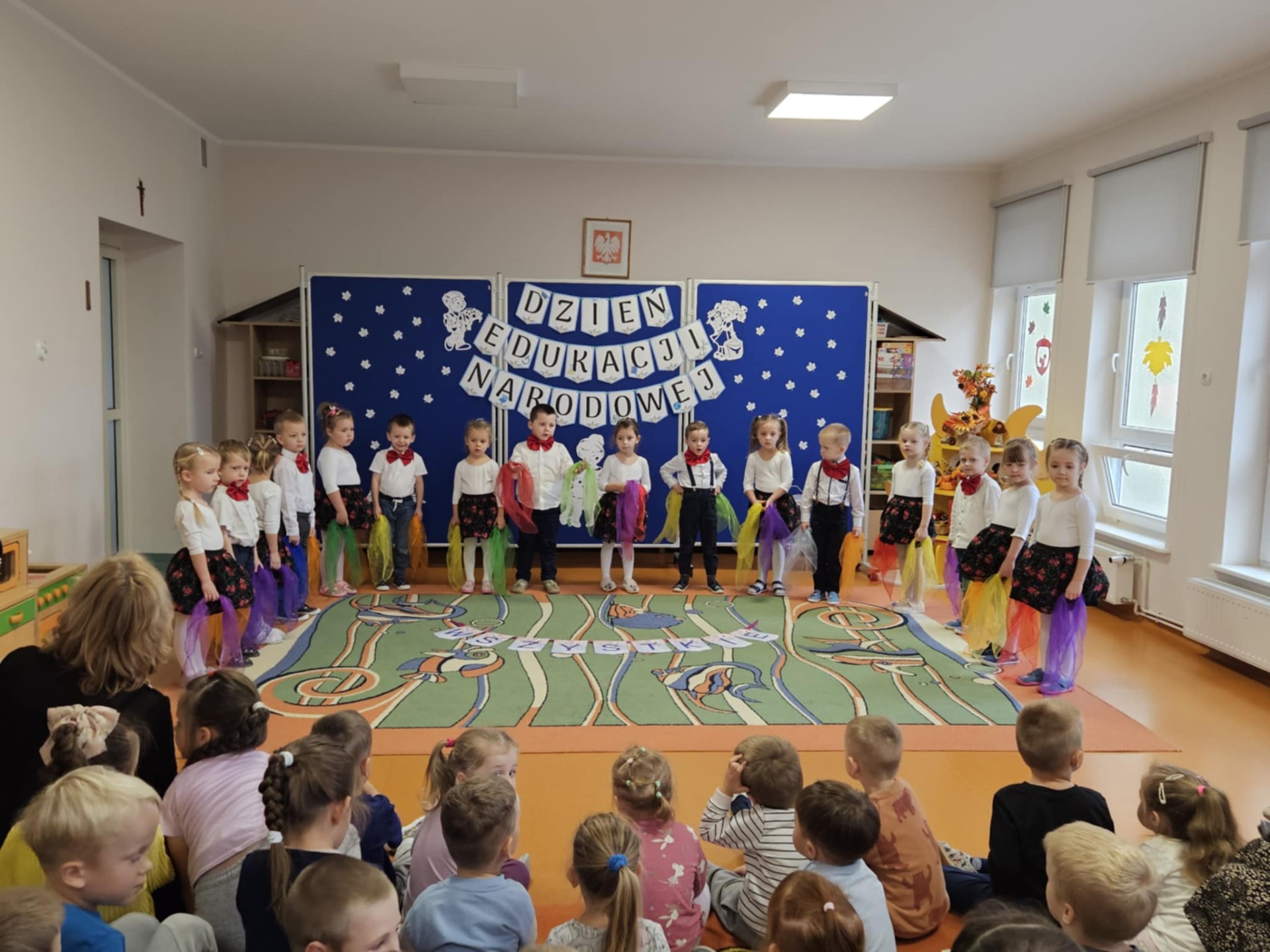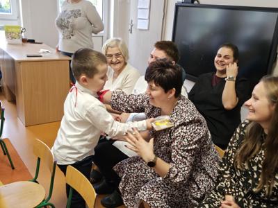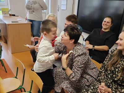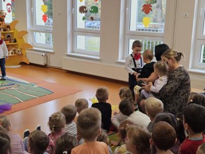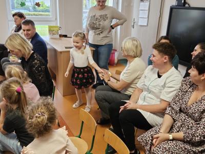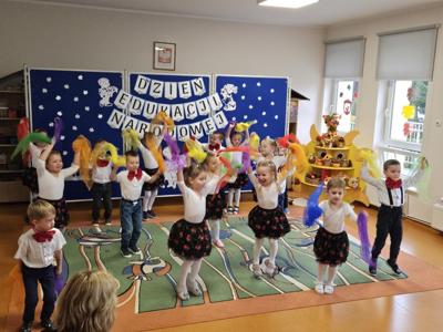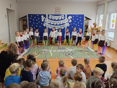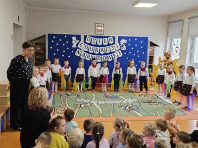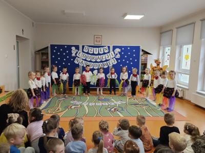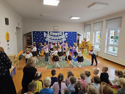 14 października w naszym przedszkolu odbyły się uroczyste obchody Dnia Edukacji Narodowej. Była to wyjątkowa okazja, by podziękować wszystkim nauczycielom i pracownikom przedszkola za ich codzienny trud, uśmiech i serce wkładane w pracę z dziećmi. Część artystyczną przygotowały dzieci z grupy „Muchomorki”. Przedszkolaki zaprezentowały program słowno–muzyczny, na który składały się piosenki, taniec oraz mini skecz. Występ był pełen radości, wzruszeń i dziecięcego entuzjazmu – widownia nagrodziła młodych artystów gromkimi brawami. Po części artystycznej dzieci wręczyły wszystkim pracownikom przedszkola symboliczne upominki w dowód wdzięczności za ich pracę, troskę i serdeczność okazywaną każdego dnia. Uroczystość przebiegła w bardzo miłej i ciepłej atmosferze, a wspólne świętowanie dostarczyło wszystkim wielu pozytywnych emocji i pięknych wspomnień.