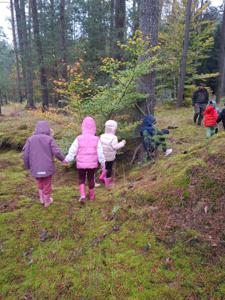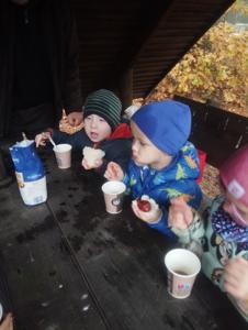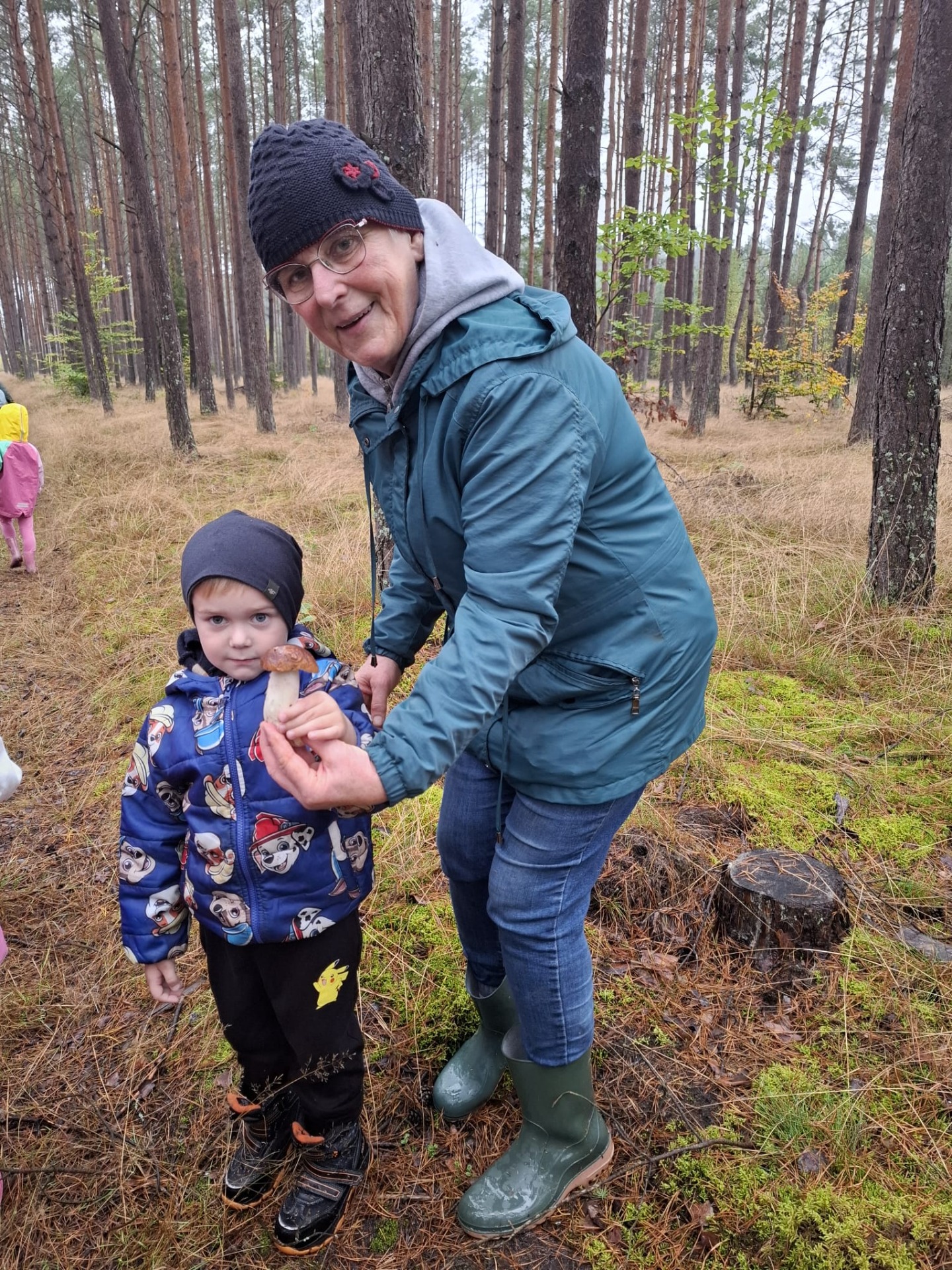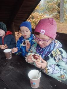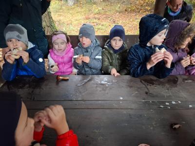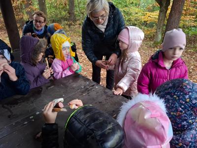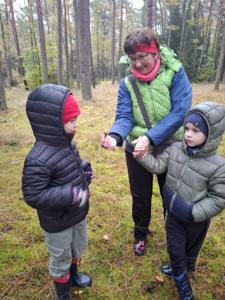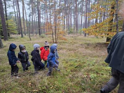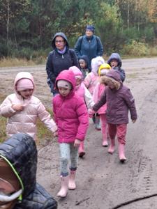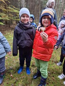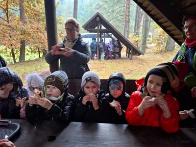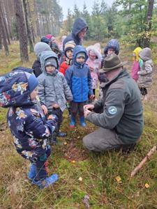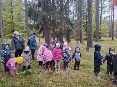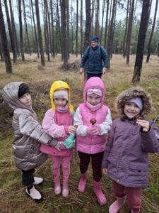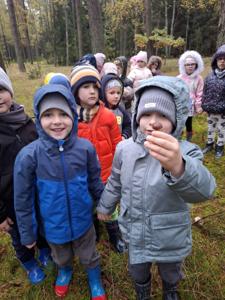 Dnia 17 października grupy Deszczowe Kropelki i Tęczowe Nutki wzięły udział w grzybobraniu zorganizowanym przez Nadleśnictwo Mirosławiec. Mimo deszczowej pogody dzieci mogły spędzić czas w pięknych okolicznościach przyrody nad urokliwym Jeziorem Harcerskim. Podczas spaceru panowie leśnicy zapoznali dzieci z zasadami bezpiecznego zbierania grzybów, roli grzybów w leśnym ekosystemie oraz o ochronie przyrody. Przedszkolaki dziękują za mile spędzony czas.