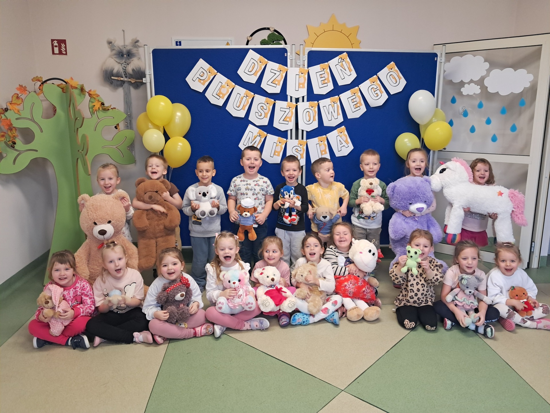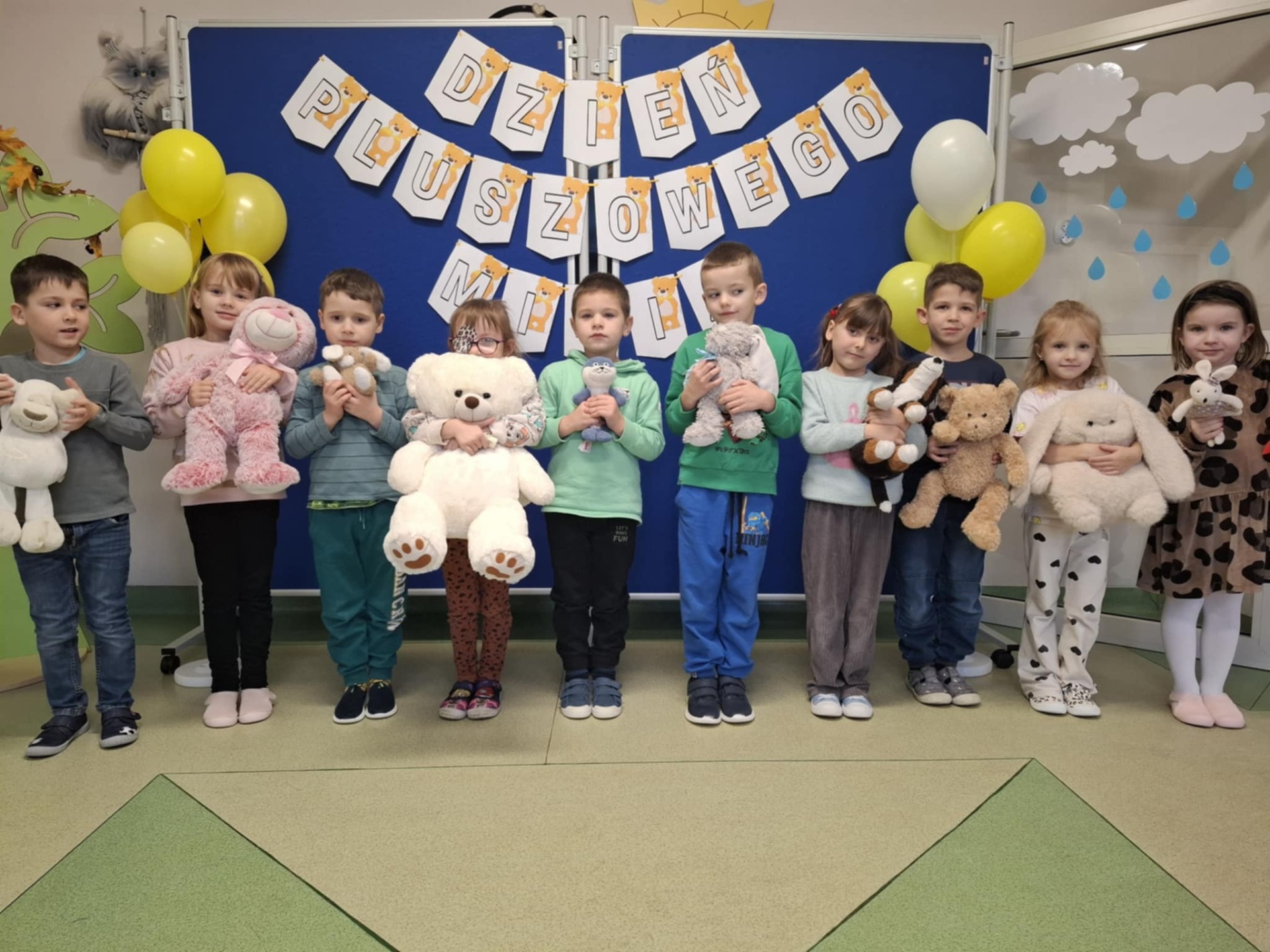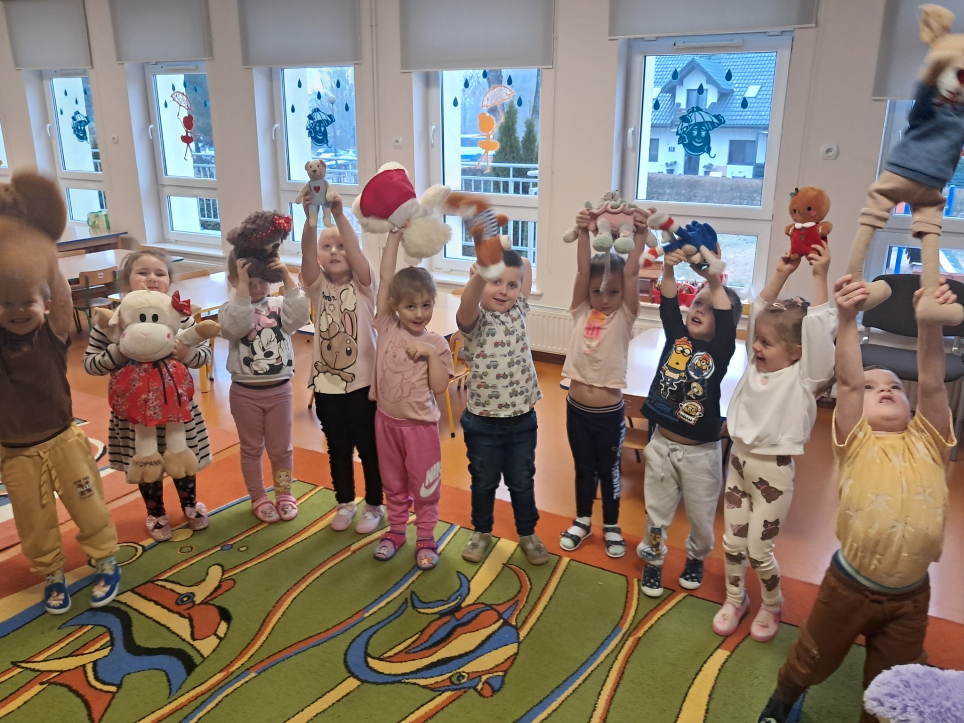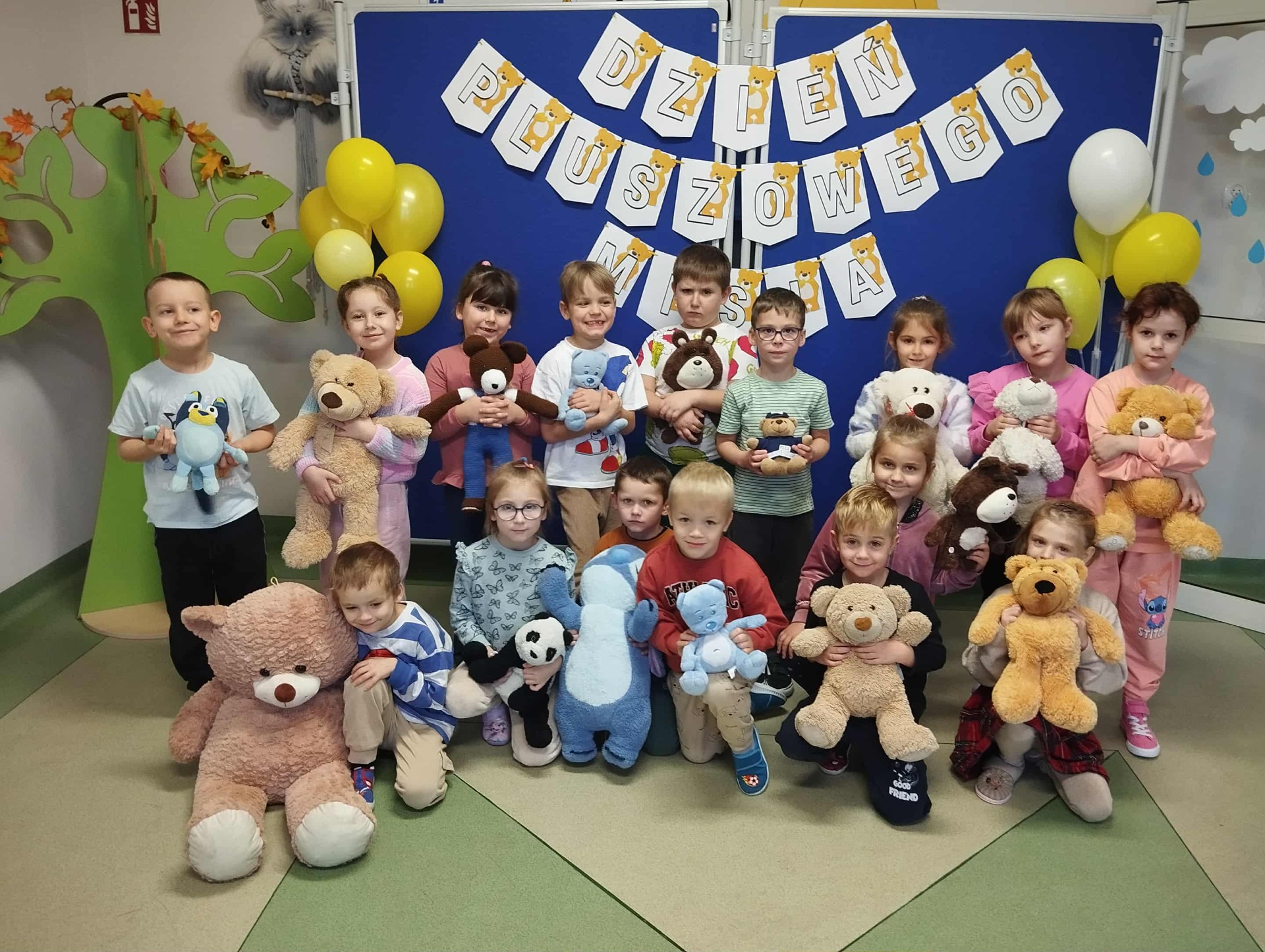 25 listopada w naszym przedszkolu świętowaliśmy Dzień Pluszowego Misia, który jak co roku dostarczył dzieciom wiele radości i niezapomnianych wrażeń. Tego dnia przedszkolaki przyniosły do sal swoje ulubione pluszowe misie, aby wspólnie przeżyć wyjątkowe chwile pełne zabawy i twórczej aktywności. Przedszkolaki z zainteresowaniem wysłuchały opowieści o tym, skąd wziął się pierwszy miś i dlaczego stał się jedną z najbardziej lubianych dziecięcych zabawek na świecie. Nie zabrakło również zabaw z misiami przy muzyce. Dzieci tańczyły, poruszały się w rytm wesołych piosenek oraz uczestniczyły w zabawach integracyjnych, które rozwijały ich sprawność ruchową i wywołały wiele uśmiechów. Inną atrakcją było układanie puzzli z wizerunkiem misiów. Zadanie to nie tylko bawiło, ale również doskonaliło koncentrację i umiejętność współpracy. Przedszkolaki chętnie pomagały sobie nawzajem, aby jak najszybciej ułożyć obrazki. Wspólny dzień z misiami zakończyła praca plastyczna, podczas której dzieci tworzyły swojego własnego misia wykorzystując kolorowanie, wycinanie i sklejanie elementów. Każdy miś był wyjątkowy i odzwierciedlał kreatywność małych twórców. Obchody Dnia Pluszowego Misia upłynęły w atmosferze radości i wspólnej zabawy. Był to dzień pełen uśmiechów, w trakcie którego dzieci mogły nie tylko dobrze się bawić, ale również rozwijać swoje umiejętności i wyobraźnię.