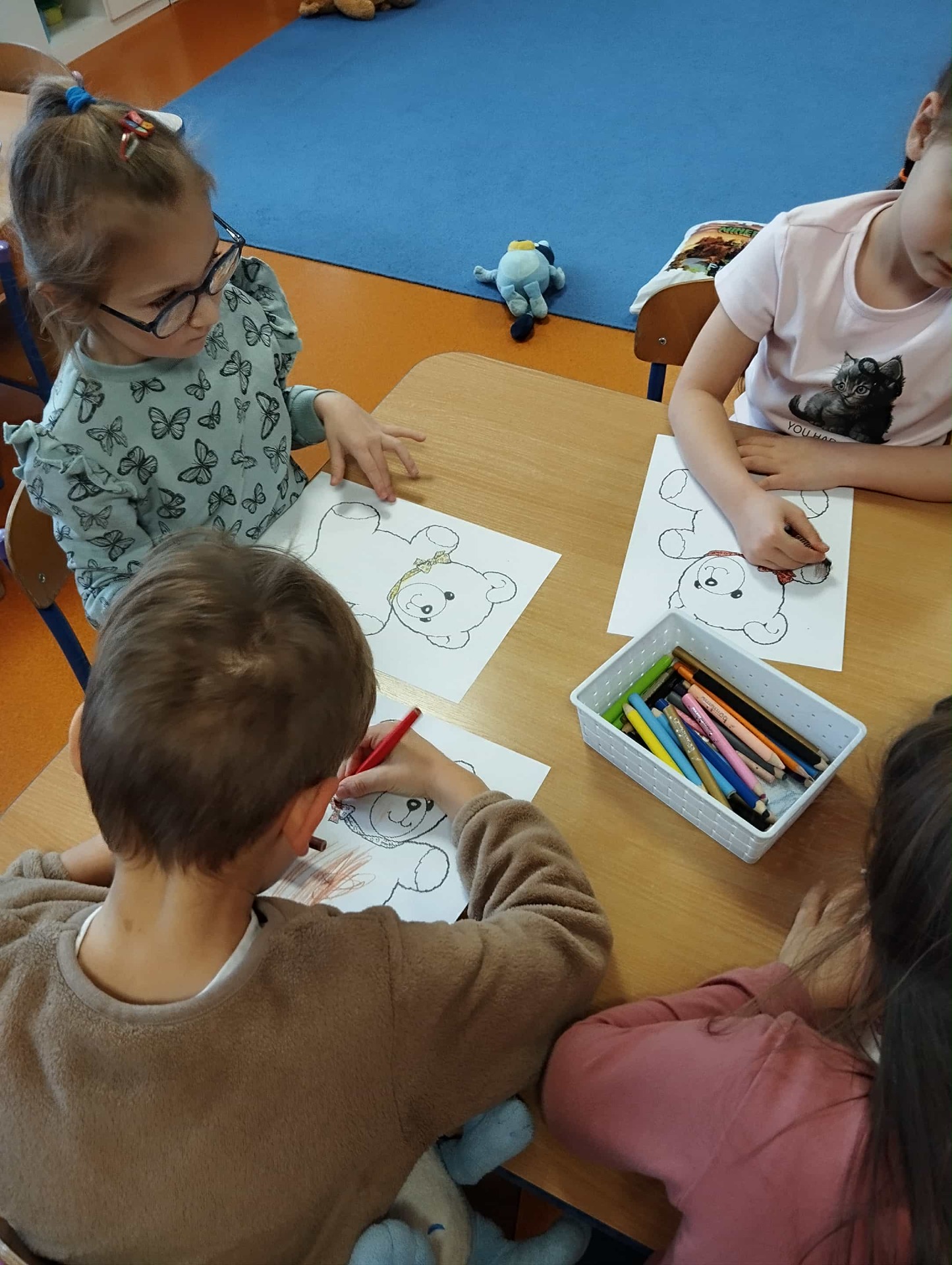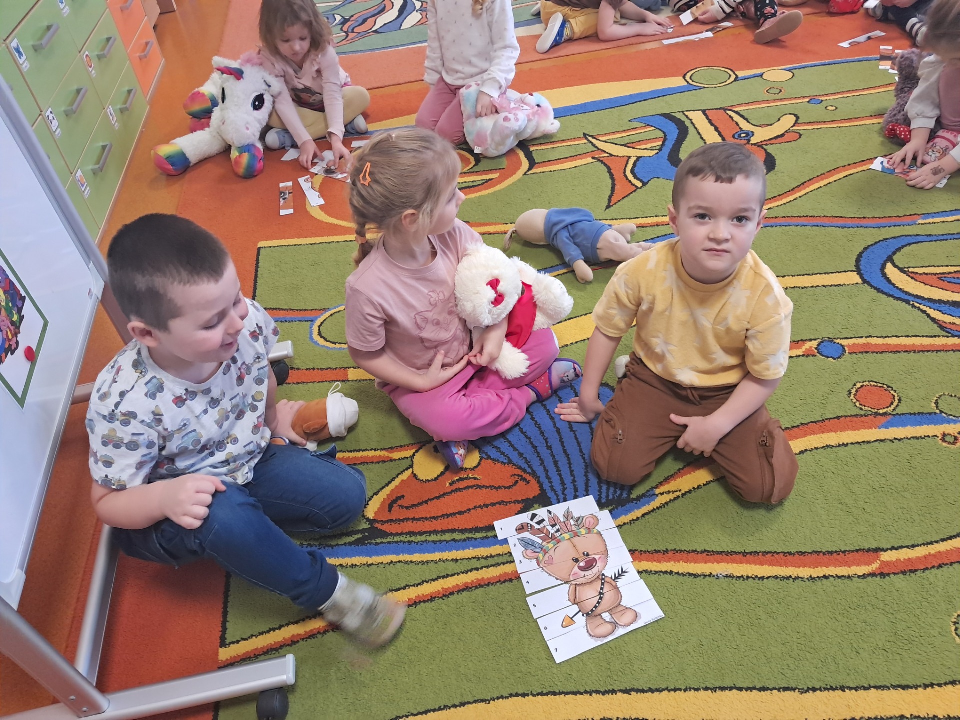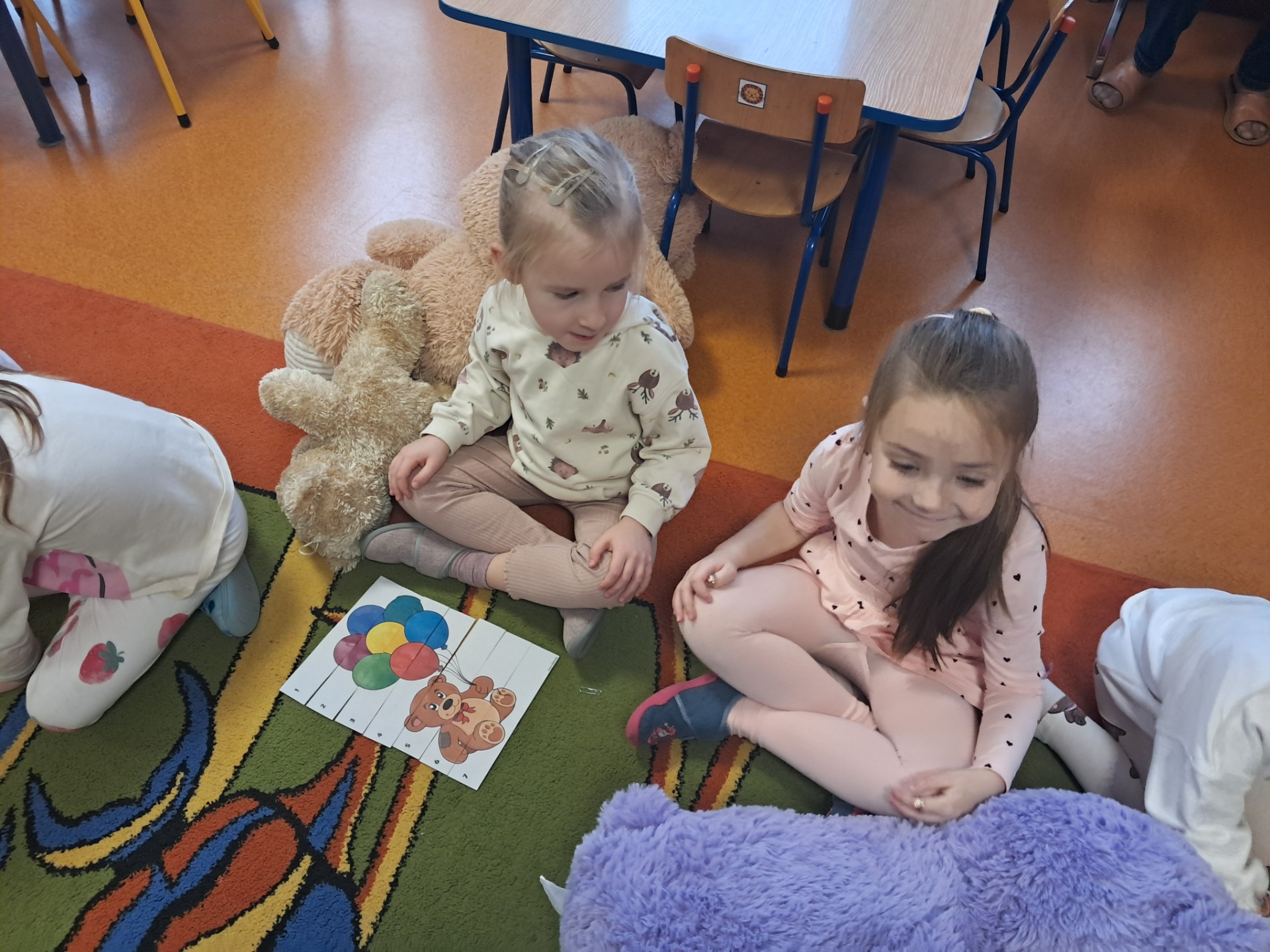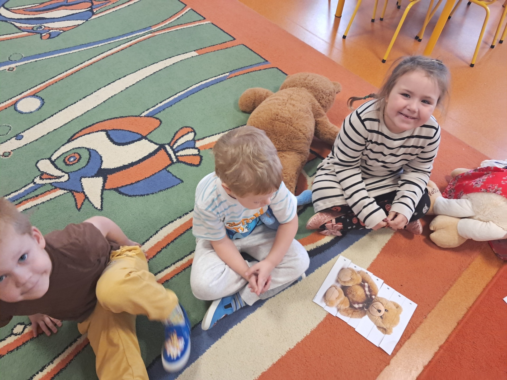 25 listopada w naszym przedszkolu świętowaliśmy Dzień Pluszowego Misia, który jak co roku dostarczył dzieciom wiele radości i niezapomnianych wrażeń. Tego dnia przedszkolaki przyniosły do sal swoje ulubione pluszowe misie, aby wspólnie przeżyć wyjątkowe chwile pełne zabawy i twórczej aktywności. Przedszkolaki z zainteresowaniem wysłuchały opowieści o tym, skąd wziął się pierwszy miś i dlaczego stał się jedną z najbardziej lubianych dziecięcych zabawek na świecie. Nie zabrakło również zabaw z misiami przy muzyce. Dzieci tańczyły, poruszały się w rytm wesołych piosenek oraz uczestniczyły w zabawach integracyjnych, które rozwijały ich sprawność ruchową i wywołały wiele uśmiechów. Inną atrakcją było układanie puzzli z wizerunkiem misiów. Zadanie to nie tylko bawiło, ale również doskonaliło koncentrację i umiejętność współpracy. Przedszkolaki chętnie pomagały sobie nawzajem, aby jak najszybciej ułożyć obrazki. Wspólny dzień z misiami zakończyła praca plastyczna, podczas której dzieci tworzyły swojego własnego misia wykorzystując kolorowanie, wycinanie i sklejanie elementów. Każdy miś był wyjątkowy i odzwierciedlał kreatywność małych twórców. Obchody Dnia Pluszowego Misia upłynęły w atmosferze radości i wspólnej zabawy. Był to dzień pełen uśmiechów, w trakcie którego dzieci mogły nie tylko dobrze się bawić, ale również rozwijać swoje umiejętności i wyobraźnię.