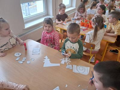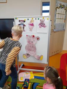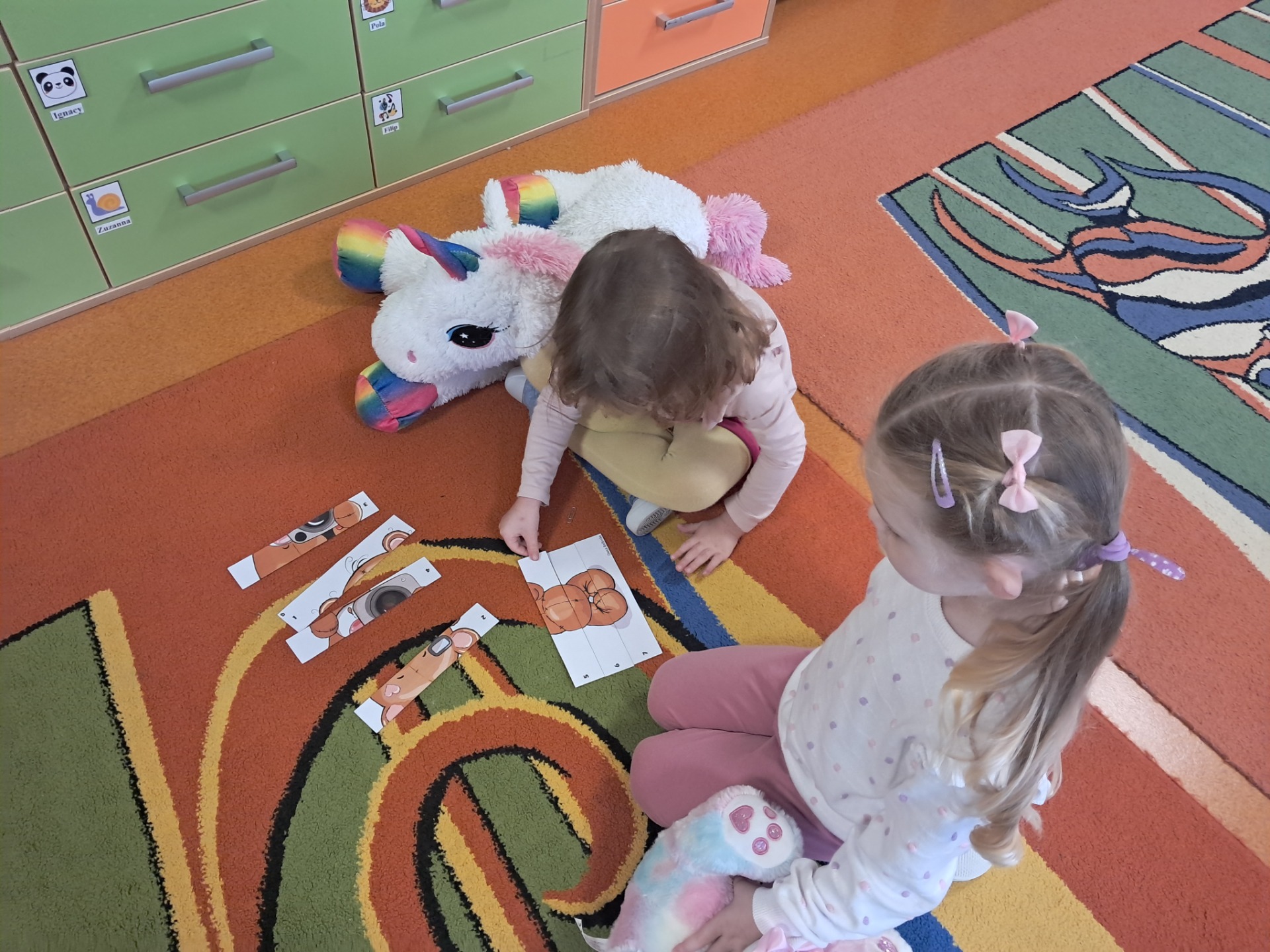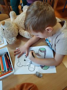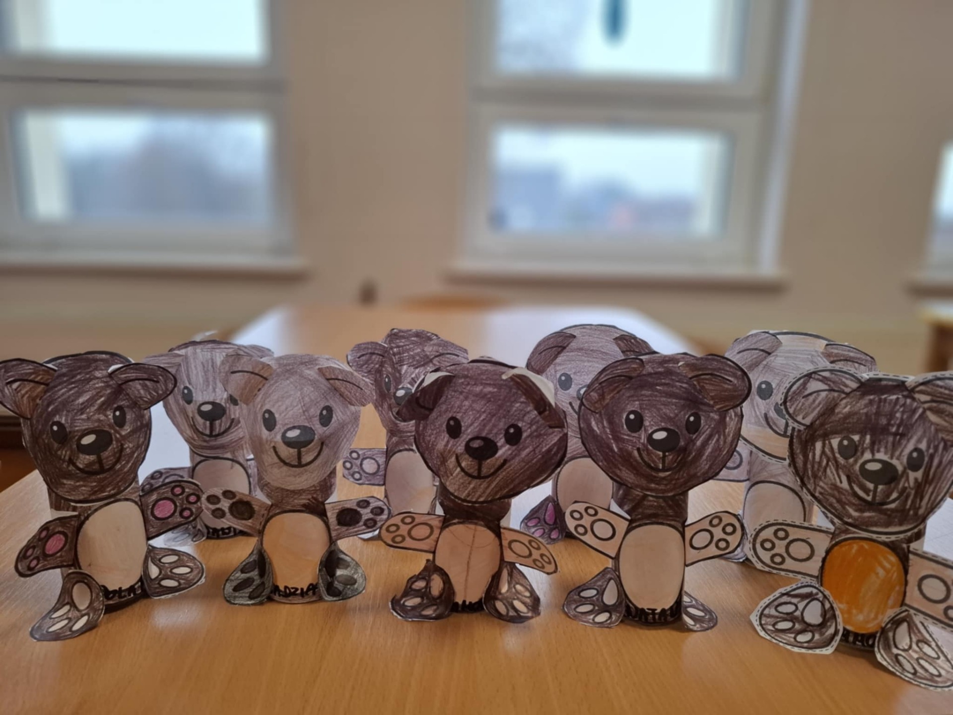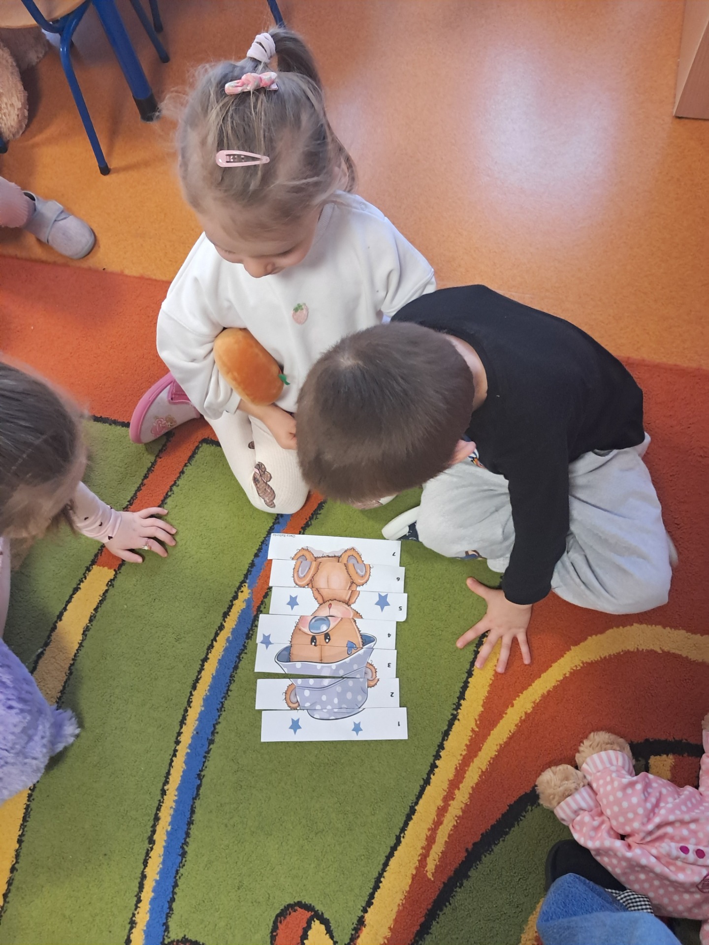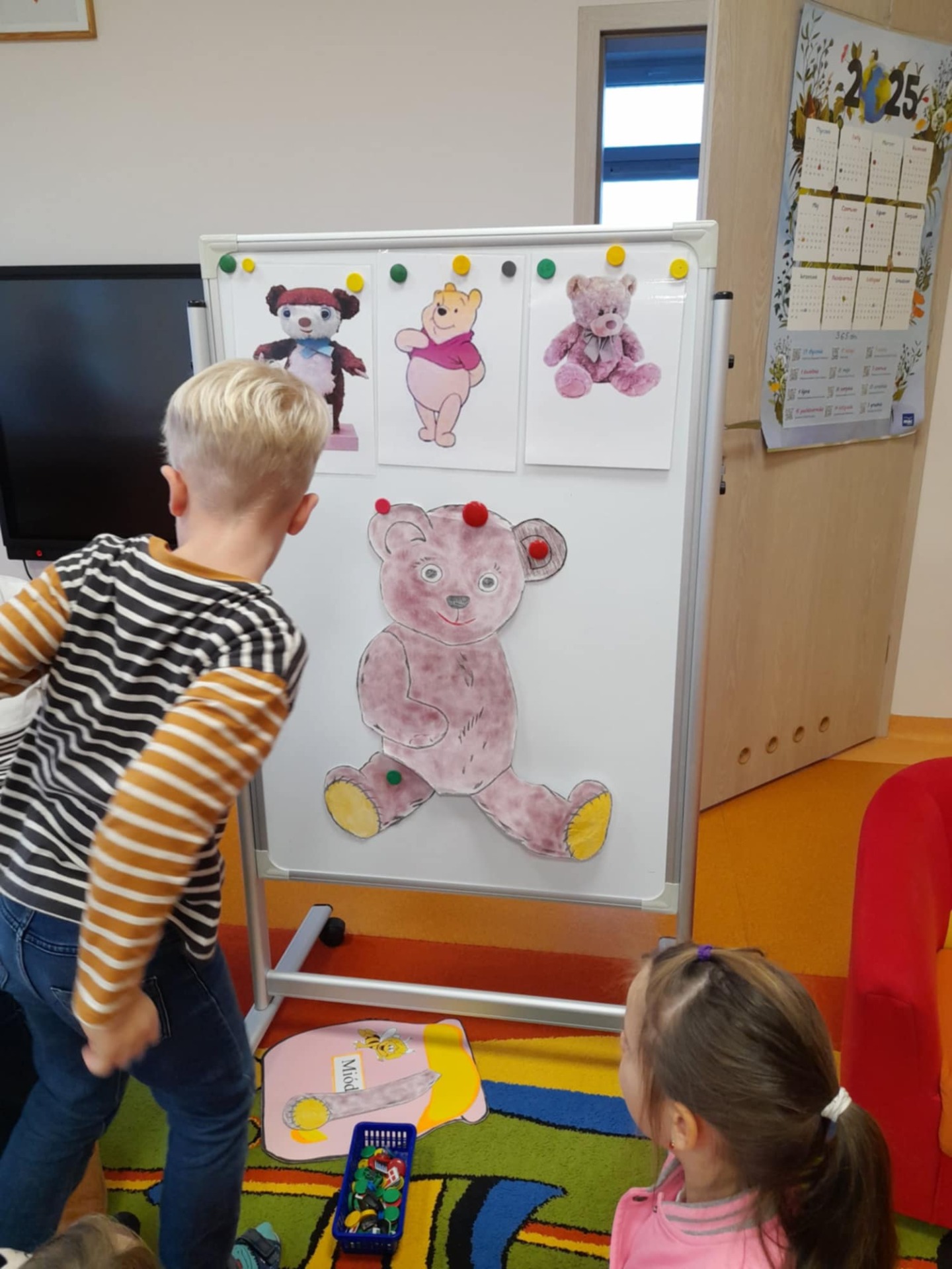 25 listopada w naszym przedszkolu świętowaliśmy Dzień Pluszowego Misia, który jak co roku dostarczył dzieciom wiele radości i niezapomnianych wrażeń. Tego dnia przedszkolaki przyniosły do sal swoje ulubione pluszowe misie, aby wspólnie przeżyć wyjątkowe chwile pełne zabawy i twórczej aktywności. Przedszkolaki z zainteresowaniem wysłuchały opowieści o tym, skąd wziął się pierwszy miś i dlaczego stał się jedną z najbardziej lubianych dziecięcych zabawek na świecie. Nie zabrakło również zabaw z misiami przy muzyce. Dzieci tańczyły, poruszały się w rytm wesołych piosenek oraz uczestniczyły w zabawach integracyjnych, które rozwijały ich sprawność ruchową i wywołały wiele uśmiechów. Inną atrakcją było układanie puzzli z wizerunkiem misiów. Zadanie to nie tylko bawiło, ale również doskonaliło koncentrację i umiejętność współpracy. Przedszkolaki chętnie pomagały sobie nawzajem, aby jak najszybciej ułożyć obrazki. Wspólny dzień z misiami zakończyła praca plastyczna, podczas której dzieci tworzyły swojego własnego misia wykorzystując kolorowanie, wycinanie i sklejanie elementów. Każdy miś był wyjątkowy i odzwierciedlał kreatywność małych twórców. Obchody Dnia Pluszowego Misia upłynęły w atmosferze radości i wspólnej zabawy. Był to dzień pełen uśmiechów, w trakcie którego dzieci mogły nie tylko dobrze się bawić, ale również rozwijać swoje umiejętności i wyobraźnię.