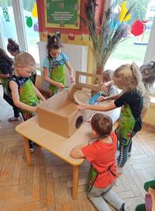 23 września dzieci z grupy starszaków zrealizowały jedno z zadań Ogólnopolskiego Projektu Edukacyjnego "Z darami natury świat nie jest ponury" - "Karton i jego drugie życie". Celem naszych działań było kreatywne wykorzystanie kartonu. Przy okazji tematu tygodniowego "Moja droga do...