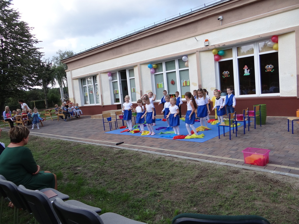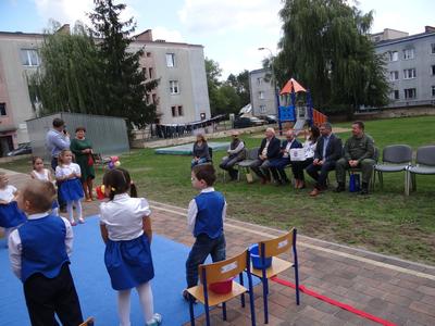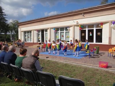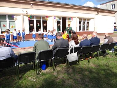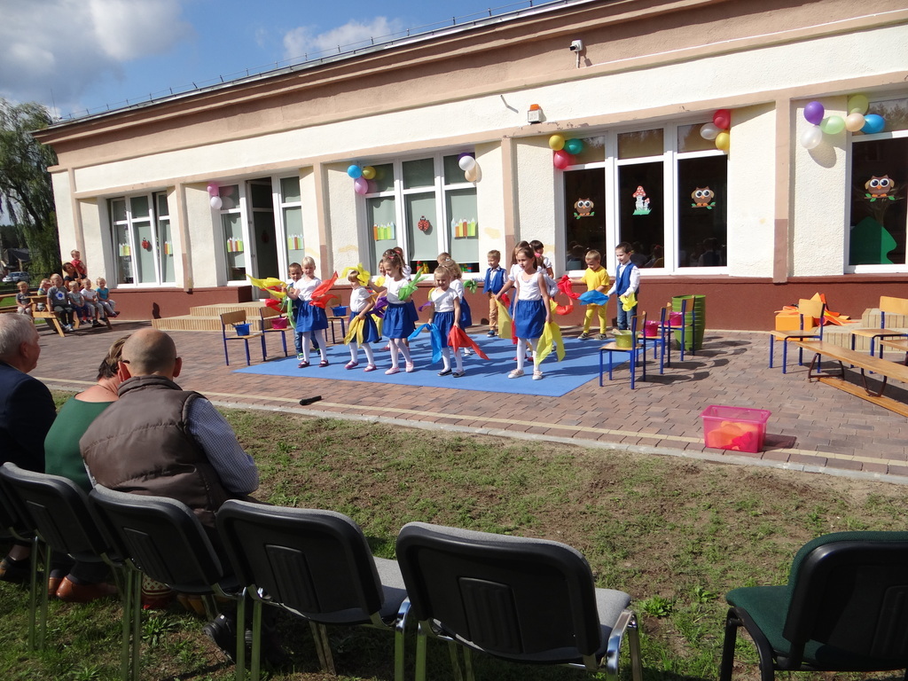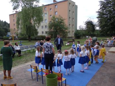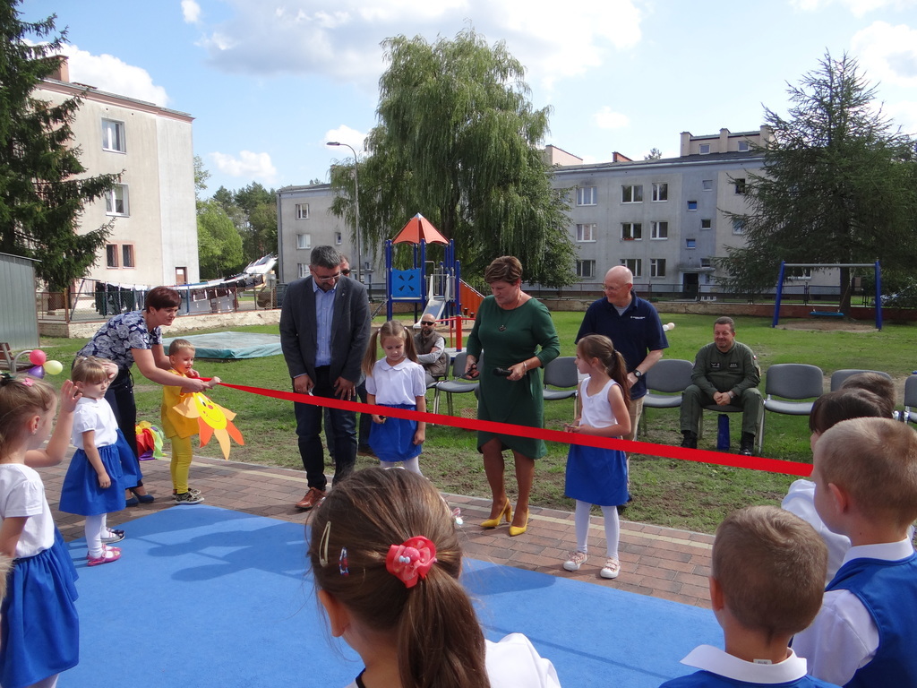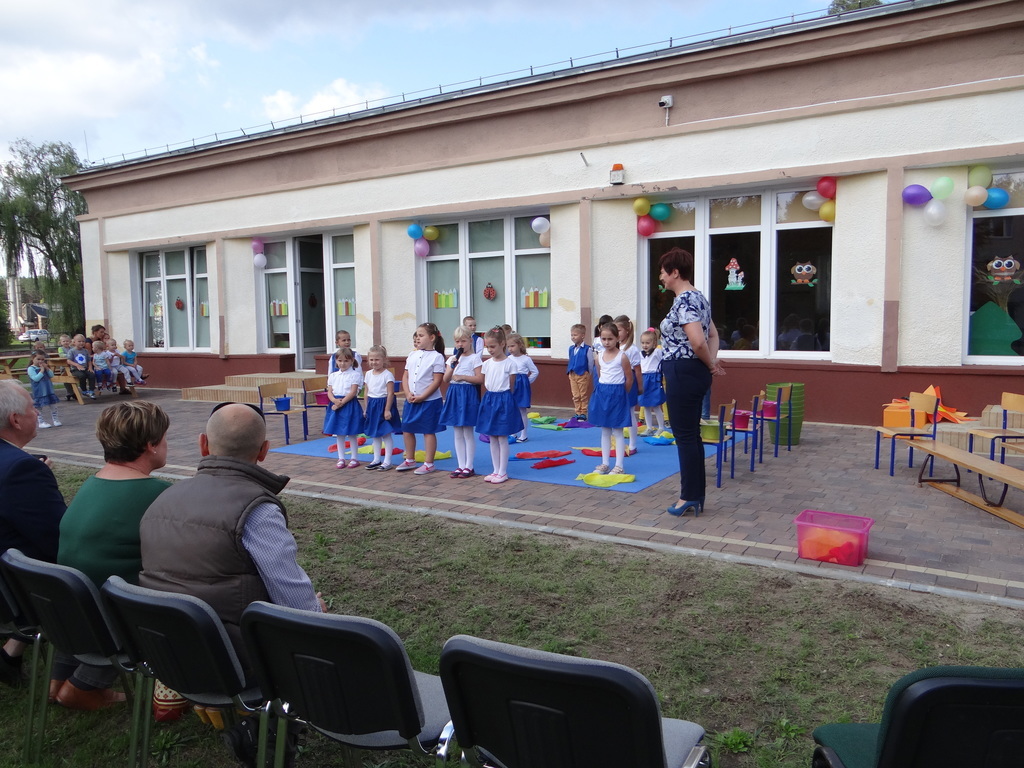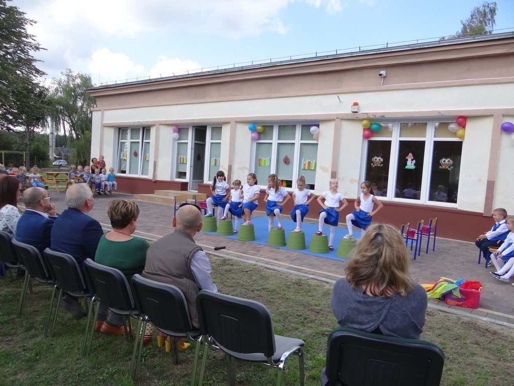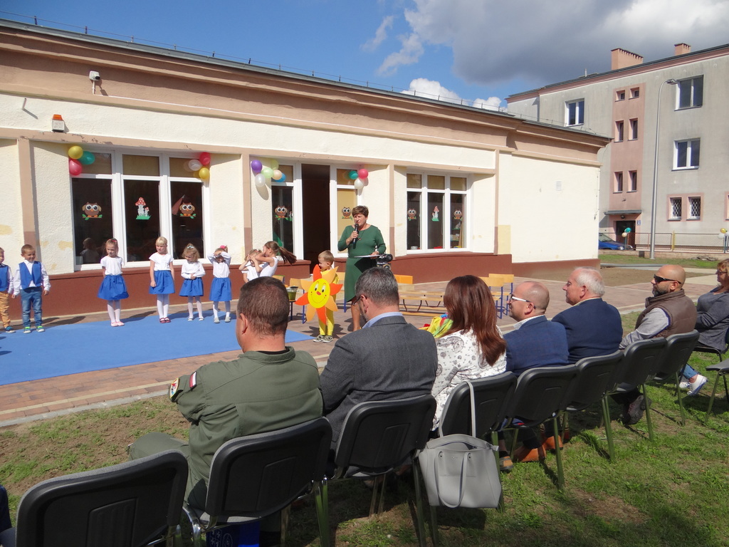 W środę 11. września 2019 r. w Przedszkolu „Słoneczko” w Mirosławcu Górnym odbyła się pierwsza w nowym roku szkolnym uroczystość. Dzieci z grupy „Motylki” przygotowały program artystyczny, którym podziękowały sponsorom oraz wykonawcom za nowy taras. Na uroczystość przybyli zaproszeni goście: przedstawiciele Firmy General Atomics Aeronautical, żołnierze amerykańscy z 52 EOG stacjonujący na terenie 12 BBSP w Mirosławcu, dowódca 12 BBSP – płk dypl. pil. Łukasz Andrzejewski – Popow, Burmistrz Mirosławca – p. Piotr Pawlik, Zastępca Burmistrza – p. Dariusz Bartosik, Sekretarz, - p. Monika Stąporek, Przewodniczący Rady Miejskiej – p. Piotr Czech, radny – p. Stanisław Pilc. Część artystyczna odbyła się na naszym nowym tarasie. Po występach dzieci, były podziękowania wszystkim tym, którzy przyczynili się do tego przedsięwzięcia, a więc: Firmie GENERAL ATOMICS AERONAUTICAL i pracownikom ZESPOŁU ZABEZPIECZENIA 21.BAZY LOTNICTWA TAKTYCZNEGO za wsparcie finansowe, ofiarność i życzliwość. Dzięki tej pomocy pobyt naszych przedszkolaków stał się przyjemniejszy. Następnie pani dyrektor oraz zaproszeni goście dokonali oficjalnego otwarcia tarasu przecinając wstęgę. Za piękny występ przedszkolaki zostały obdarowane słodkościami.