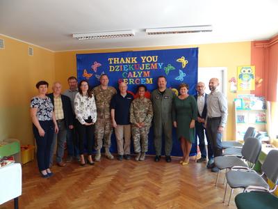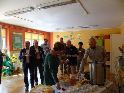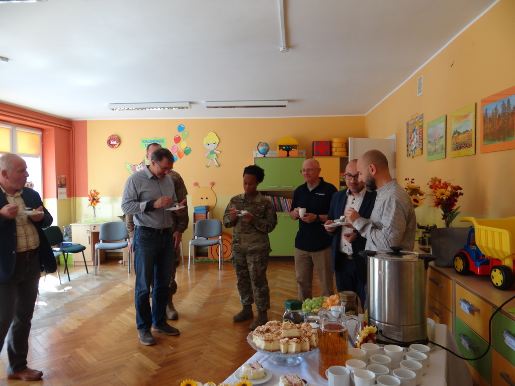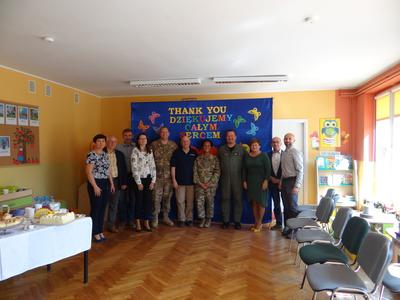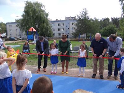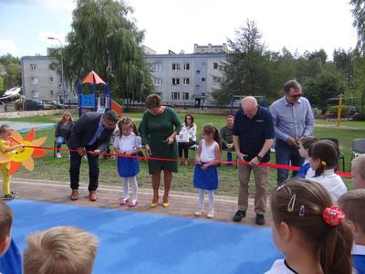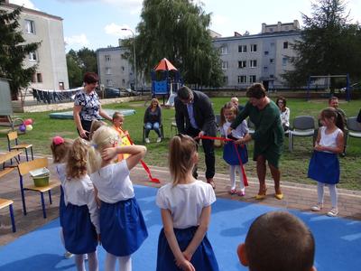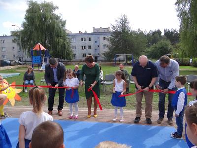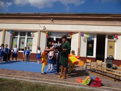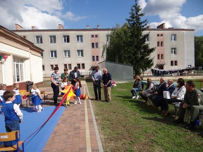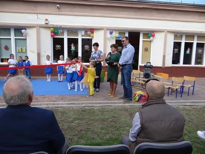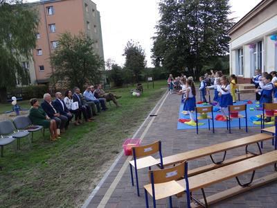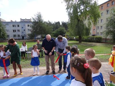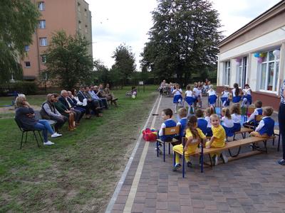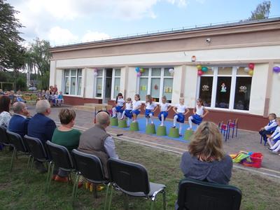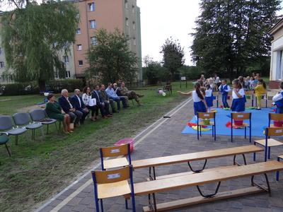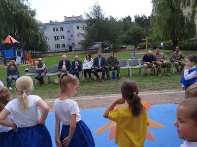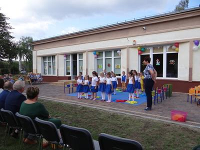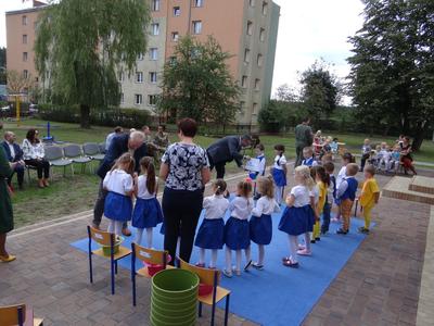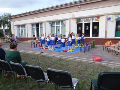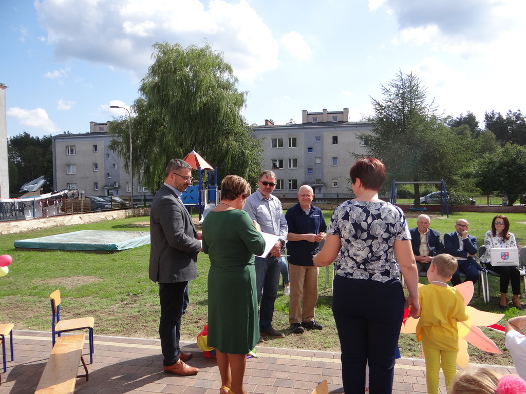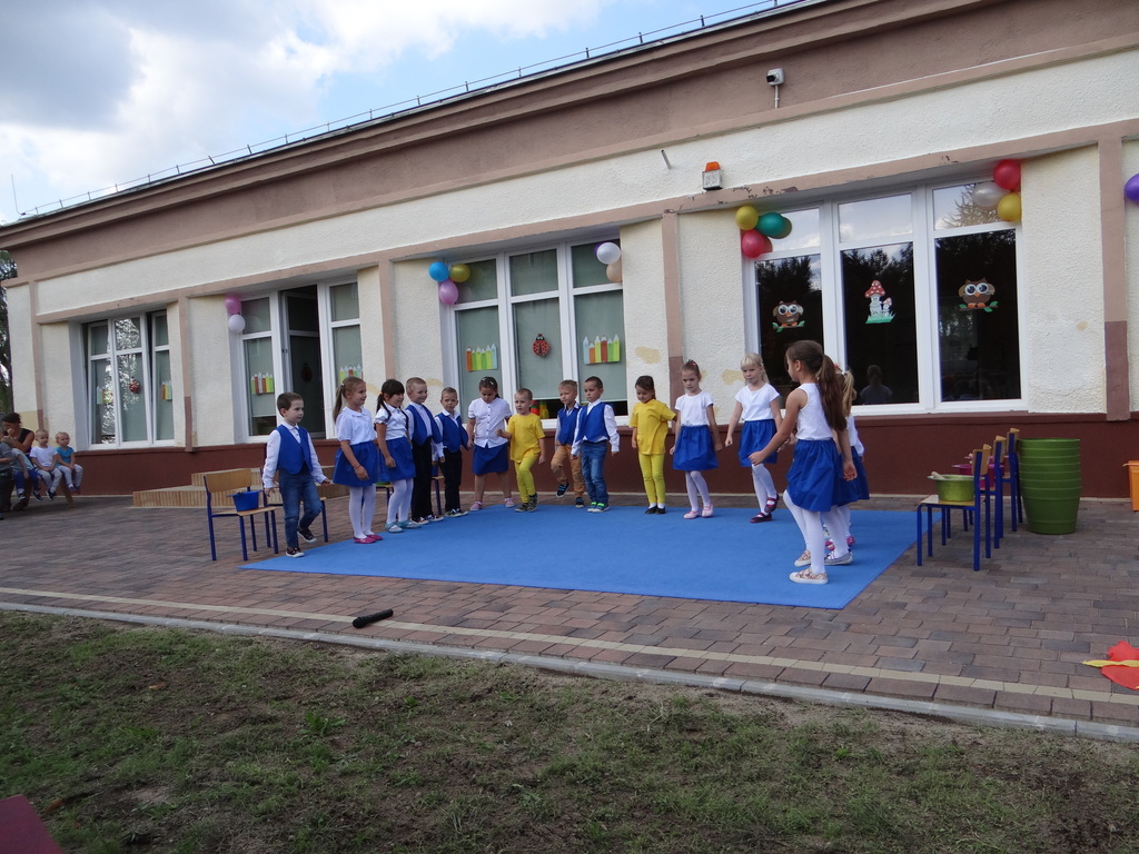 W środę 11. września 2019 r. w Przedszkolu „Słoneczko” w Mirosławcu Górnym odbyła się pierwsza w nowym roku szkolnym uroczystość. Dzieci z grupy „Motylki” przygotowały program artystyczny, którym podziękowały sponsorom oraz wykonawcom za nowy taras. Na uroczystość przybyli zaproszeni goście: przedstawiciele Firmy General Atomics Aeronautical, żołnierze amerykańscy z 52 EOG stacjonujący na terenie 12 BBSP w Mirosławcu, dowódca 12 BBSP – płk dypl. pil. Łukasz Andrzejewski – Popow, Burmistrz Mirosławca – p. Piotr Pawlik, Zastępca Burmistrza – p. Dariusz Bartosik, Sekretarz, - p. Monika Stąporek, Przewodniczący Rady Miejskiej – p. Piotr Czech, radny – p. Stanisław Pilc. Część artystyczna odbyła się na naszym nowym tarasie. Po występach dzieci, były podziękowania wszystkim tym, którzy przyczynili się do tego przedsięwzięcia, a więc: Firmie GENERAL ATOMICS AERONAUTICAL i pracownikom ZESPOŁU ZABEZPIECZENIA 21.BAZY LOTNICTWA TAKTYCZNEGO za wsparcie finansowe, ofiarność i życzliwość. Dzięki tej pomocy pobyt naszych przedszkolaków stał się przyjemniejszy. Następnie pani dyrektor oraz zaproszeni goście dokonali oficjalnego otwarcia tarasu przecinając wstęgę. Za piękny występ przedszkolaki zostały obdarowane słodkościami.
