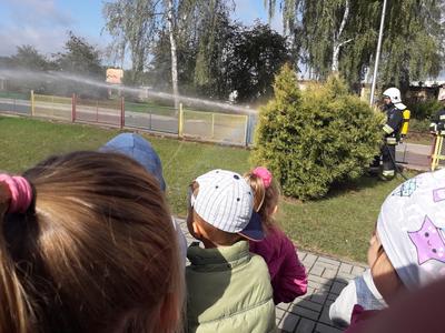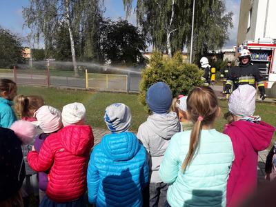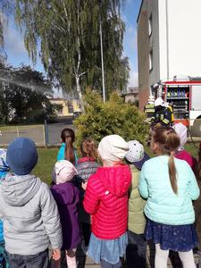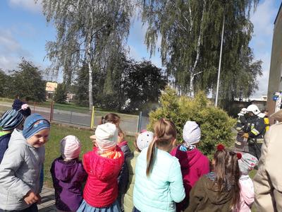 18. września 2019 r. przedszkolaki z Mirosławca Górnego uczestniczyły w próbnej ewakuacji. Celem akcji było nabywanie przez dzieci umiejętności właściwych zachowań w sytuacji zagrożenia, zapoznanie ich z zasadami bezpiecznej ewakuacji, zapoznanie z praktycznym prowadzeniem ewakuacji osób przebywających w budynku. Akcję przeprowadzili strażacy z Ochotniczej Straży Pożarnej w Mirosławcu. Cała akcja przebiegała sprawnie i bez zakłóceń. Na kilka minut sale przedszkolne i pomieszczenia administracyjno - gospodarcze pozostały puste. Wszystkie dzieci bardzo sprawnie, bezpiecznie i szybko opuściły budynek. Przed budynkiem przedszkola czekała na dzieci miła niespodzianka - wóz Straży Pożarnej, który wzbudził ogromny zachwyt. Strażacy zaprezentowali pokaz gaszenia pożaru. Na pożegnanie włączyli sygnały świetlne i dźwiękowe i odjechali.