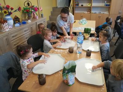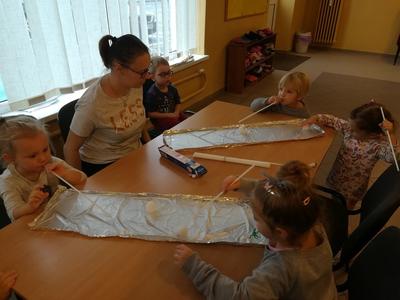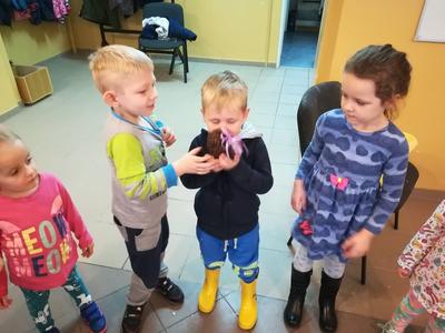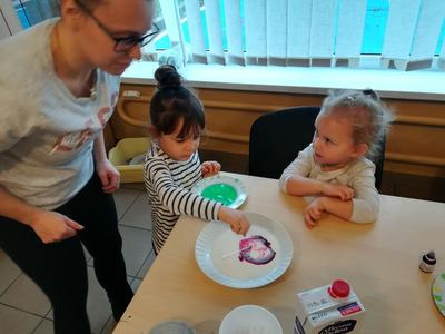 05.11.2019 "Biedronki" na zaproszenie Pani Moniki Deptuły odwiedziły świetlicę w Mirosławcu Górnym. Pani Monika najpierw oprowadziła dzieci po obiekcie, wyjaśniając do czego służy to miejsce - kto i dlaczego tutaj przychodzi. Dzieci dowiedziały się, że na świetlicę można przyjść i ciekawie spędzić wolny czas. Maluszki uczestniczyły w ciekawych aktywnościach - malowały na mleku uzywając do tego barwników spożywczych i patyczków kosmetycznych, bawiły się z cieczą nienewtonowską (płynem, który pozornie przeczy prawom fizyki), oraz brały udział w wyścigach piłeczek pimpongowych - przesuwały je po wodzie za pomocą wydmuchiwanego ze slomki powietrza. Na koniec wizyty przedszkolaki oglądały rozmaite prace plastyczno-techniczne wykonane przez inne dzieci, oraz wspólnie z paniami zatańczyły piosenkę "Lambada" i ulubione "Ram sam sam". "Biedroneczki" na pożegnanie otrzymały piękne mydełka wykonane przez nieco starszych uczestników zajęć świetlicowych.