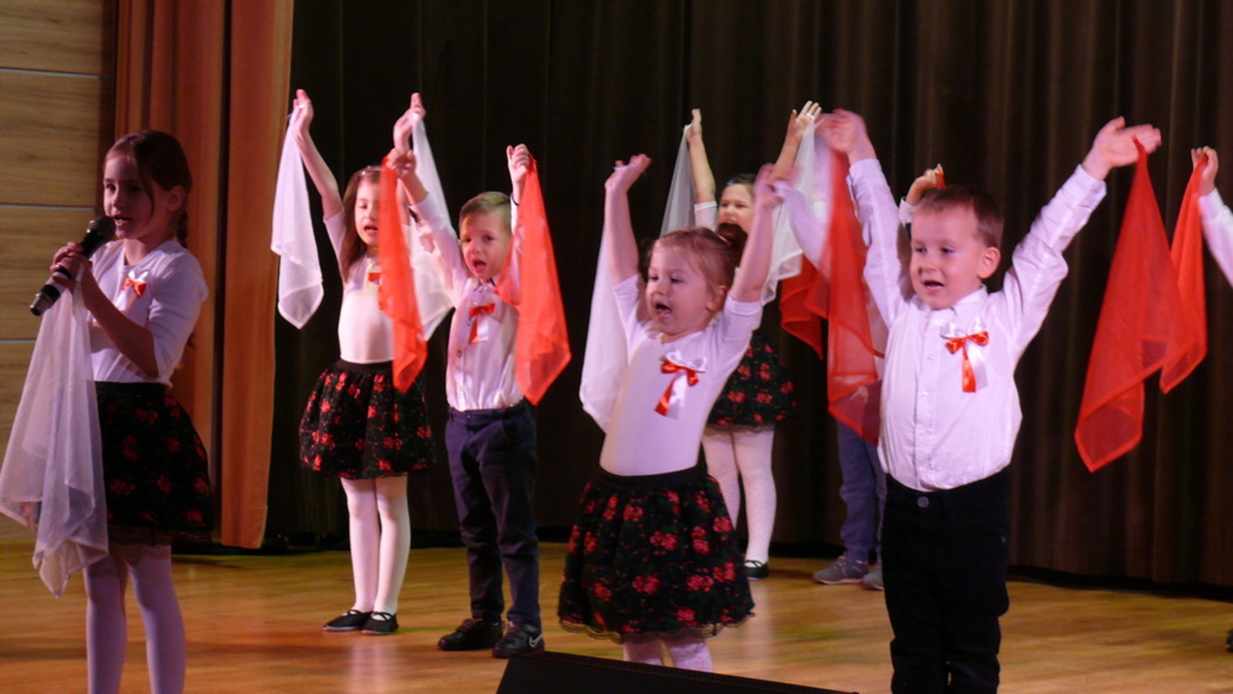Grupa "Motylki" wzięła udział w Gminnych Obchodach Święta Niepodległości, które odbyły się 11 listopada w Ośrodku Kultury w Mirosławcu. Przedszkolaki po raz pierwszy wystąpiły przed tak dużą publicznością. Zaprezentowany program artystyczny o tematyce patriotycznej spotkał się z wielkim uznaniem publiczności. Dzieci zostały nagrodzone gromkimi brawami i słodkościami. Dla starszaków ten dzień był pełen niezapominanych wrażeń.