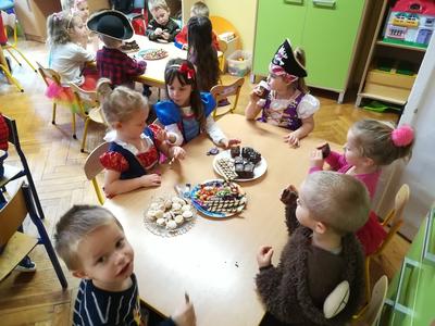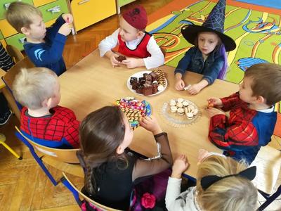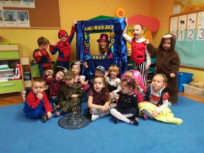 W piątek 29 listopada dzieci z naszego przedszkola miały okazję poznac zwyczaje andrzejkowe. Tego dnia dzieci przyszły do przedszkola przebrane w najróżniejsze stroje gotowe do wspaniałej zabawy. Dzień rozpoczął sie od zabaw tanecznych poprowadzonych przez Panią Beatkę od rytmiki. Przedszkolaki wspaniale bawiły się w rytm muzyki z repertuaru dziecięcego, a także najnowszych hitów. "Biedronki" i "Motylki" uczestniczyły poźniej w "przepowiadaniu przyszłości". Brały udział w kilku wróżbach, próbując znaleźć odpowiedź na pytanie: "Kim będę w przyszłości?", "czy będę bogaty?", "jaki prezent dostanę?". Po męczących zabawach na dzieci czekał słodki poczęstunek przygotowany przez rodziców, słodkie wypieki, a także cukierki i ciasteczka.