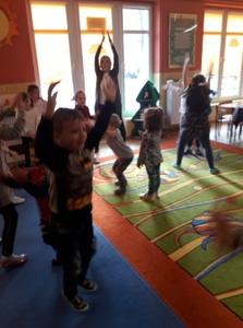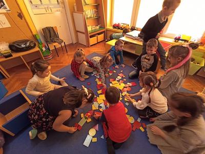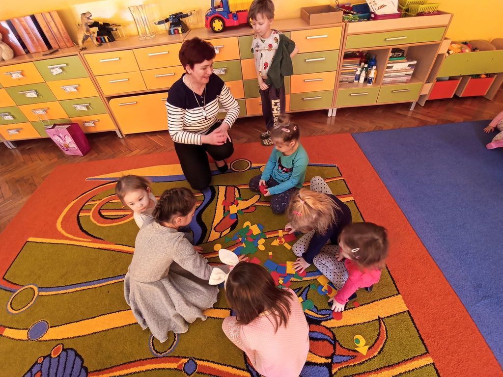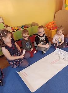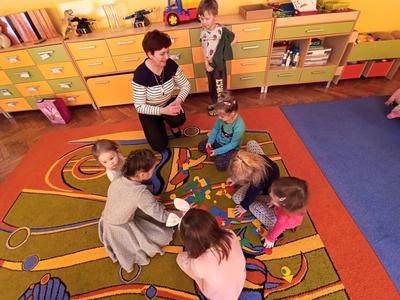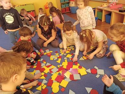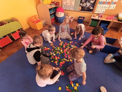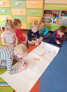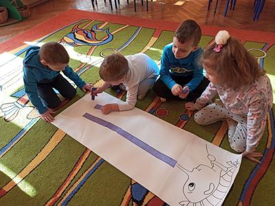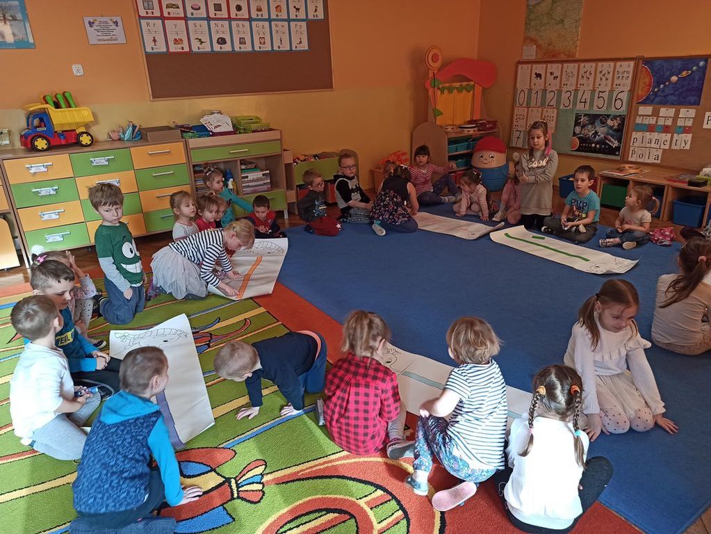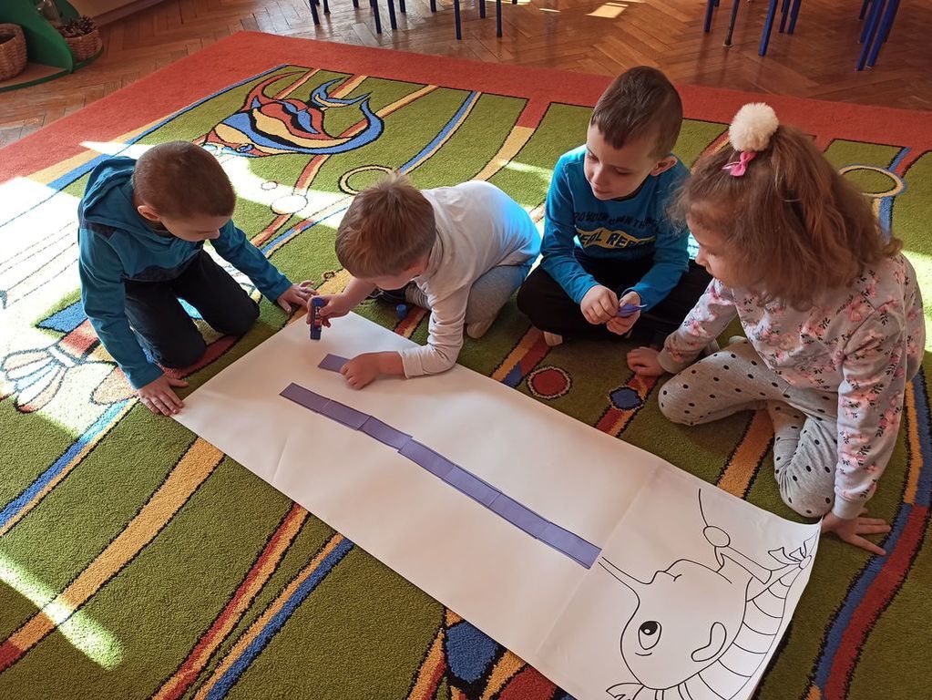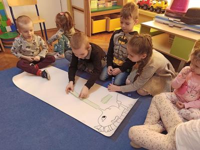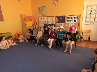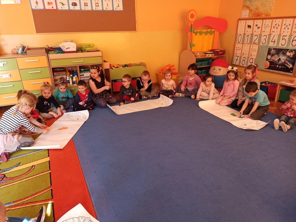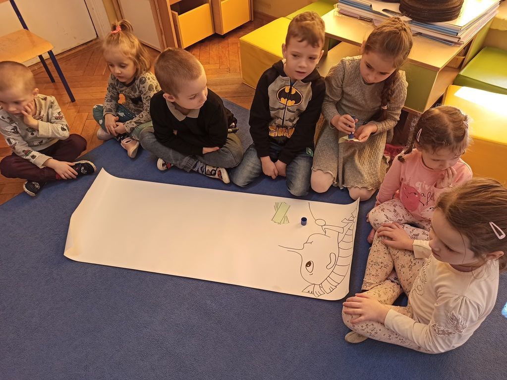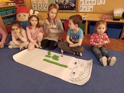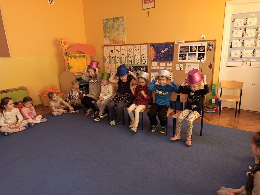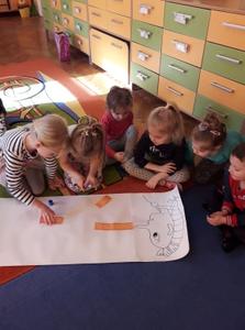 w zajęciach pt. "Czy warto kłamać?". Zajęcia rozpoczęły się od wysłuchania czytanej przez Panią Kasię baśni "Pinokio". Po wysłuchaniu dzieci odpowiadały na pytania do tekstu, a także na te, które odnosiły się do kłamstwa - "czy można kłamać?", "dlaczego ludzie kłamią?", "co to znaczy, że kłamstwo ma krótkie nogi?". Dzieci uczestniczyły też w zadaniu, które wymagało współpracy w grupie - "Nos Pinokia" - zadanie typu prawda/fałsz polegało na przedłużaniu nosków za każdym razem, kiedy nauczyciel powiedział nieprawdziwą informację. Przedszkolaki uczestniczyły także w quizie wiedzy o treści utworu "Pinokio" - kiedy informacja była prawdziwa zakładały kapelusz na głowę.  Zajęcia zakończone zostały kreatywnym zadaniem polegającym na ułożeniu pajacyka z figur geometrycznych. Dzieci miały możliwość pokazać swoją kreatywność i z zaangażowaniem układały piękne, kolorowe postaci, utrwalając przy tym znajomość nazw figur i kolorów.
