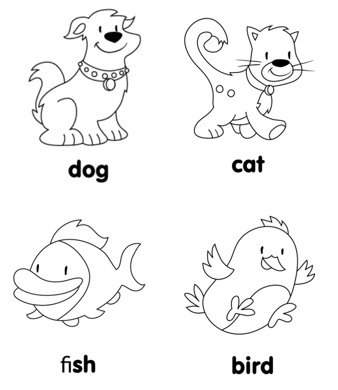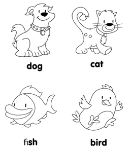4. Choose your favourite pet – Dziecko wybiera swoje ulubione zwierzę domowe na podanym obrazku (załączniki). Nazywa je po angielsku.