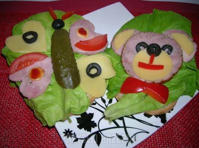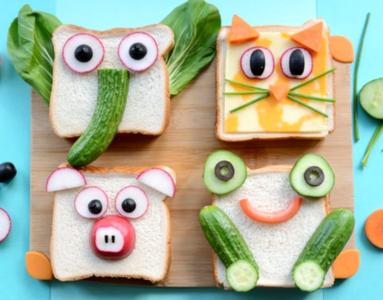 Dziecko ogląda fotografie z kolorowymi kanapkami (załączniki). Określa jakie produkty zostały wykorzystane do ich wykonania - czy są zdrowe?