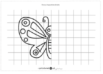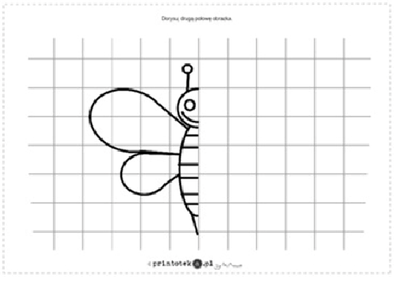 Dziecko przykładając lusterko w takim miejscu obrazka, aby zobaczyć w nim drugą połowę owada, poszukuje symetrii. (załączniki)
