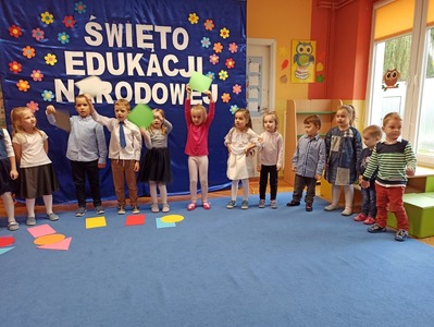 14 października - Dzień Edukacji Narodowej był w naszym przedszkolu wyjątkowym dniem. Ten pogodny i ciepły nastrój zawdzięczamy naszym podopiecznym, którzy pięknie zaprezentowali dla wszystkich pracowników specjalnie przygotowany program artystyczny. Przedszkolaki były bardzo dumne i pełne powagi podczas pierwszych w tym roku szkolnym występów.