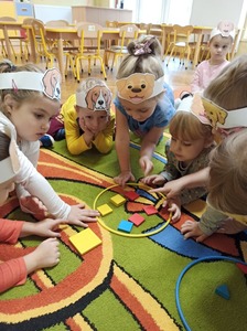 26 października dzieci z grupy "Biedronki" uczestniczyły w ochodach "Dnia Kundelka". Z tej okazji dzieci uczestniczyły w rozmaitych aktywnościach - wesoło bawiły się przy piosenkach o pieskach i żywo uczestniczyły w zabawach ruchowych - wcielały się w postać psa, szukały swojej "psiej" rodzinki, uczestniczyły w zabawie orientacyjno-porządkowej "pieski do budy". "Biedronki" uczestniczyłu też w zabawie matematyczniej, w której utrwalały nazwy kolorów, figur geometrycznych oraz doskonaliły umiejętność przeliczania i klasyfikowania. Dzieci układały również historyjkę obrazkową o schronisku, doskonaląc tym samym umiejętność rozumienia związków przyczynowo-skutkowych. Przedszkolaki na sam koniec wykonały preacę plastyczą techniką stemplowania. Przedszkolaki wiedzą już, że każdy pies - kundelek czy rasowiec - zasługuje na uwagę i miłość.