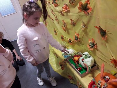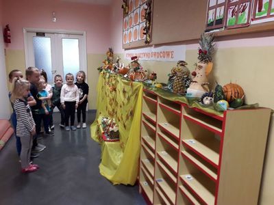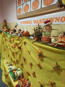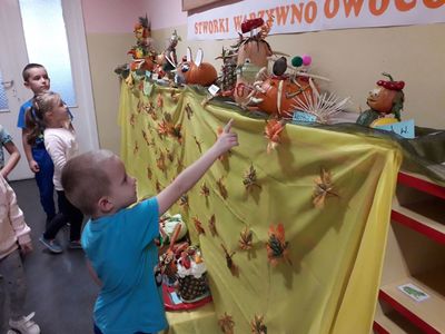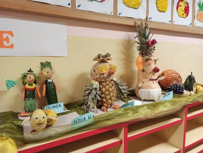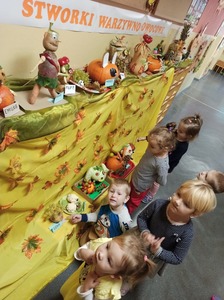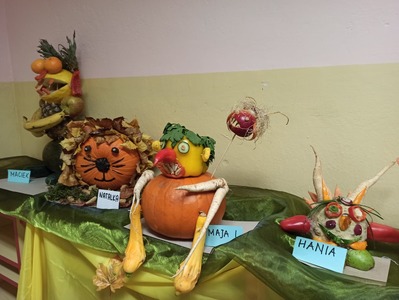 29 października w naszym przedszkolu miało miejsce wręczenie nagród dla dzieci, które wraz ze swoimi rodzicami wzięły udział w konkursie rodzinnym "Stworki warzywno-owocowe". Zadaniem konkursowym było wykonanie z wybranych owoców i warzyw postaci przestrzennej według własnego pomysłu. Głównym celem konkursu było wdrażanie do prawidłowych nawyków żywieniowych dzieci poprzez zwiększenie udziału owoców i warzyw w ich codziennej diecie oraz propagowanie zdrowego odżywiania poprzez działania o charakterze edukacyjnym.