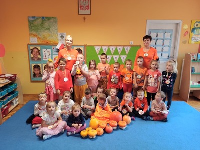 W piątek 30 pażdziernika obchodziliśmy dzień dyni w naszym przedszkolu. Nasze przedszkolaki były ubrane na pomarańczowo, a także przebrane w piękne dyniowe stroje. Ten dzień wypełniony był licznymi zabawami integracyjnymi. Największą radość sprawiły dzieciom zawody sprotowe. Dzień Dyni dla naszych przedszkolaków był wyjątkowy, pozwolił im zapoznać się z różnorodnością dyń oraz wzbogacił wiedzę na ich temat.
