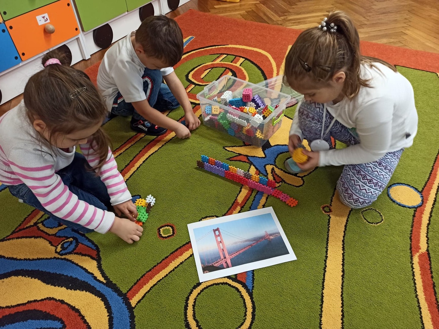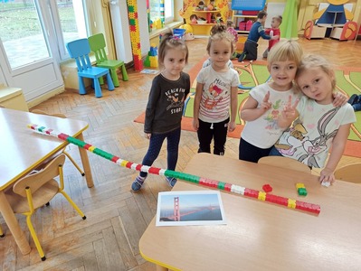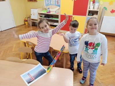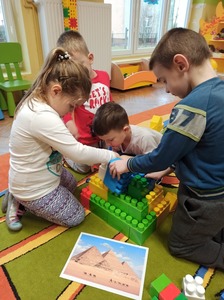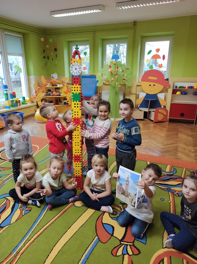 W czwartek 12 listopada dzieci z grupy "Biedronki" realizowały jedno z zadań ogólnopolskiego projektu edukacyjnego "Z kulturą mi do twarzy" (Moduł I - "W krainie muz"). Dzieci wykonały zadanie projektowe pt. "Mali i duzi architekci" – konstruowały z róznych klocków budowle na wzór słynnych zabytków architektury. "Biedronki" poznały takie budowle jak Big Ben, Piramidy w Gizie, Most Golden Gate, Wieżę Eiffla. Zadania te wymagały od przedszkolaków uruchomienia wyobraźni i pomysłowości. Dzieci ćwiczyły jednocześnie umiejętność współpracy w grupie - połączyły siły, a efektem tego były wspaniałe, kreatywne budowle.