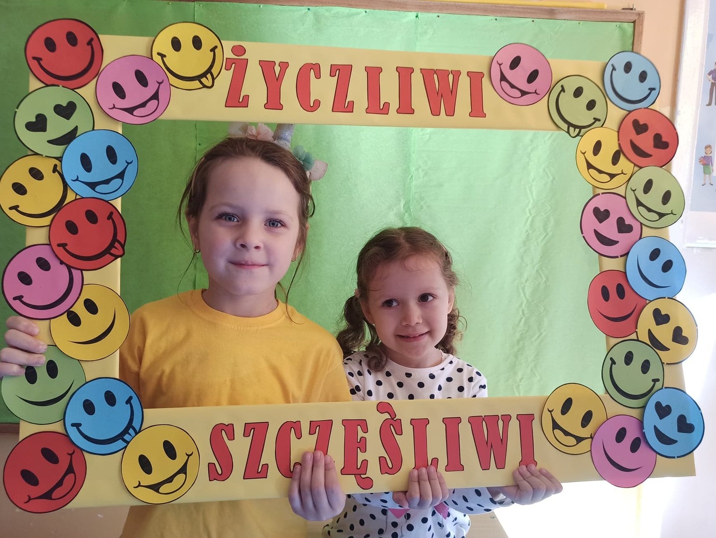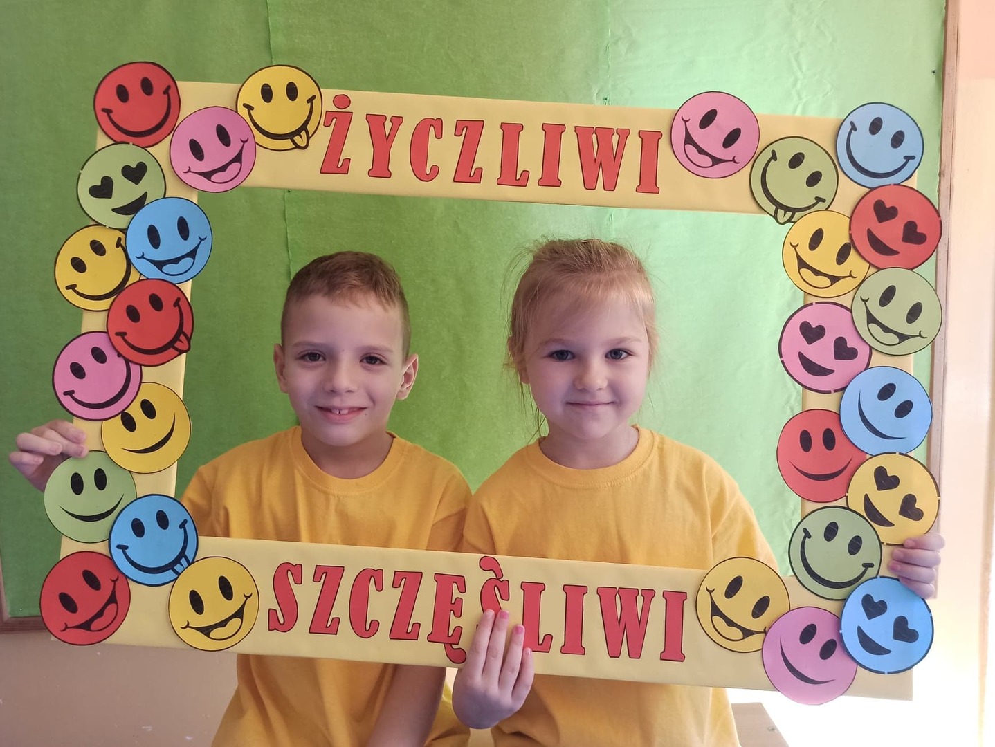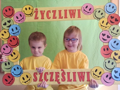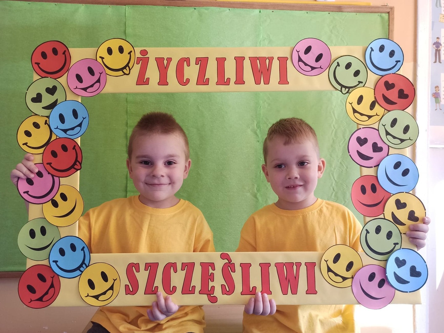 „Życzliwi - szczęśliwi” - takie przesłanie towarzyszyło naszym „Biedronkom” i „Motylkom” w piątek 20.11.2020 r. podczas obchodów Dnia Życzliwości i Dnia Praw Dziecka. Dzieci utrwalały „magiczne słowa”, próbowały odpowiedzieć na pytanie „co to jest życzliwość”. Podczas zabaw współpracowały ze sobą, okazywały rówieśnikom życzliwość i pomoc. Od początku roku szkolnego przedszkolaki uczestniczyły w „Zakręconej Akcji”. Zbierały plastikowe nakrętki dla chorego chłopca. Do tej pory zebrały dwa duże worki nakrętek, które zostaną przekazane na zakup potrzebnego sprzętu. Ten dzień był również okazją do rozmowy o prawach dziecka. Przedszkolaki poznały podstawowe prawa dziecka w oparciu o piosenkę, rymowankę, ilustracje. Na koniec imprezy dzieci pozowały do zdjęć w foto-budce zawierającej nasze przesłanie.