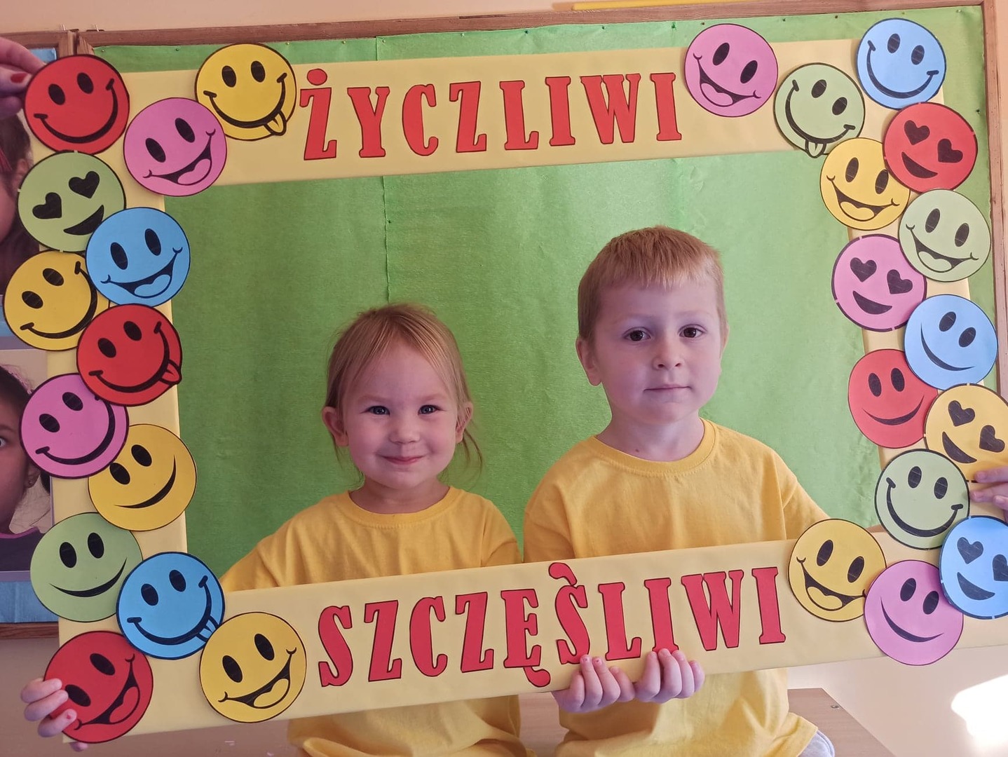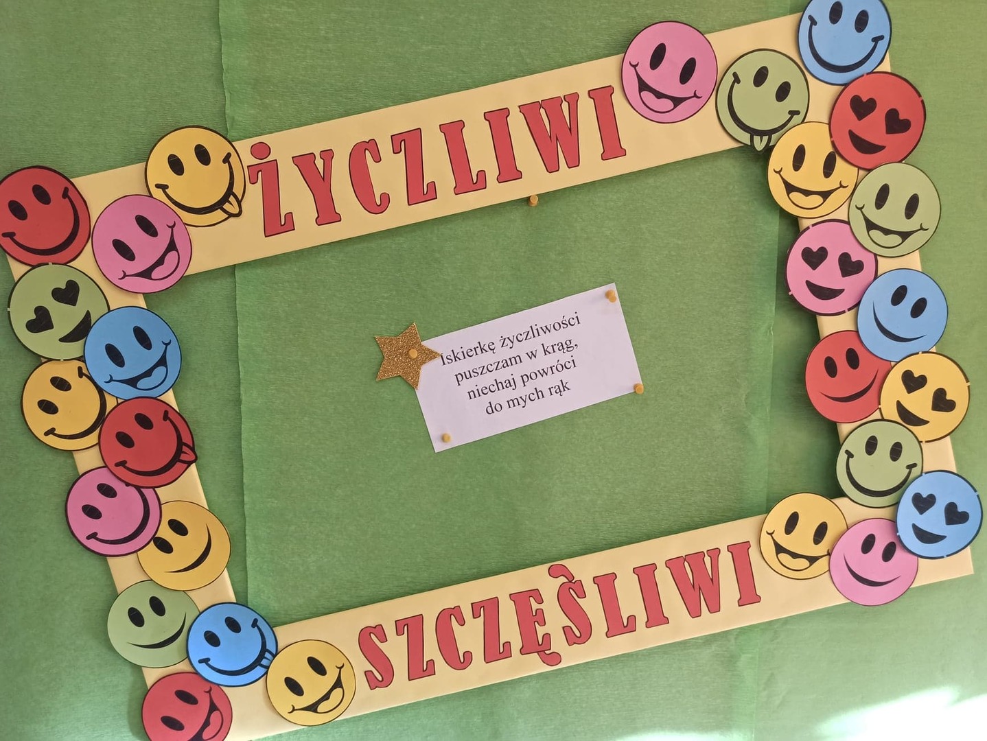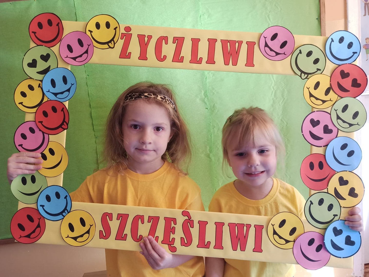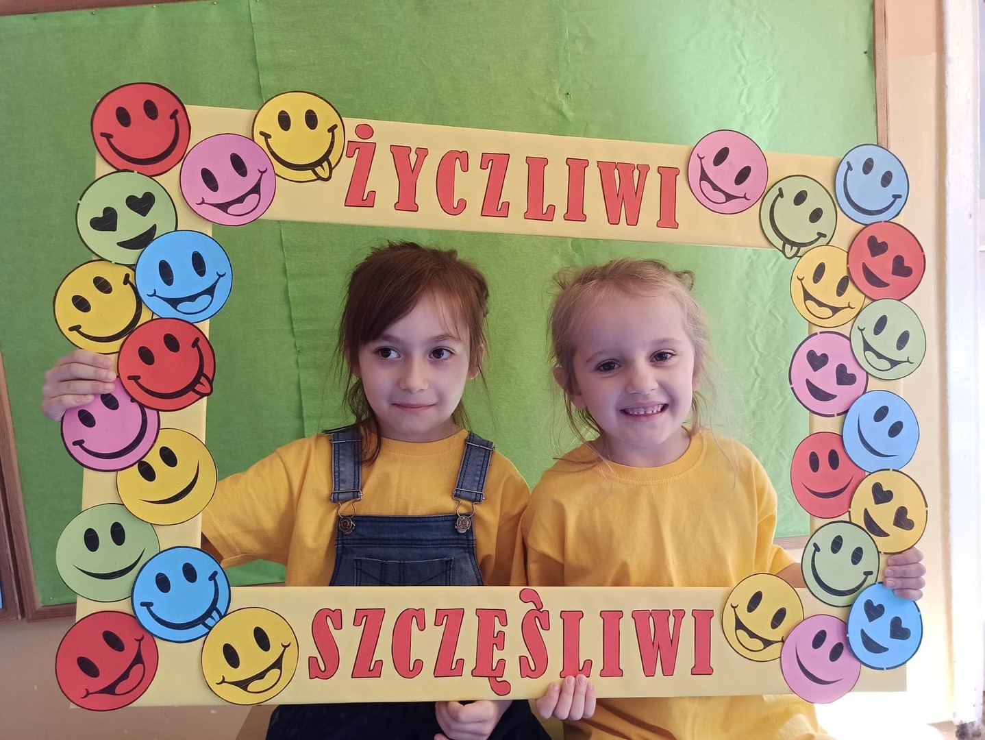 „Życzliwi - szczęśliwi” - takie przesłanie towarzyszyło naszym „Biedronkom” i „Motylkom” w piątek 20.11.2020 r. podczas obchodów Dnia Życzliwości i Dnia Praw Dziecka. Dzieci utrwalały „magiczne słowa”, próbowały odpowiedzieć na pytanie „co to jest życzliwość”. Podczas zabaw współpracowały ze sobą, okazywały rówieśnikom życzliwość i pomoc. Od początku roku szkolnego przedszkolaki uczestniczyły w „Zakręconej Akcji”. Zbierały plastikowe nakrętki dla chorego chłopca. Do tej pory zebrały dwa duże worki nakrętek, które zostaną przekazane na zakup potrzebnego sprzętu. Ten dzień był również okazją do rozmowy o prawach dziecka. Przedszkolaki poznały podstawowe prawa dziecka w oparciu o piosenkę, rymowankę, ilustracje. Na koniec imprezy dzieci pozowały do zdjęć w foto-budce zawierającej nasze przesłanie.