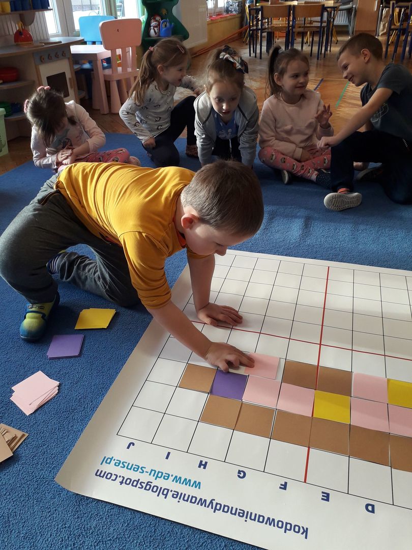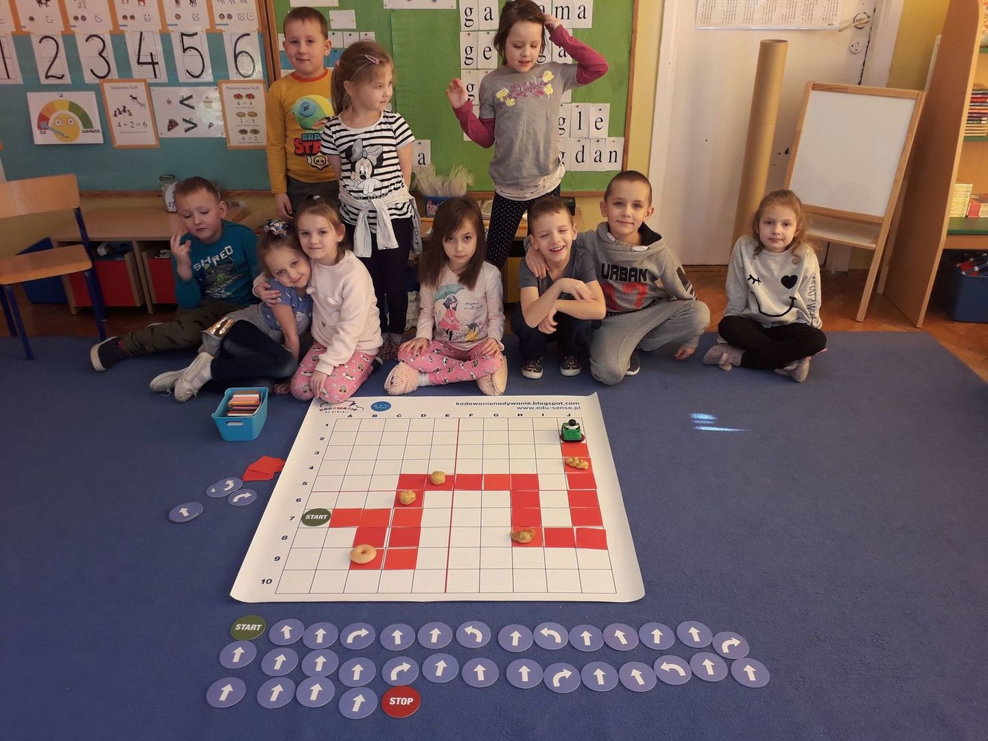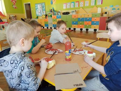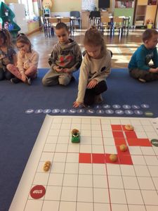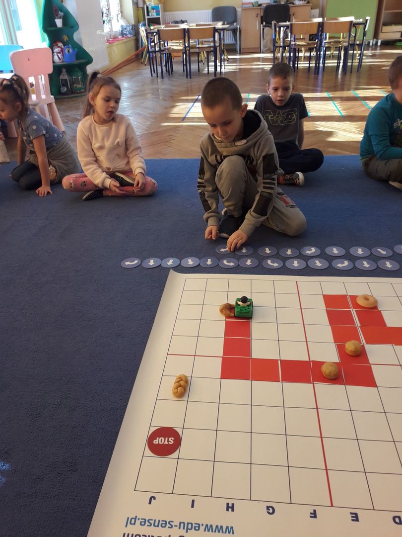 W tłusty czwartek grupa "Motylki" bawiła się w kodowanie. Najpierw dzieci odszyfrowały zakodowanego pączka. Kolejnym zadaniem było zaprogramowanie trasy kierowcy, który jadąc do domu musiał odwiedzić różne cukiernie i kupić słodkości. Trasę dzieci zaprogramowały przy pomocy symboli.