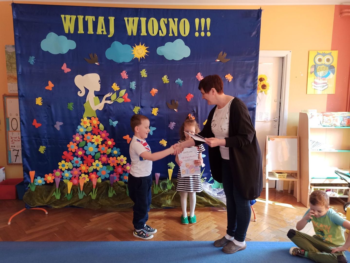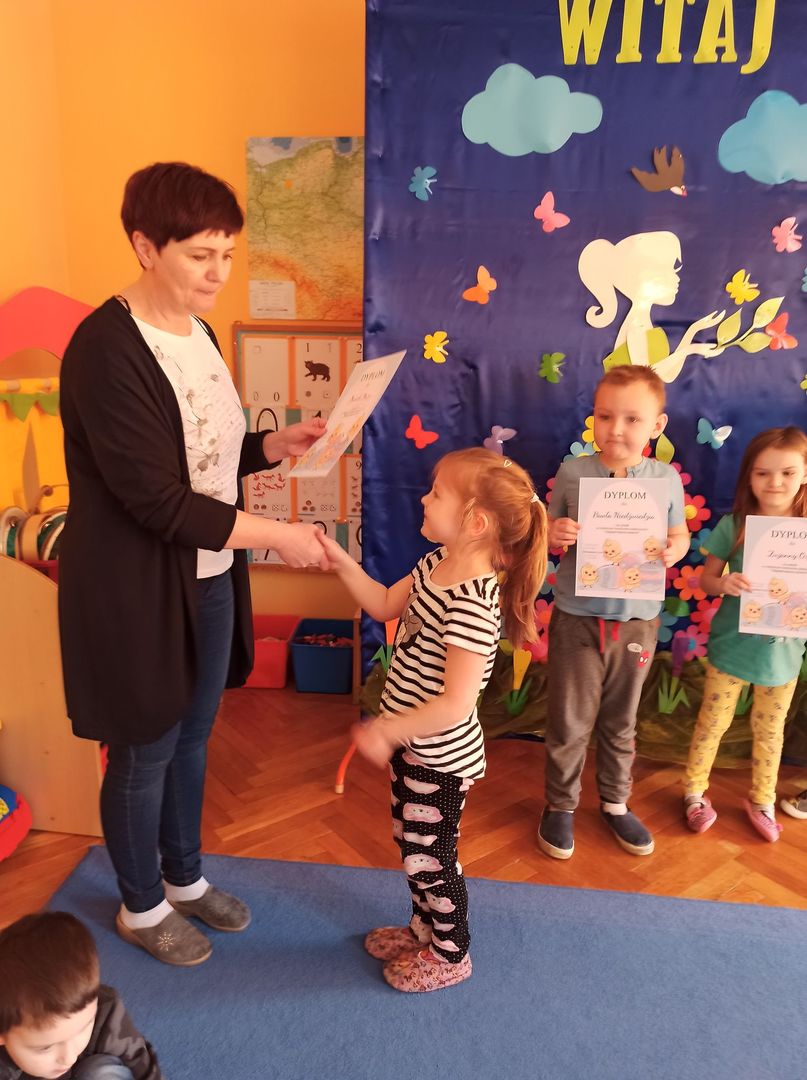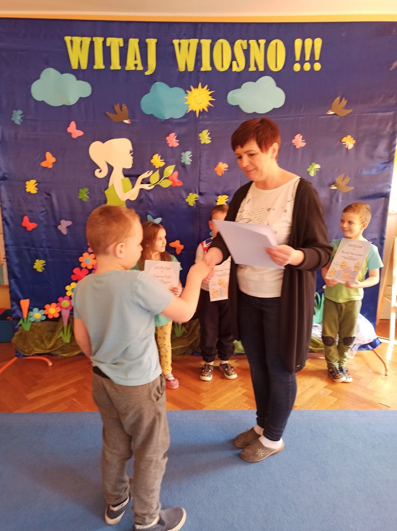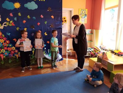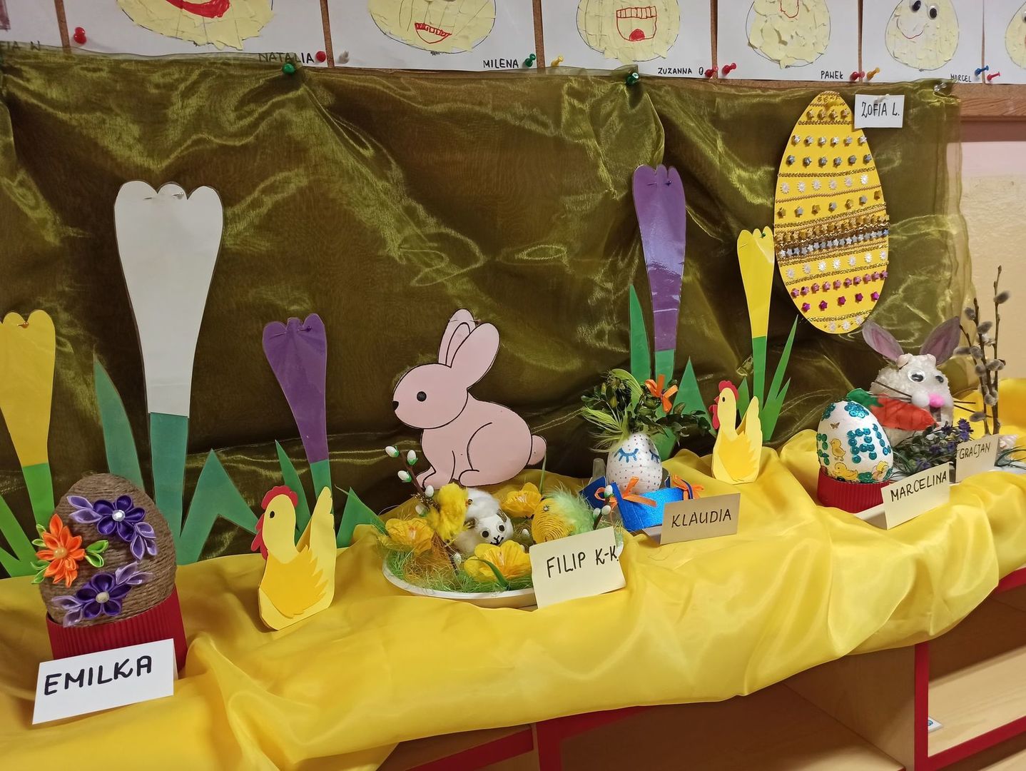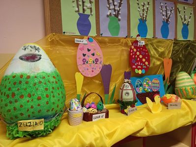 26 marca w naszym przedszkolu miało miesce rozstrzygnięce konkursu rodzinnego na najpiękniejszą pisankę wielkanocną. Celem konkursu było kultywowanie tradycji i zwyczajów związanych ze Świętami Wielkanocnymi, rozwijanie wyobraźni i pomysłowości dzieci, wspieranie ich twórczości oraz wyrabianie poczucia estetyki. Na konkurs ten chętne dzieci wraz z członkami rodziny wykonały przepiękne prace plastyczne. Wszystkie zostały zaprezentowane na wystawie zorganizowanej w naszym przedszkolu. Najważniejszym jednak momentem było rozstrzygnięcie konkursu - prace były tak piękne i różnorodne, że wszystkie dzieci zajęły pierwsze miesce! W nagrodę za udział w kopnkursie przedszkolaki otrzymały pamiątkowe dyplomy oraz czekoladowe jajko z niespodzianką. Dziękujemy wszystkim dzieciom oraz ich rodzinom za udział w zabawie.