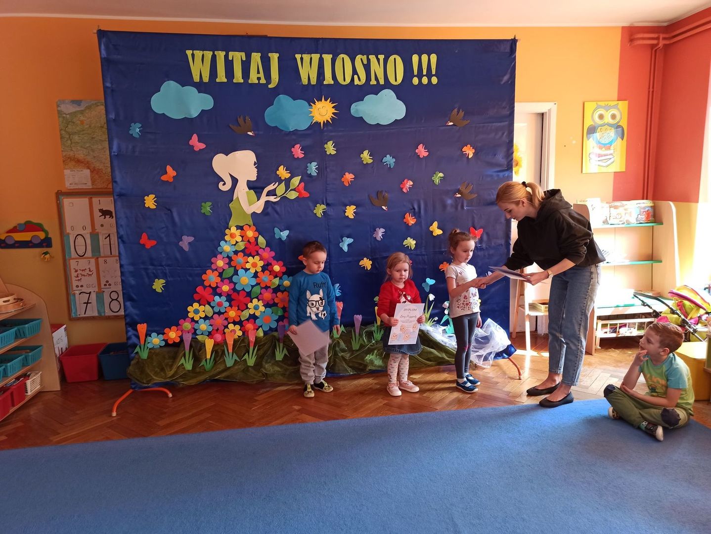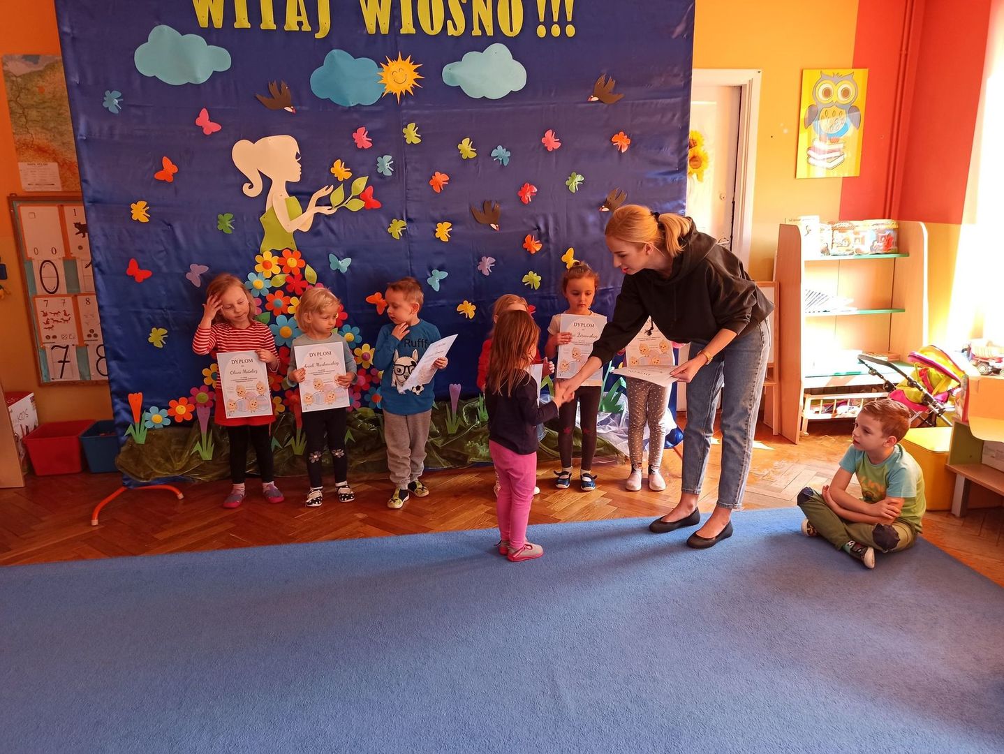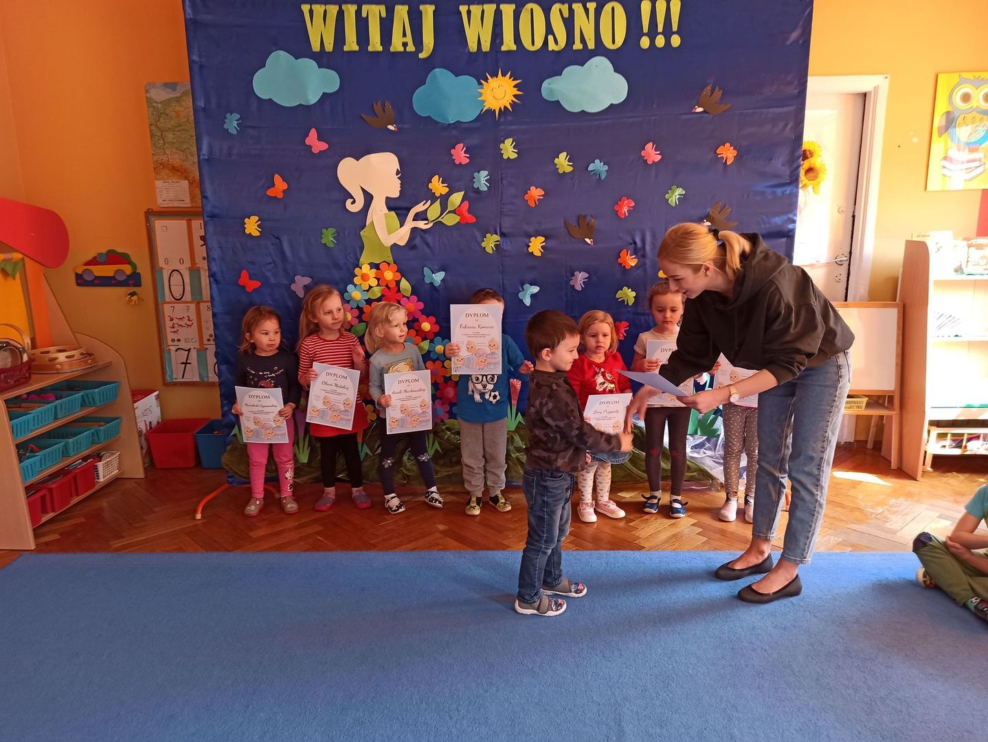 26 marca w naszym przedszkolu miało miesce rozstrzygnięce konkursu rodzinnego na najpiękniejszą pisankę wielkanocną. Celem konkursu było kultywowanie tradycji i zwyczajów związanych ze Świętami Wielkanocnymi, rozwijanie wyobraźni i pomysłowości dzieci, wspieranie ich twórczości oraz wyrabianie poczucia estetyki. Na konkurs ten chętne dzieci wraz z członkami rodziny wykonały przepiękne prace plastyczne. Wszystkie zostały zaprezentowane na wystawie zorganizowanej w naszym przedszkolu. Najważniejszym jednak momentem było rozstrzygnięcie konkursu - prace były tak piękne i różnorodne, że wszystkie dzieci zajęły pierwsze miesce! W nagrodę za udział w kopnkursie przedszkolaki otrzymały pamiątkowe dyplomy oraz czekoladowe jajko z niespodzianką. Dziękujemy wszystkim dzieciom oraz ich rodzinom za udział w zabawie.