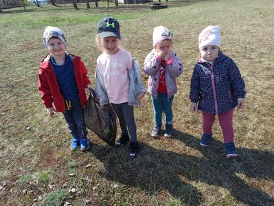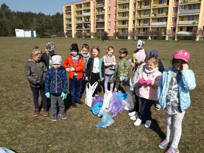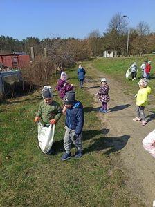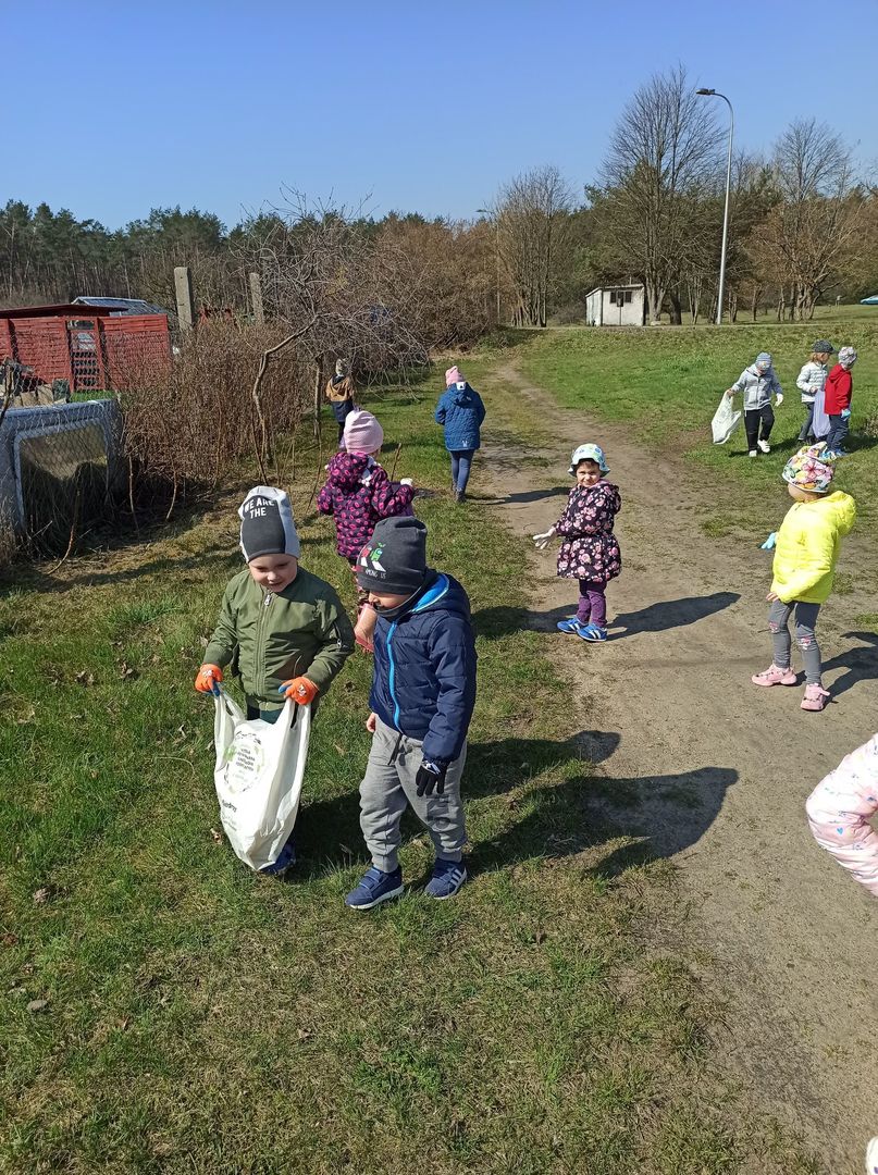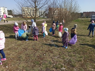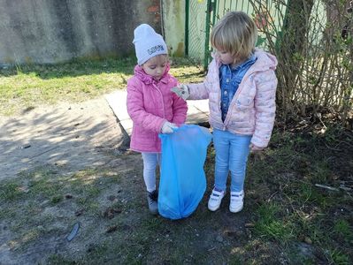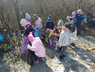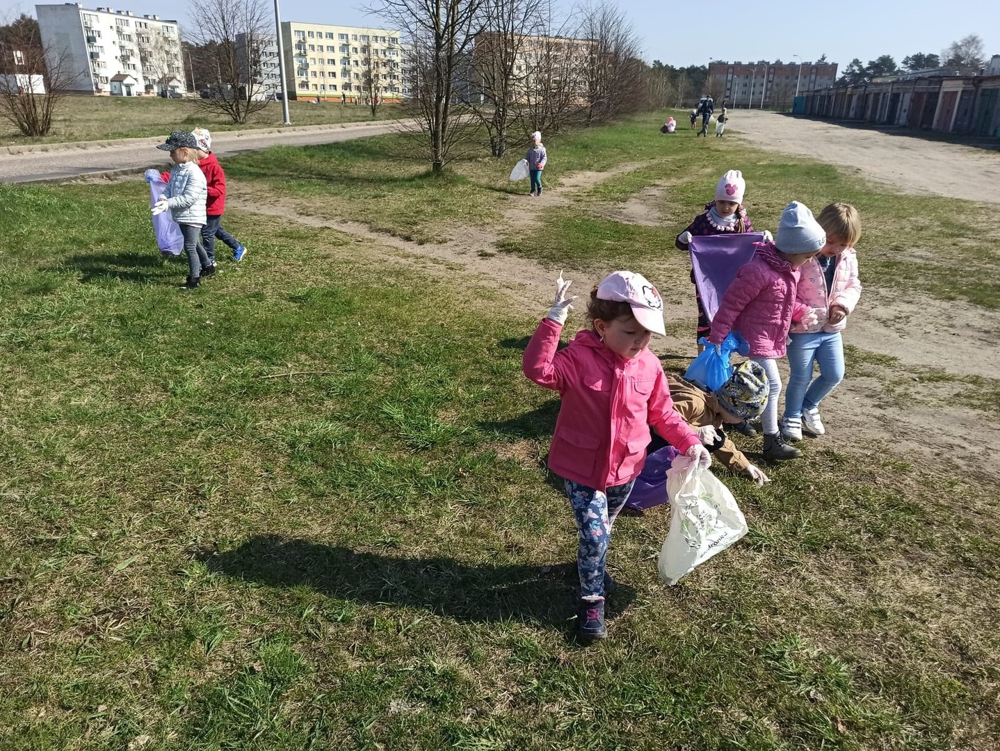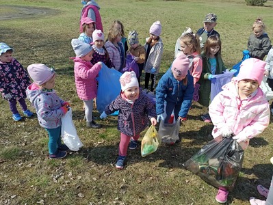 21 kwietnia, z okazji zbliżającego się Dnia Ziemi, nasze przedszkolaki wzięły udział w akcji "Sprzątania Świata", by od najmłodszych lat uczyć się zasad dbania o środowisko. Przedszkolaki z chęcią i radością przyłączyły się do akcji i dzielnie zbierały papierki, worki foliowe, kartoniki, butelki aby uczynić swoją okolicę piękniejszą. Wierzymy, że prowadzane przez nas działania proekologiczne wpłyną pozytywnie na uwrażliwianie dzieci, i że w przyszłości będą prawdziwymi miłośnikami przyrody i otaczającego ich świata.