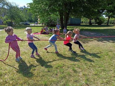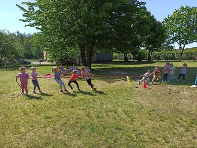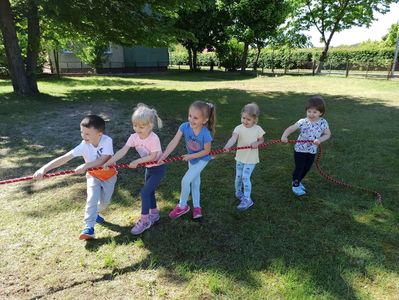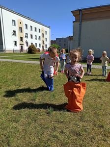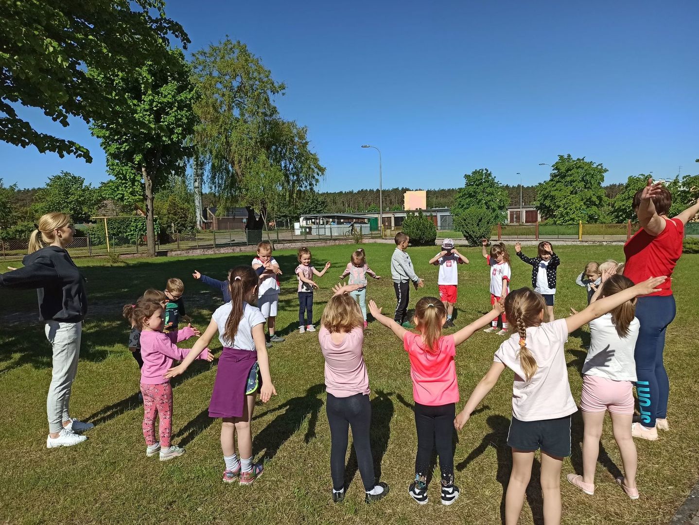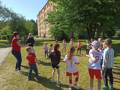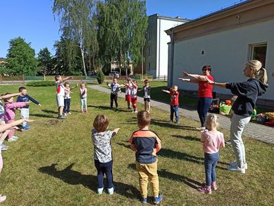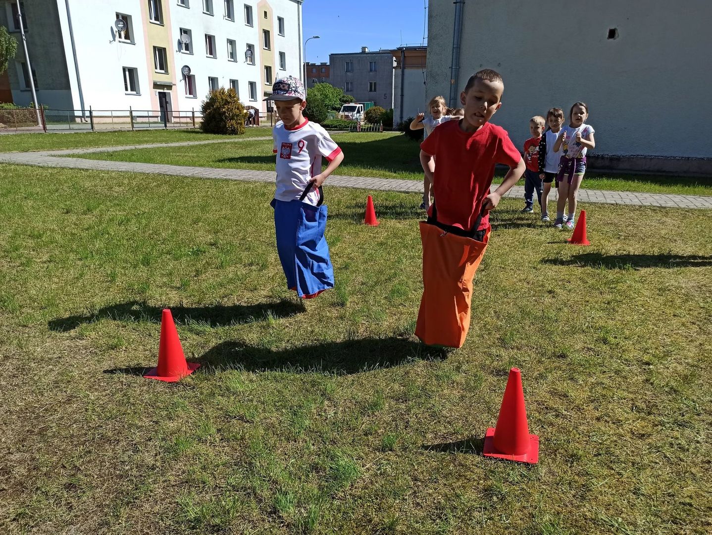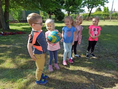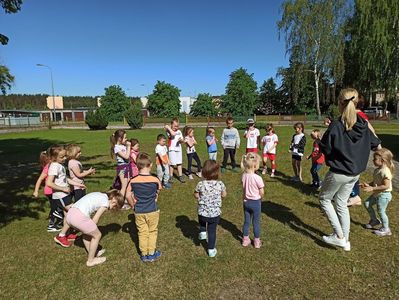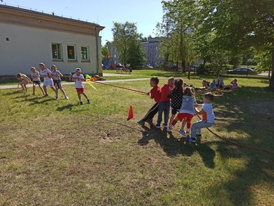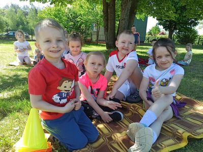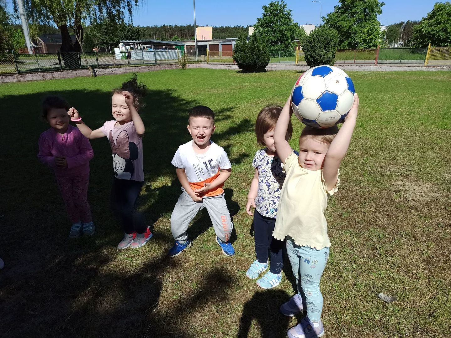 W poniedziałek 31 maja obchodziliśmy w naszym przedszkolu Dzień Sportu. Tego dnia wszystkie dzieci i ich wychowawczynie przyszły do Przedszkola w strojach sportowych. Głównym celem było zachęcenie dzieci do aktywności ruchowej na świeżym powietrzu, ale też integrowanie się grup przedszkolnych, kształtowanie zachowań prozdrowotnych, nabywanie wiary we własne siły i możliwości oraz wzbogacanie przeżyć poprzez szlachetne współzawodnictwo. Zawody sportowe poprzedzone zostały porządną rozgrzewką a także zabawami tanecznymi przy znanych dzieciom piosenkach. Każdy przedszkolak bardzo przejęty brał udział w przygotowanych konkurencjach sportowych. Każde prawidłowo wykonane ćwiczenie budziło w dzieciach ogromna radość i zadowolenie z dobrze wykonanego zadania. Wszystkie zadania sprawiły dzieciom dużo radości.