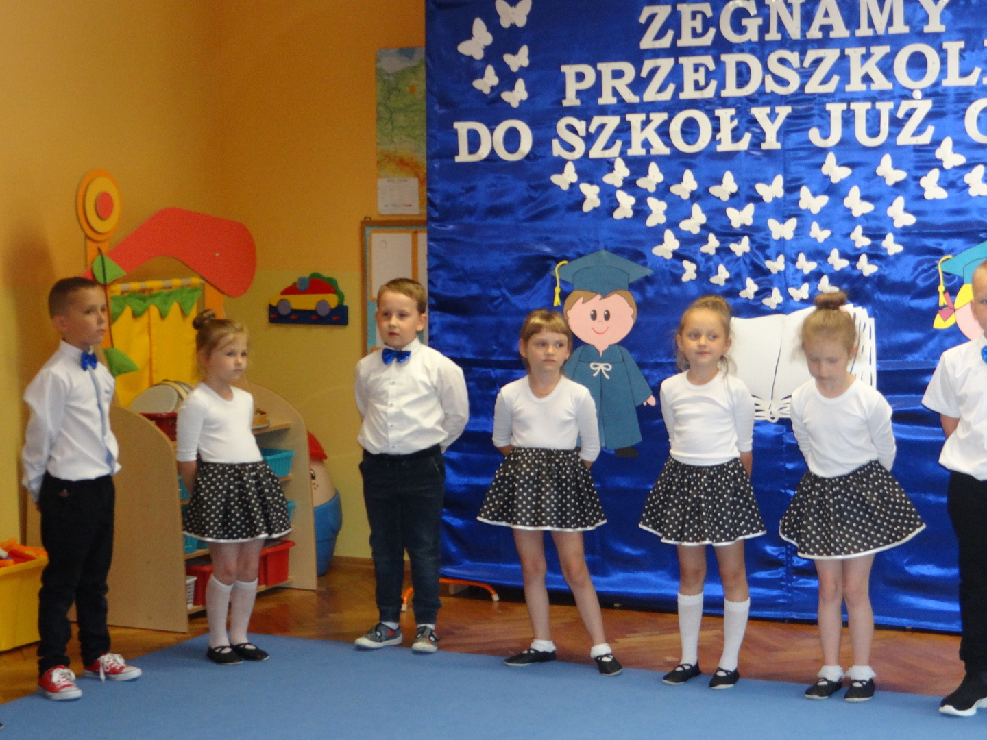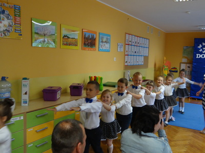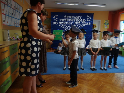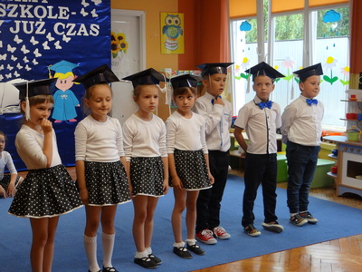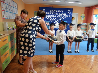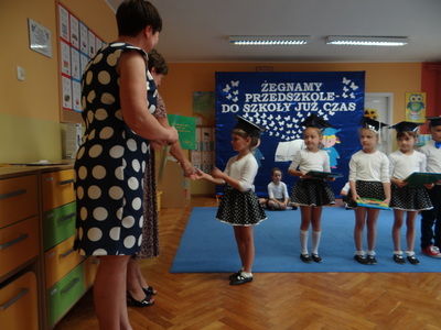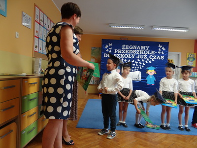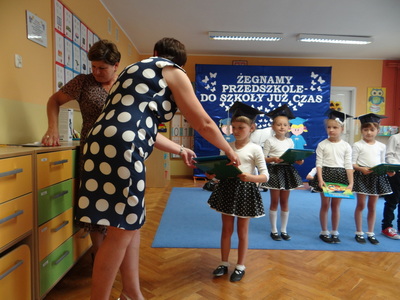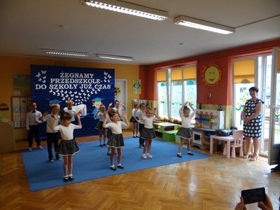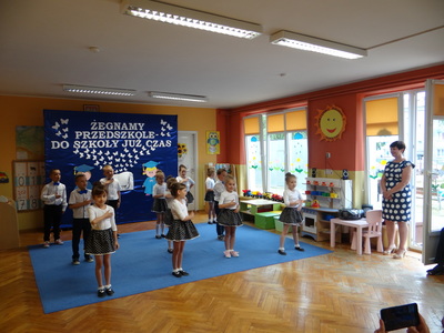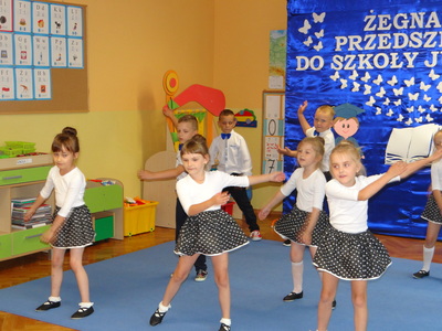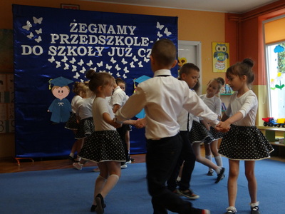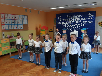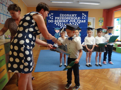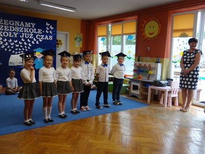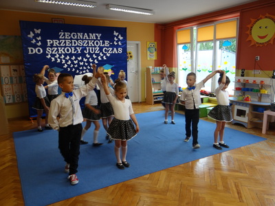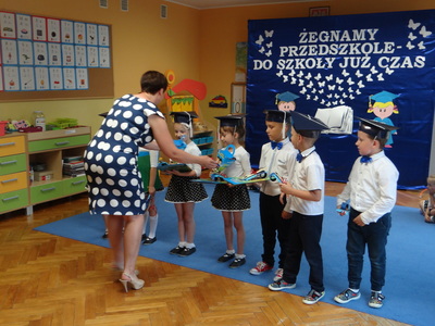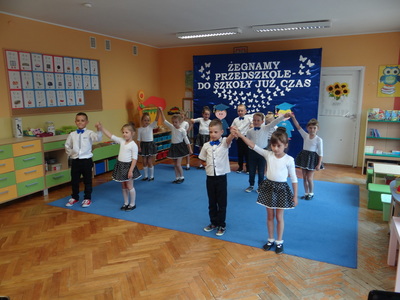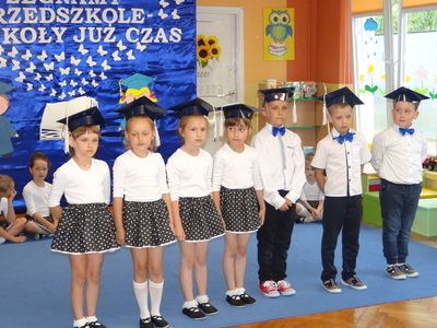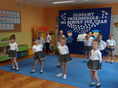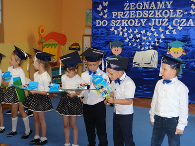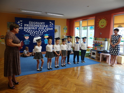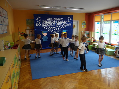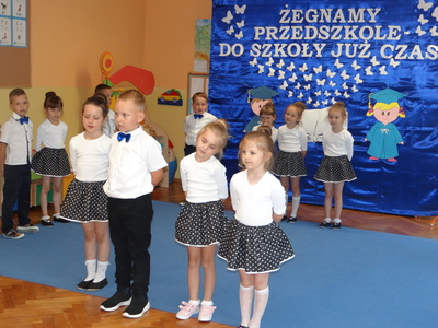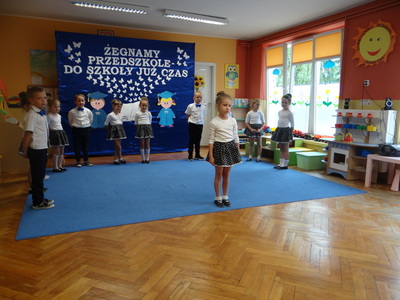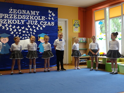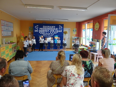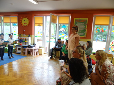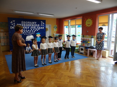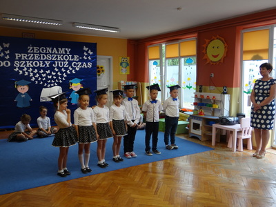 Ten dzień był zarówno pełen smutku jak i pełen radości. Smutno było żegnać przedszkole, zabawki i panie, ale zbliżające się wakacje sprawiały wielką radość. Aby więc pogodzić tę radość ze smutkiem przedszkolaki przygotowały i zaprezentowały przedstawienie dla swoich rodziców i zaproszonych gości. Dzieci pod kierunkiem wychowawczyni przygotowały występ artystyczny. Tradycyjnie uroczystość rozpoczęła się polonezem. W części artystycznej nie zabrakło wierszy, piosenek, tańców oraz podziękowań wszystkim pracownikom przedszkola i rodzicom za trud włożony w wychowanie i naukę. Starszaki stanęły na wysokości zadania i swoim występem wzbudziły wiele emocji. Za piękny występ zostały nagrodzone gromkimi brawami oraz obdarowane słodkościami.