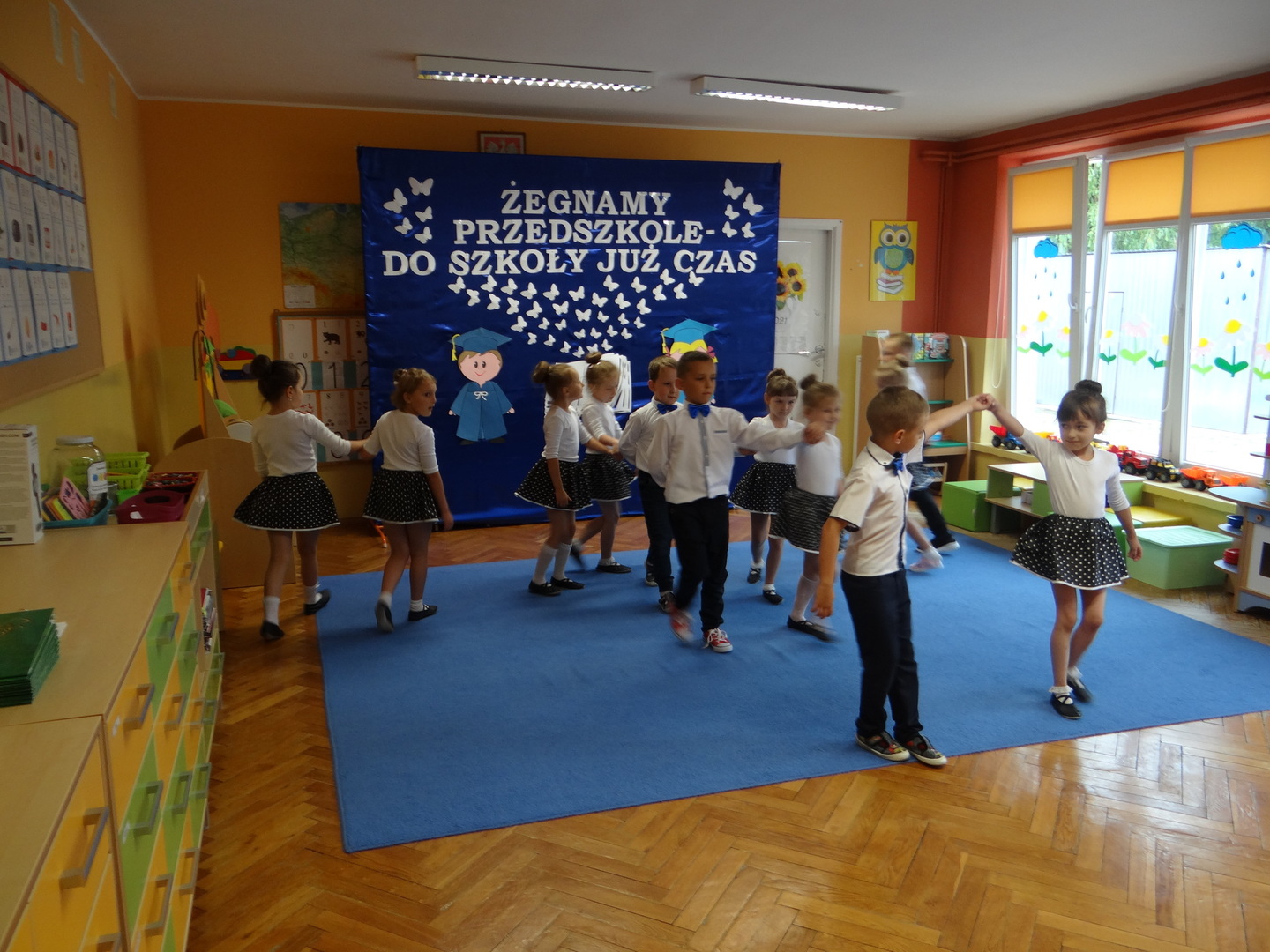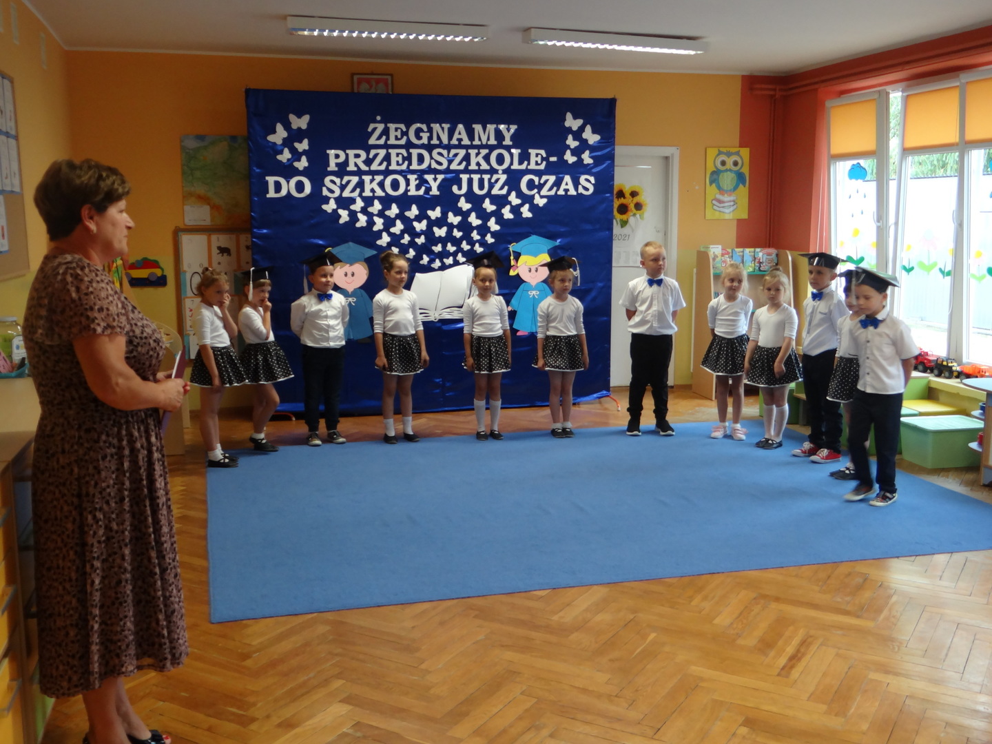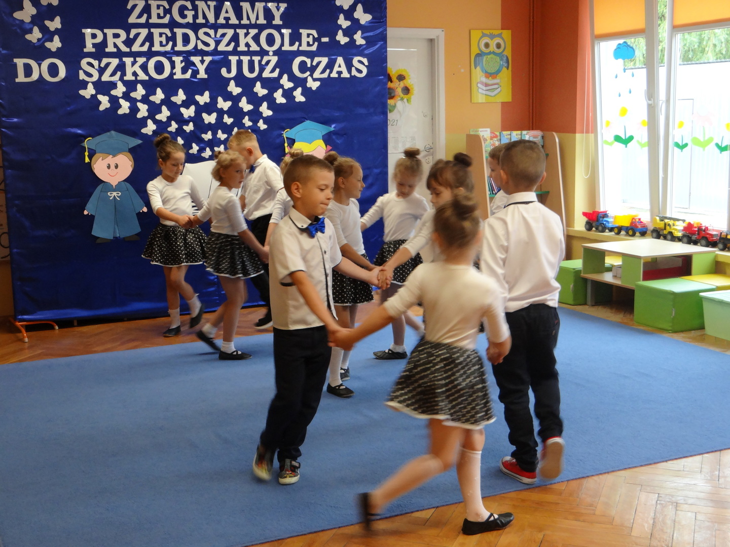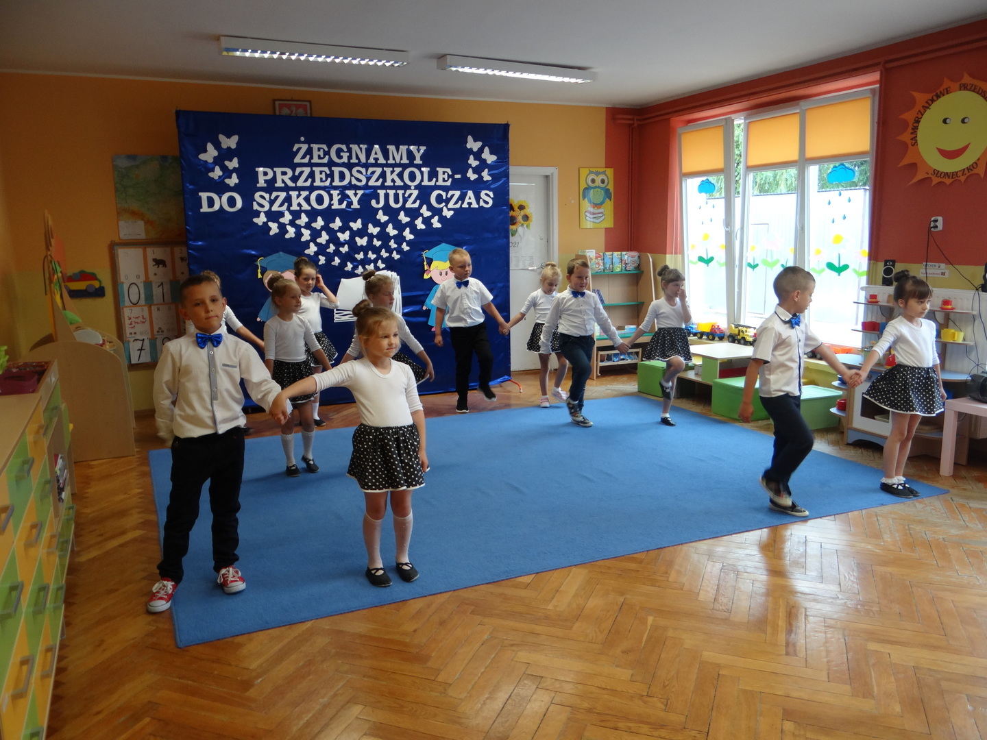 Ten dzień był zarówno pełen smutku jak i pełen radości. Smutno było żegnać przedszkole, zabawki i panie, ale zbliżające się wakacje sprawiały wielką radość. Aby więc pogodzić tę radość ze smutkiem przedszkolaki przygotowały i zaprezentowały przedstawienie dla swoich rodziców i zaproszonych gości. Dzieci pod kierunkiem wychowawczyni przygotowały występ artystyczny. Tradycyjnie uroczystość rozpoczęła się polonezem. W części artystycznej nie zabrakło wierszy, piosenek, tańców oraz podziękowań wszystkim pracownikom przedszkola i rodzicom za trud włożony w wychowanie i naukę. Starszaki stanęły na wysokości zadania i swoim występem wzbudziły wiele emocji. Za piękny występ zostały nagrodzone gromkimi brawami oraz obdarowane słodkościami.