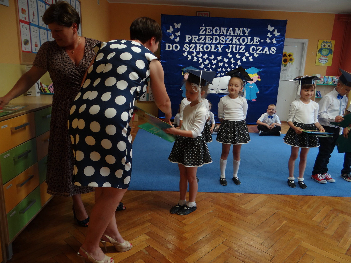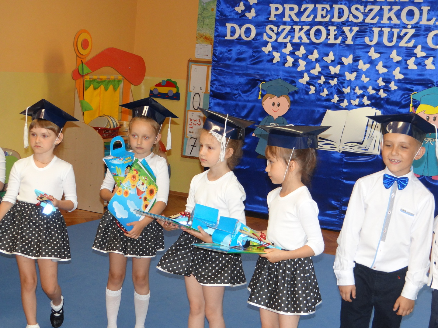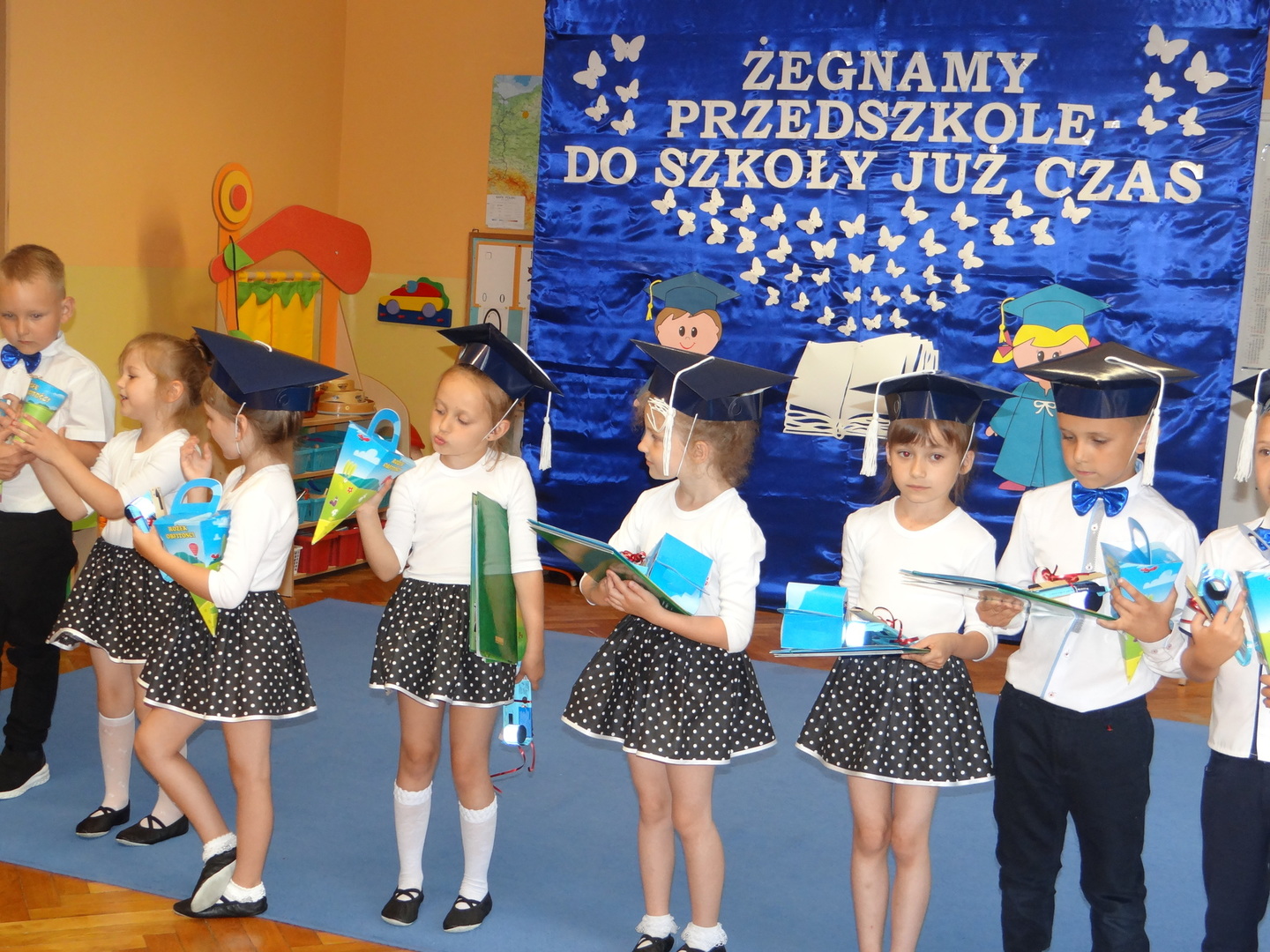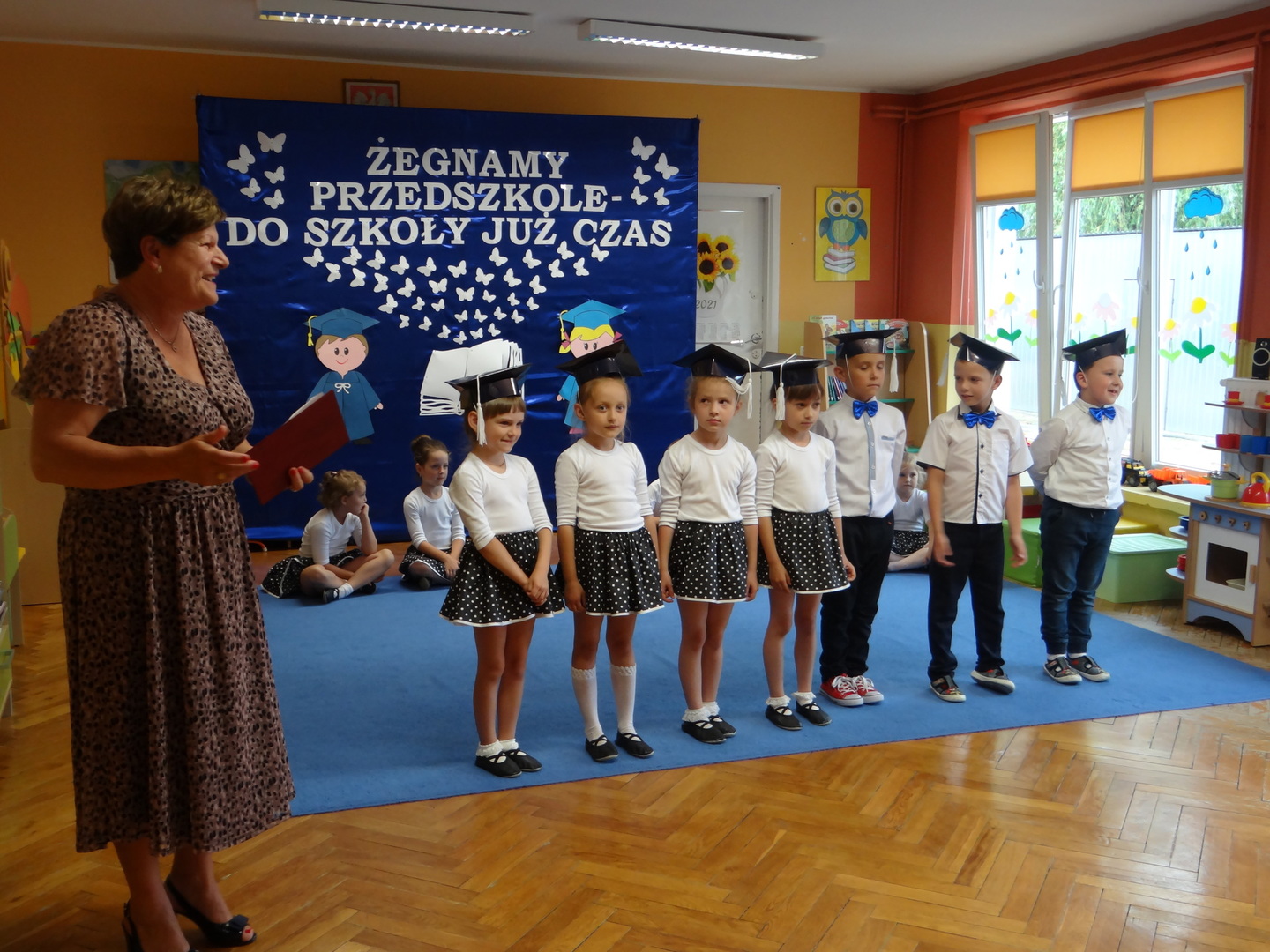 Ten dzień był zarówno pełen smutku jak i pełen radości. Smutno było żegnać przedszkole, zabawki i panie, ale zbliżające się wakacje sprawiały wielką radość. Aby więc pogodzić tę radość ze smutkiem przedszkolaki przygotowały i zaprezentowały przedstawienie dla swoich rodziców i zaproszonych gości. Dzieci pod kierunkiem wychowawczyni przygotowały występ artystyczny. Tradycyjnie uroczystość rozpoczęła się polonezem. W części artystycznej nie zabrakło wierszy, piosenek, tańców oraz podziękowań wszystkim pracownikom przedszkola i rodzicom za trud włożony w wychowanie i naukę. Starszaki stanęły na wysokości zadania i swoim występem wzbudziły wiele emocji. Za piękny występ zostały nagrodzone gromkimi brawami oraz obdarowane słodkościami.