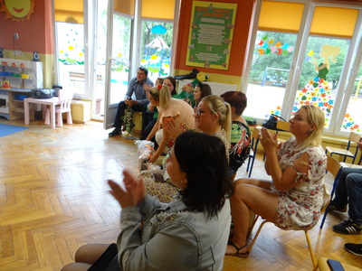 Na uroczystość przybyli rodzice, pracownicy przedszkola oraz przedstawicielka organu prowadzącego -  pani Monika Stąporek.