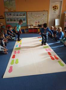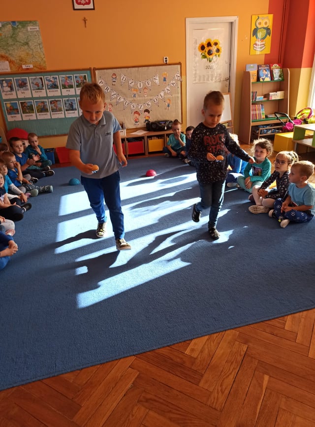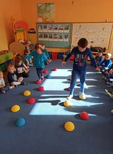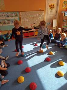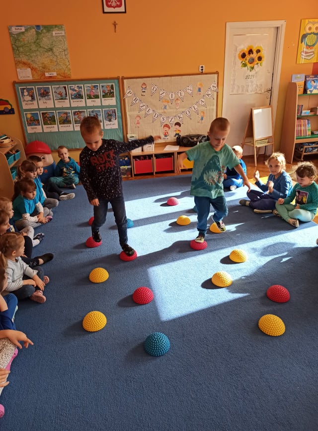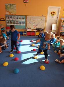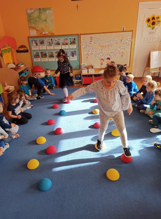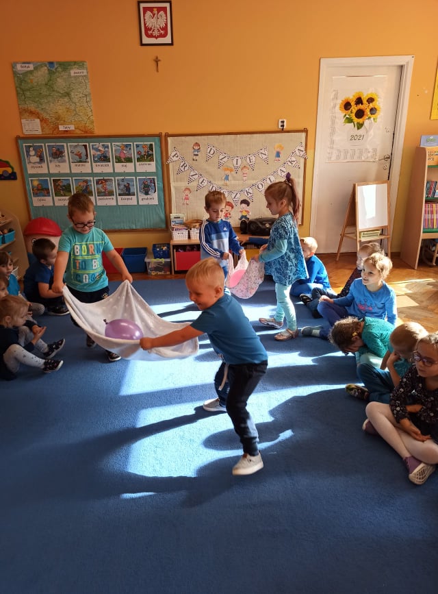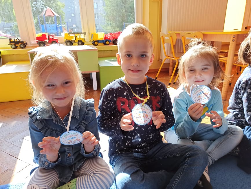 W tym roku, Ogólnopolski Dzień Przedszkolaka dzieci z naszego przedszkola obchodziły na sportowo. Z okazji swojego święta dzieci uczestniczyły w wielu aktywnościach: dzień rozpoczęliśmy tańcem do piosenki "Życie przedszkolaka" w ramach uczestnictwa w akcji "Dzień Przedszkolaka to ważne święto, uczcijmy je razem tańcem i piosenką" organizowanej przez Przedszkole Nr 2 im. Misia Uszatka w Gryfinie pod patronatem "Bliżej Przedszkola". Ponadto przedszkolaki uczesniczyły w zabawach z elementami sportowej rywalizacji - nosiły jajka na łyżce, skakały po kolorowej ścieżce, pokonywały niebezpieczną drogę po ruchomych kamieniach, a także współpracowały przy przenoszeniu balonika na "noszach". Radość, śmiech i głośny doping uczestników świadczyły o wspaniałej zabawie. Dzieci śpiewały także znane sobie piosenki "Hymn Przedszkolaka" oraz "Przedszkolaki". Wesołe zabawy trwały przez całe przedpołudnie i zakończone zostały wykonaniem kolorowej pracy plastycznej "Balonik". Na zakończenie obchodów zostały udekorowane medalami z okazji „Dnia Przedszkolaka”. Ten dzień był pełen radości i niezapomnianych wrażeń.