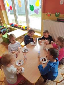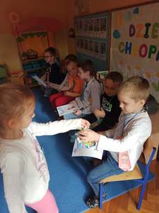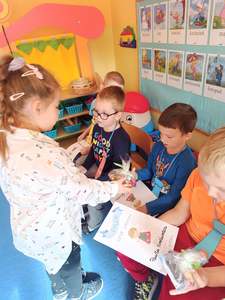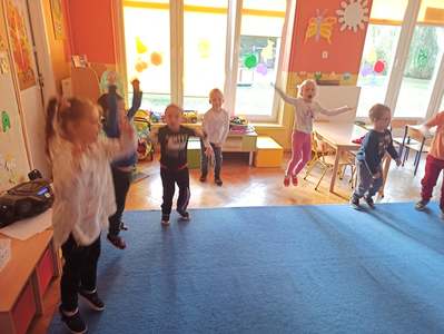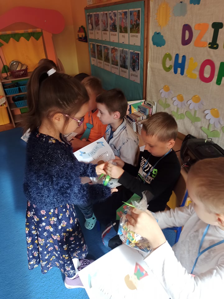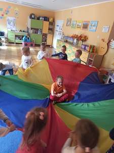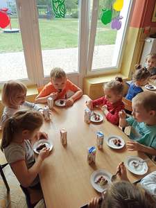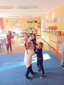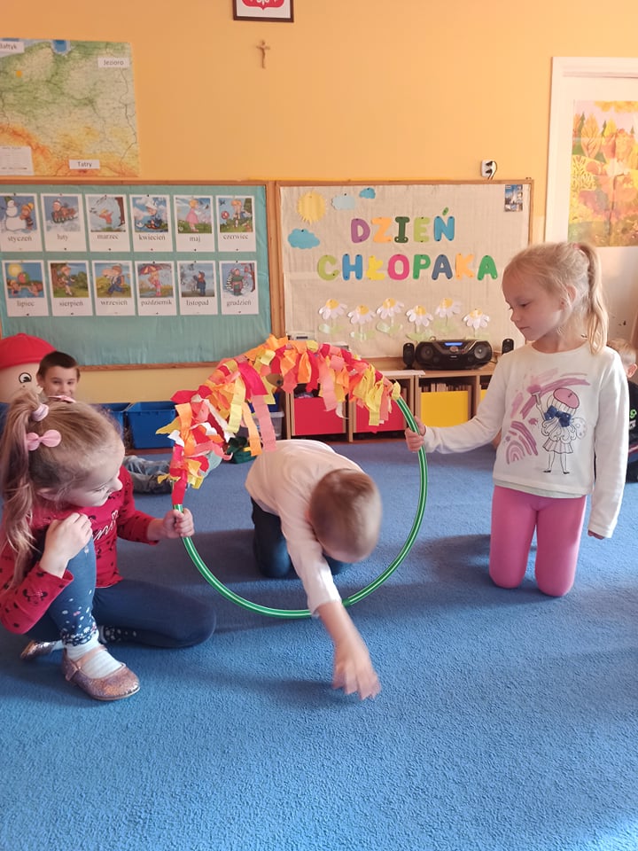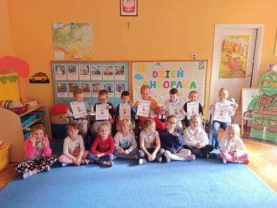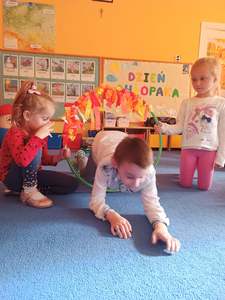W czwartek 30 września dzieci z grupy "Motylki" obchodziły wspólnie Dzień Chłopaka. Tego dnia w sali panowała niezwykle miła, przyjacielska atmosfera. Dzieci z okazji święta wszystkich chłopców uczestniczyły w rozmaitych aktywnościach - tańczyły do ulubionych piosenek, uczestniczyły w konkurencjach sportowych, bawiły się wspólnie z chustą animacyjną. Chłopcy zostali także uhonorowani przez koleżanki - otrzymali krawaty "super chłopaka", dyplomy oraz małe upominki. Z tej okazji mama Emilki upiekła także dla dzieci pyszne ciasto biszkoptowe z jagodami. To był bardzo miły dzień!